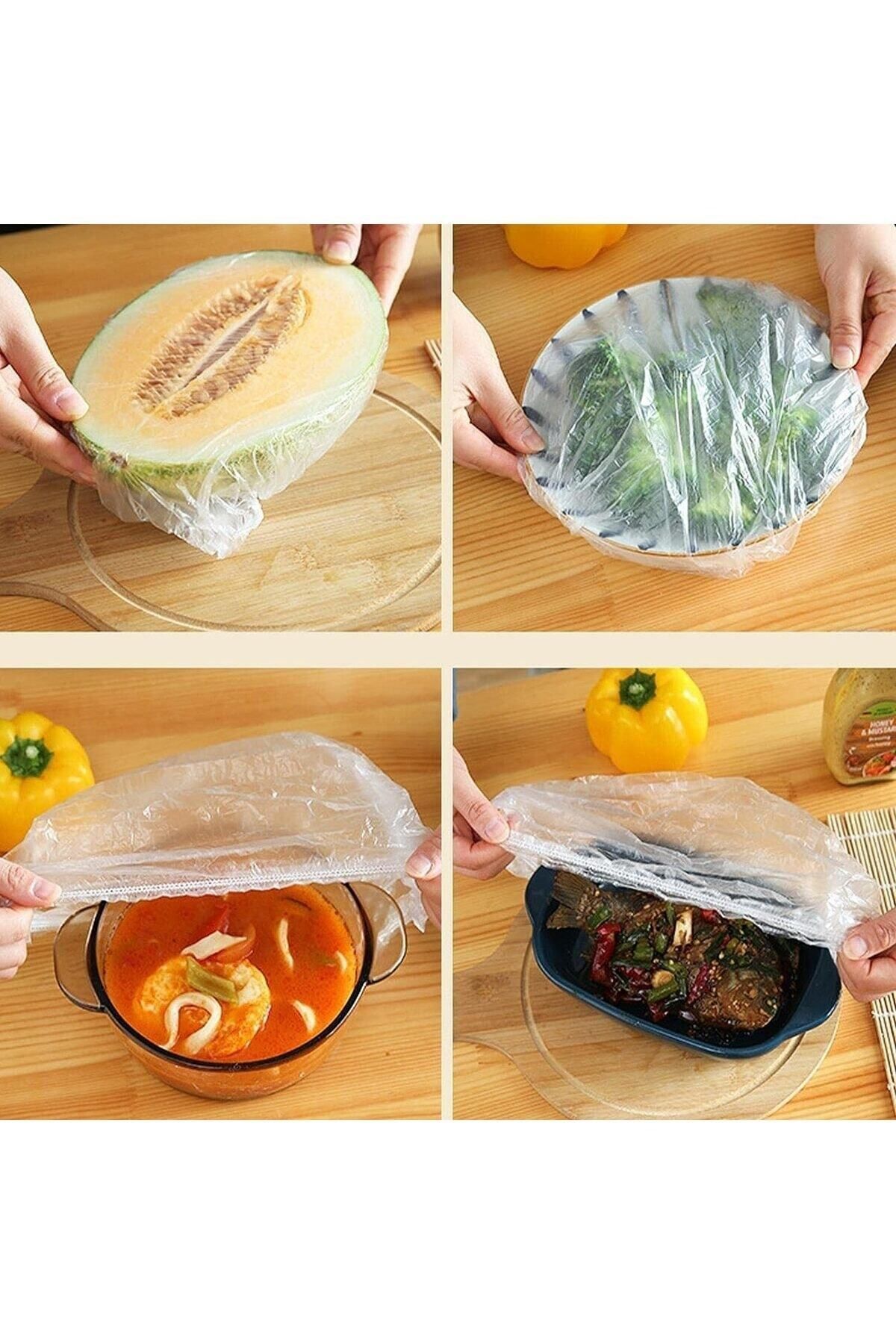100 Adet Pratik Tazeliği Koruyan Tencere ve Tabak Bonesi | Çok Amaçlı Kapak Gıda Bonesi Strech Kapak