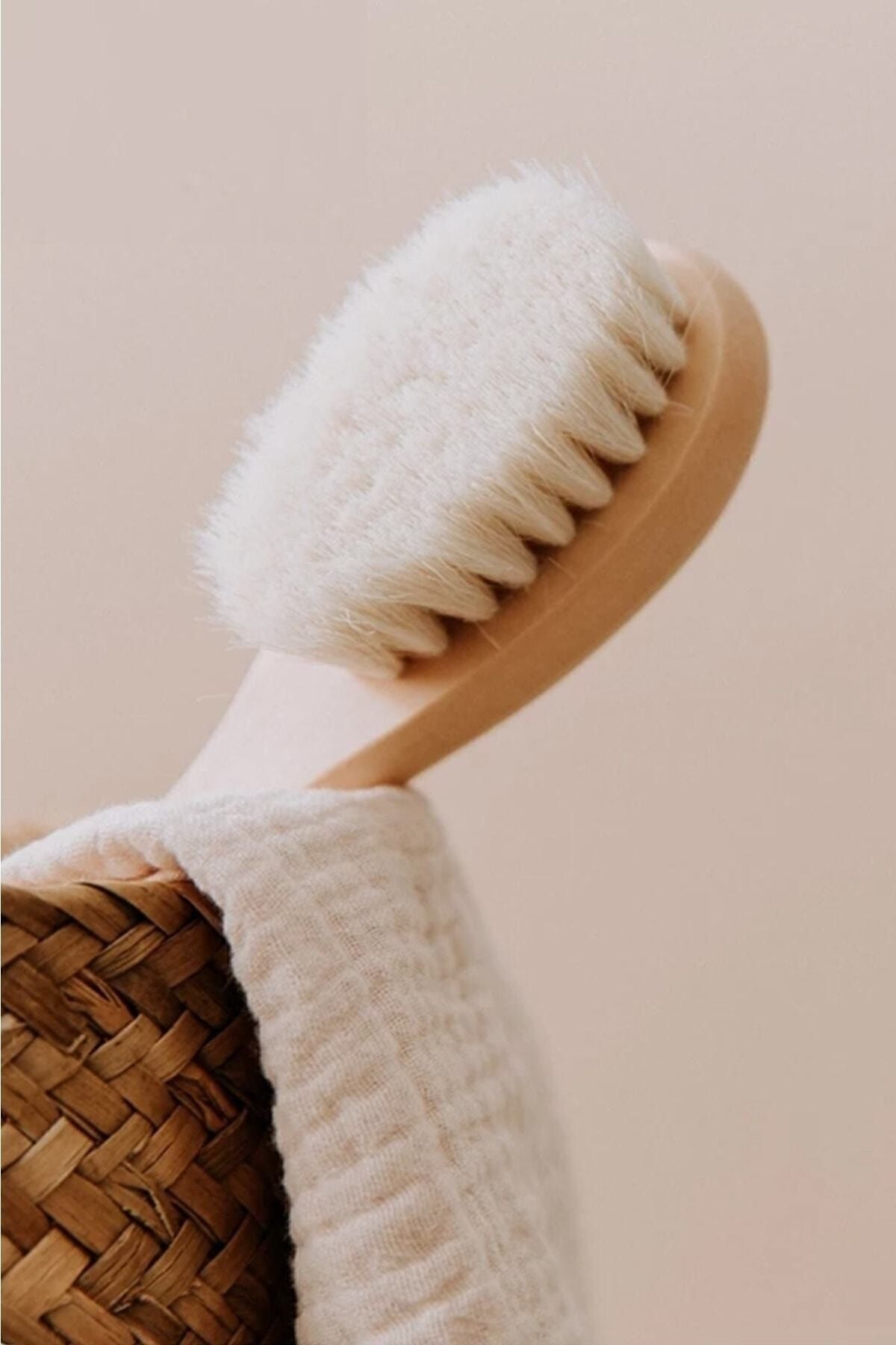 Yeni doğmuş bebekler için idealdir.; Bebeğiniz için güvenli doğal bakım.; Yumuşak keçi kılı bebeğin hassas baş derisine masaj yapar, canlandırır.; Bebeğinizin hassas derisine ve saçına zarar vermez.; Saçı ve saç derisini nazikçe fırçalamak, yatmadan önce bebeğin rahatlamasına yardımcı olur Düzenli fırçalama, küçükleri daha sonra iyi bir saç bakımı rutinine hazırlamaya yardımcı olur.; Sap kısmı bebekler için özel tasarlanmıştır.; Nemli bir bez ile silme silmeniz tavsiye edilir.; ; Bebek tarağı %100 keçi kılından üretilmiştir.; ; %100 Keçi Kılı Doğal Bebek Saç Bakım Fırçası: Bebeğinizin Saçı İçinDoğal Zarafet ve Hassasiyet! Saf ve Doğal Keçi Kılı Fırça · Bebeğinizin hassas cildine zarar vermeden,sadece saf ve doğal keçi kılı kullanıyoruz.; ; · İnce telli keçi kılı, bebek saçınınyumuşaklığına ve parlaklığına katkı sağlar.; ; · Sentetik fırçalardan farklı olarak, saç derisinitahriş etmez ve bebek konforunu ön planda tutar.; ; İnce ve Dikkatli İşçilik · Her fırça, titiz bir işçilikle eldeüretilmiştir, böylece her kıl doğru şekilde yerleştirilir.; ; · İnce işçilik, fırçanın dayanıklılığını artırırve uzun yıllar boyunca kullanılabilir.; ; · Saç bakımında en iyi sonuçları almak içintasarlanmıştır.; ; Bebeğinizin Güzelliğini Öne Çıkarın Bebeğinizin saçını düzenlemek ve tararken, onun doğalgüzelliğini ön plana çıkarın.; İnce ve hafif tasarımı, her zaman rahat bir tutuşsağlar.; Saç tarama deneyimini keyifli ve özel bir an haline getirin.; "%100Keçi Kılı Doğal Bebek Saç Bakım Fırçası" ile bebeğinizin saç bakımını enzarif ve hassas şekilde yapın.; Doğal güzelliklerini koruyun ve onlara sevgidolu bir bakım sunun!