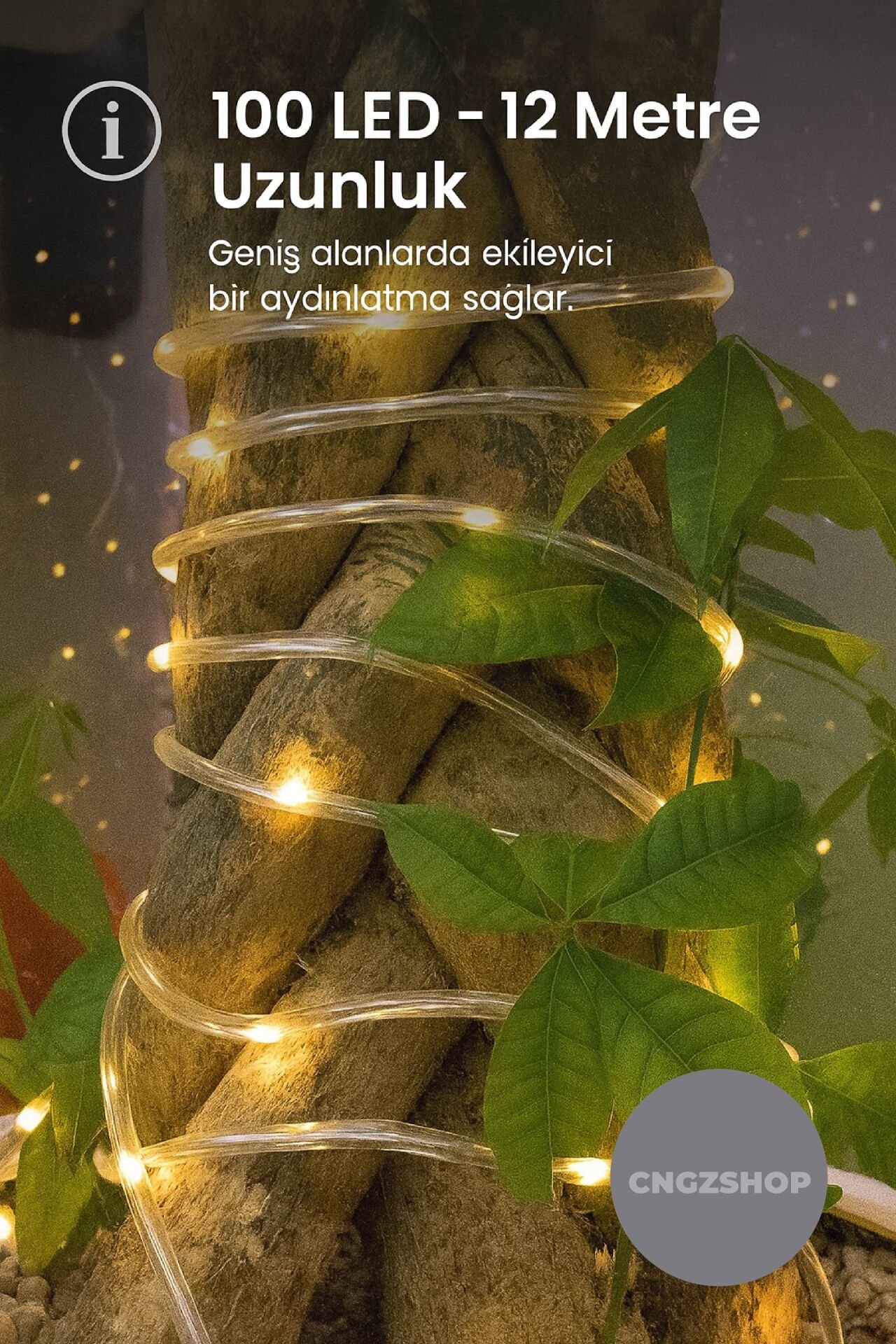 100 LED’li 12 metre sarı solar peri led ışık, güneş enerjisiyle çalışan çevre dostu tasarımıyla elektrik tüketmeden uzun saatler boyunca aydınlatma sağlar. Su geçirmez esnek hortum kaplaması sayesinde yağmur, kar ve dış etkenlere karşı dayanıklıdır.