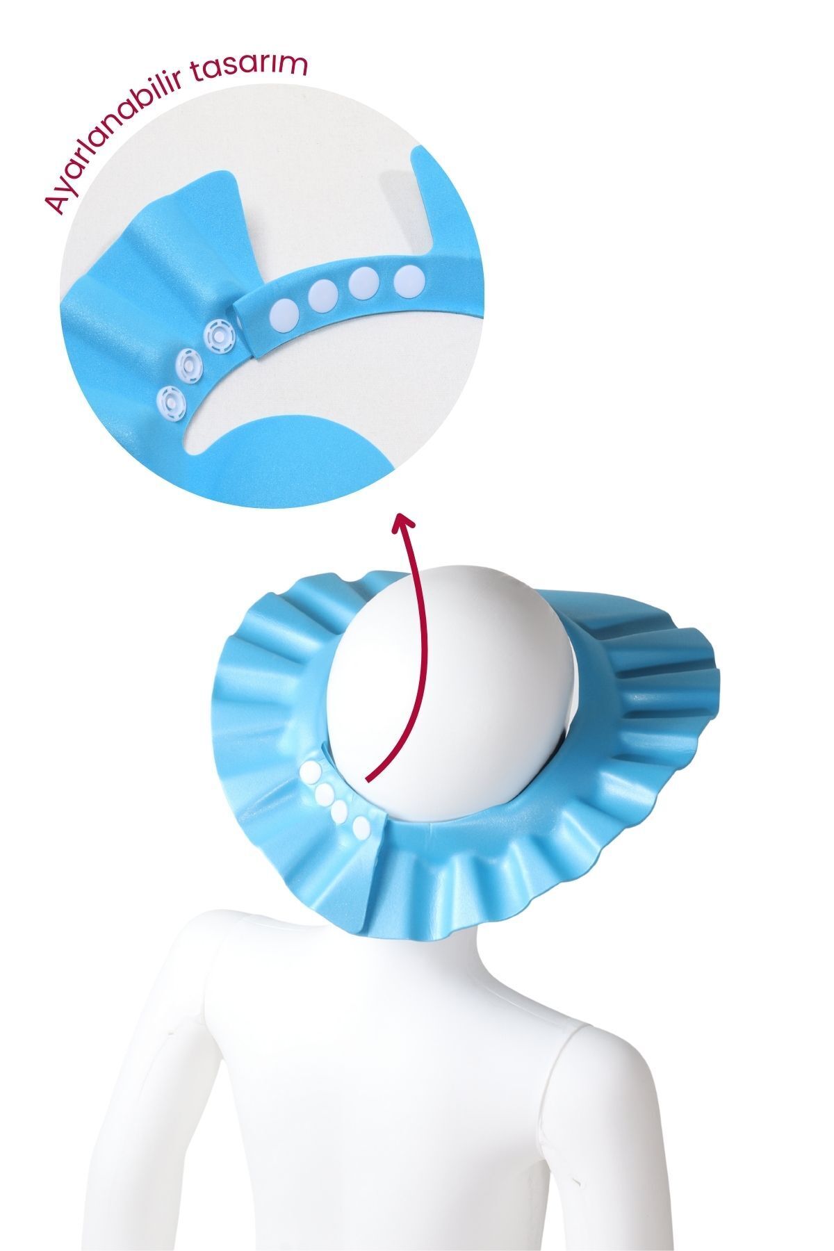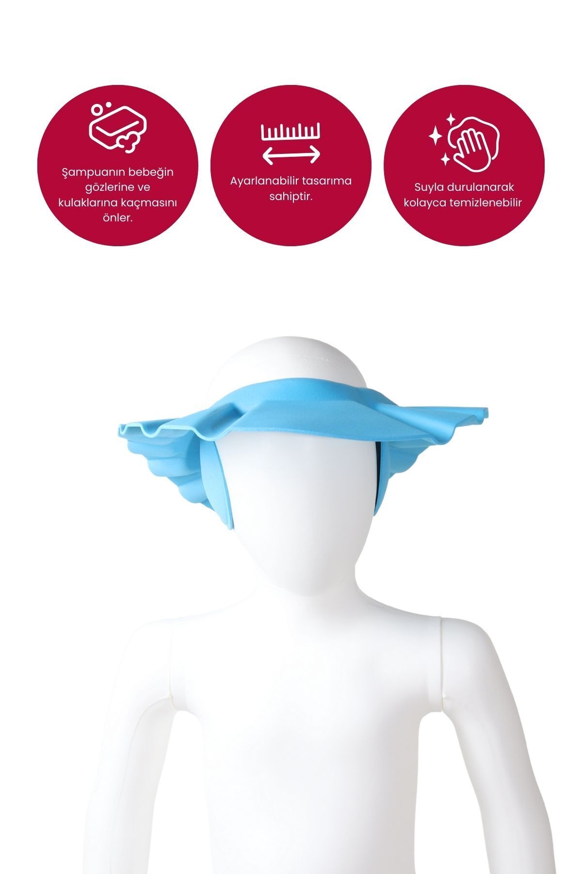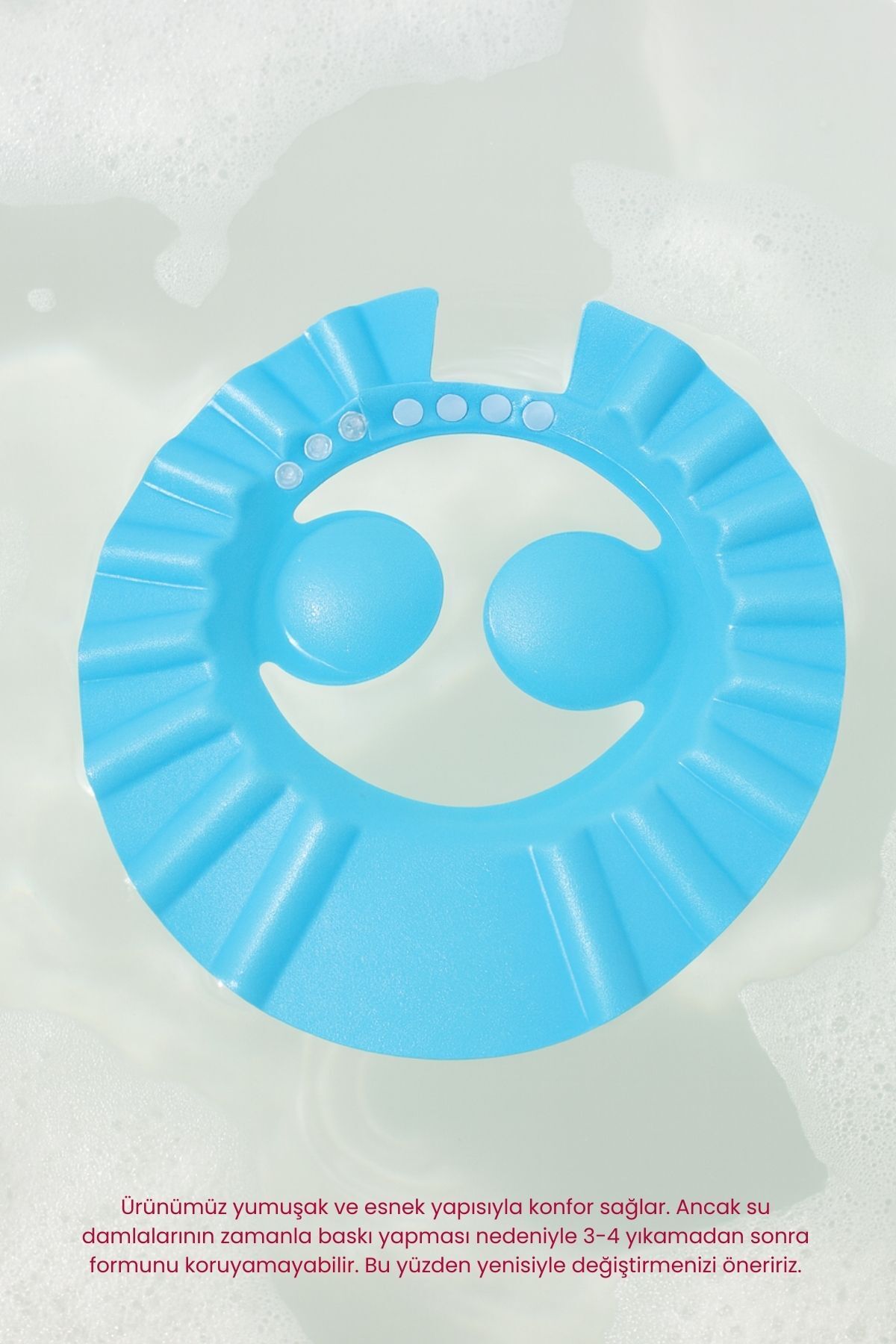 Bebeklerin banyo sırasında göz ve kulaklarına su ile şampuan kaçmasını önler.; ; Yumuşak ve esnek yapısıyla bebeğin başına rahatça oturur.; ; Ayarlanabilir tasarımı sayesinde farklı kafa ölçülerine uygundur.; ; Hafif ve rahat eva köpük malzemesinden üretilmiştir, bebeği rahatsız etmez.; ; Kullanım kolaylığı sağlar, banyo zamanını eğlenceli ve güvenli hale getirir.; ; 3-4 yıkamadan sonra formunu kaybedebileceği için yenisiyle değiştirilmesi önerilir.