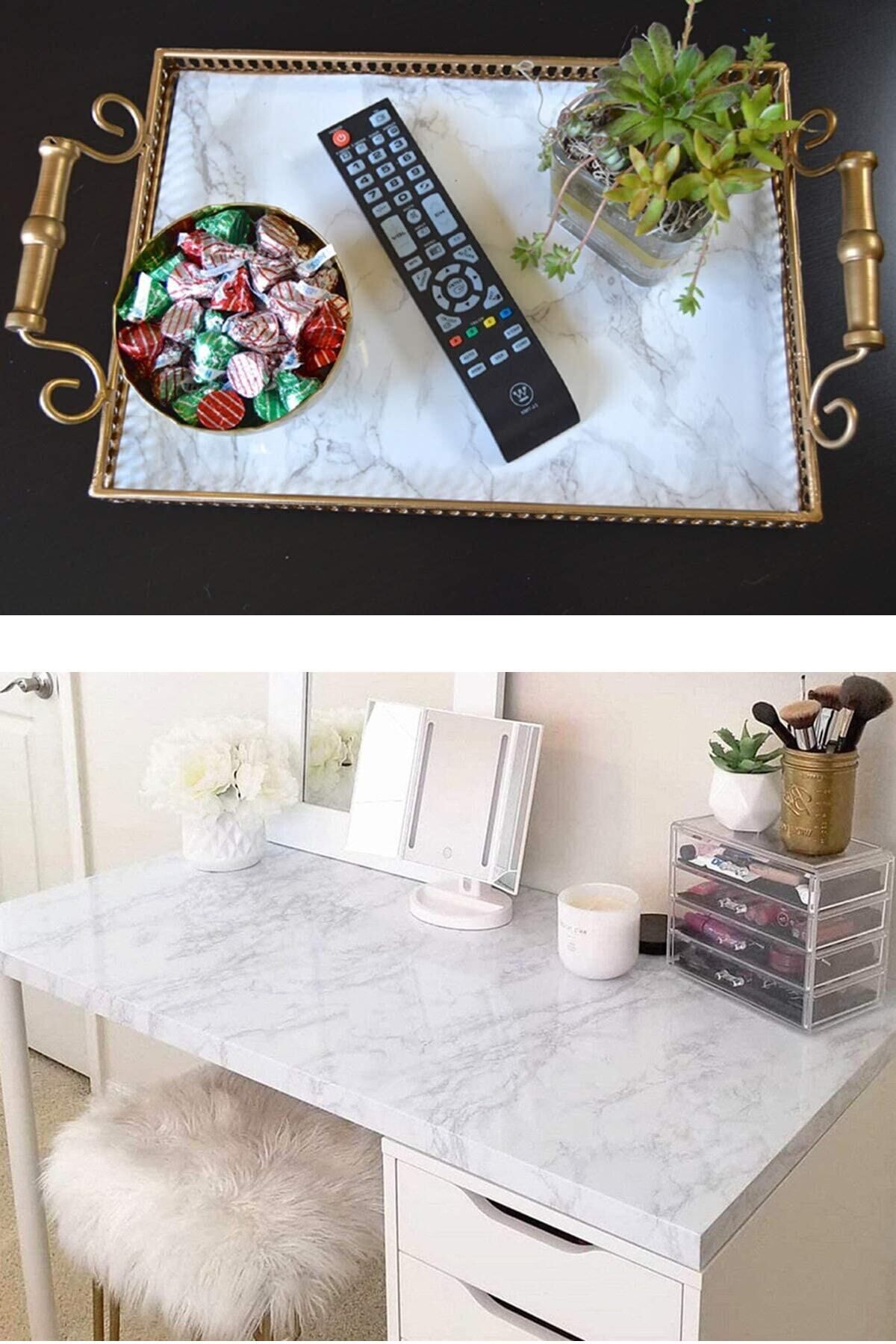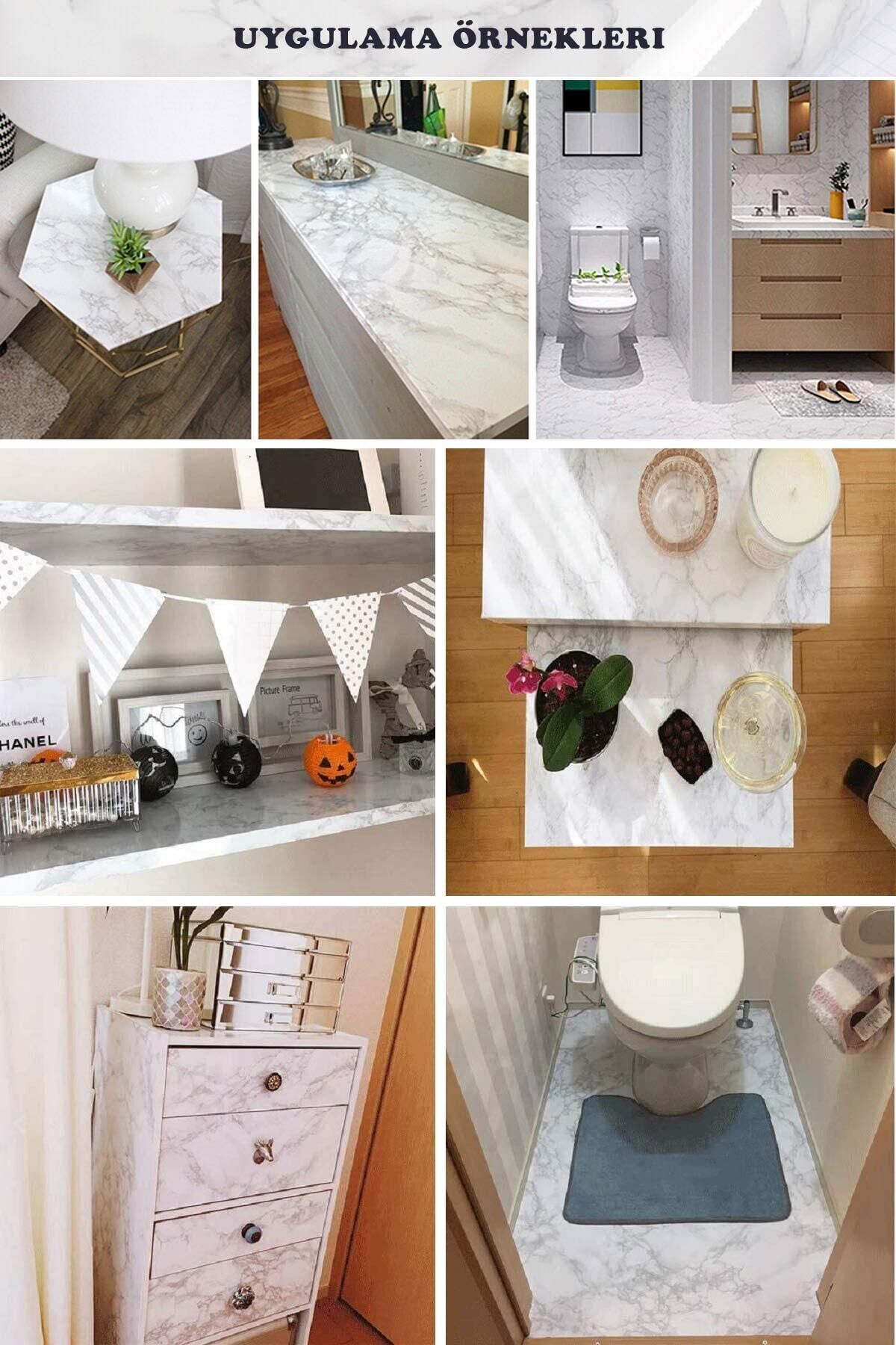 200cmx60cm Kendinden Yapışkanlı Beyaz Mermer Desenli Mutfak Banyo Tezgah Duvar Masa Kaplama Kağıdı