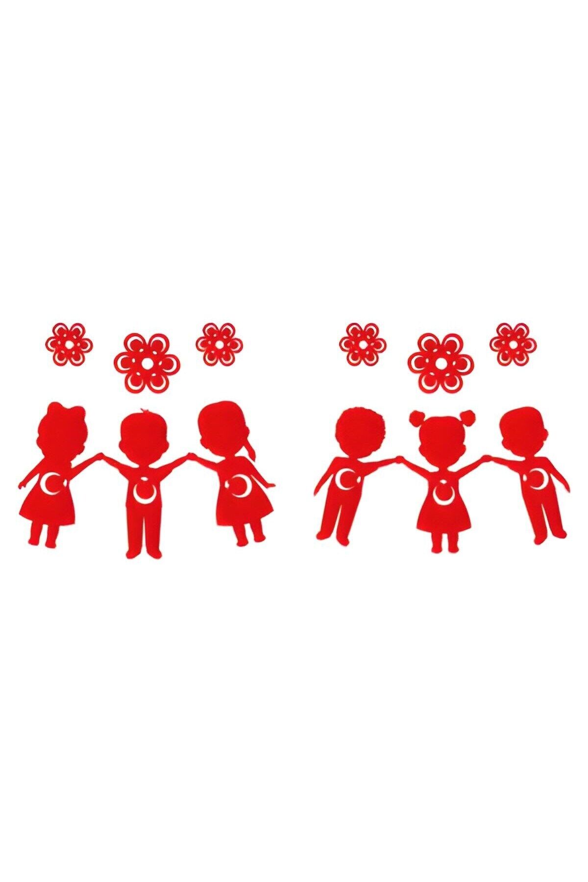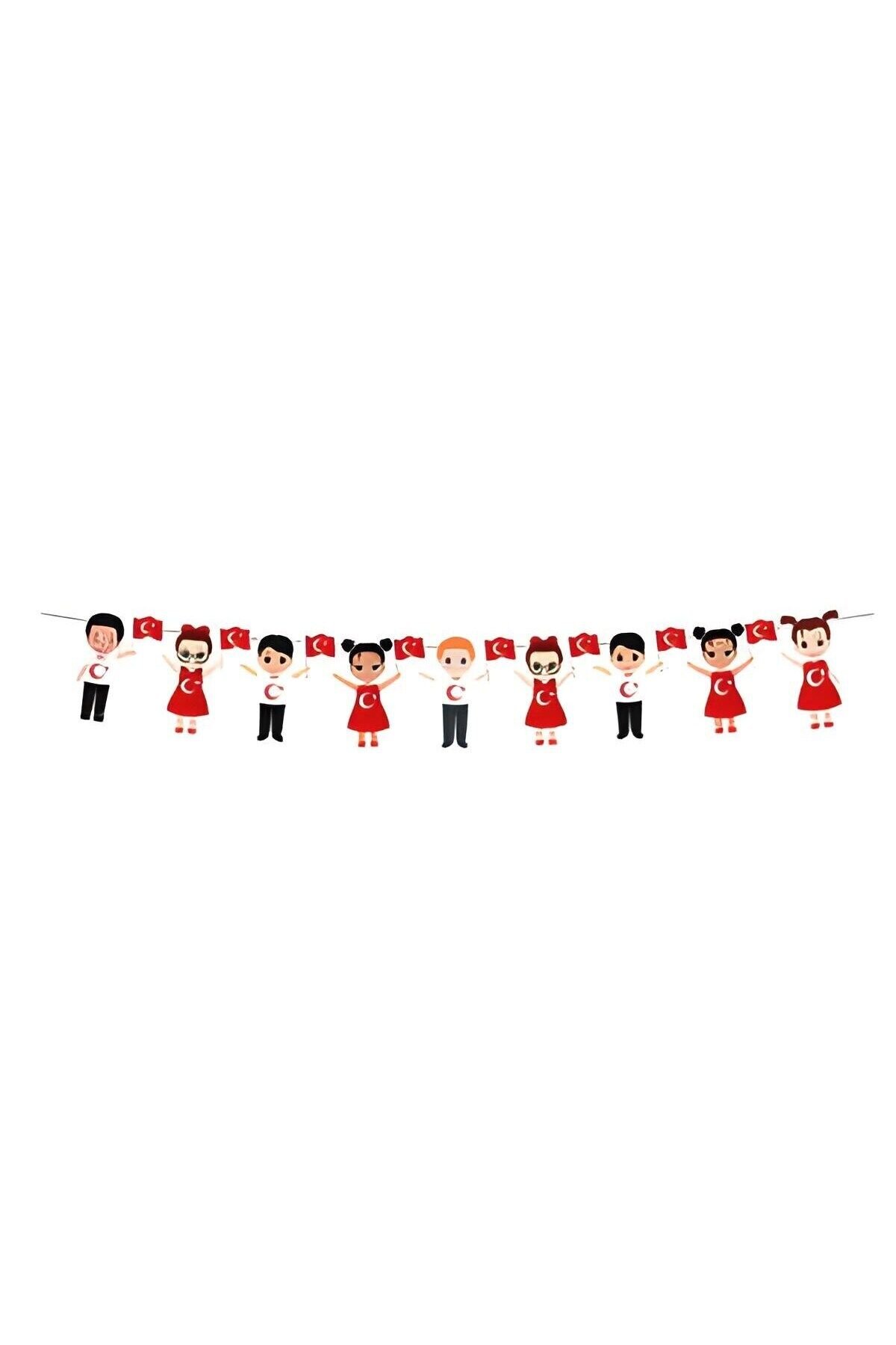 23 Nisan Süsleri Kapı Süsü-23 Nisan Pencere Süsü-Dekoratif El Ele Çocuklar ve Ay Yıldız Baskılı Balo