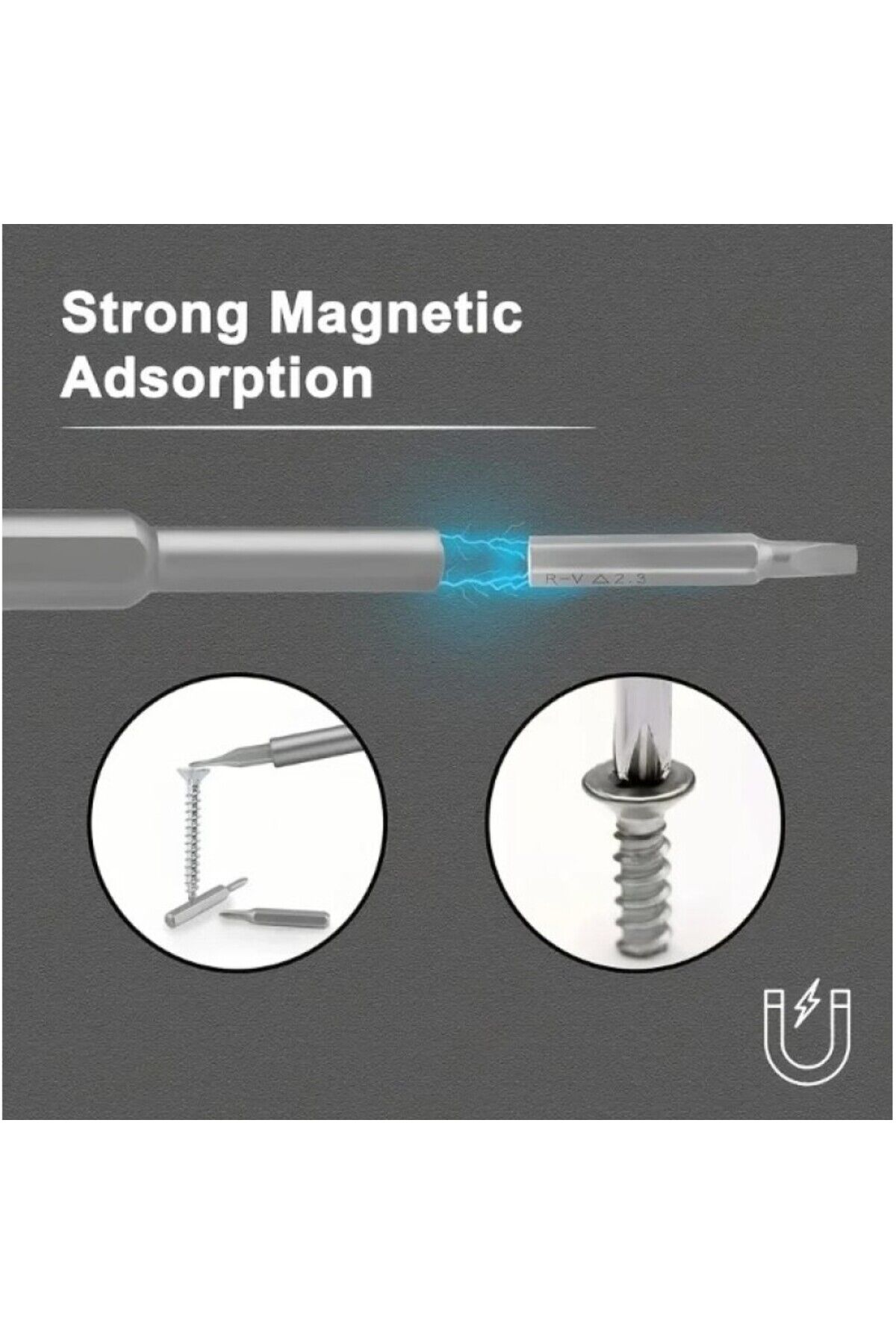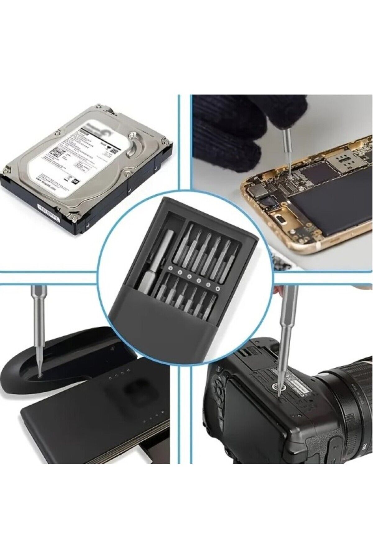 25 PARÇA TORNAVİDA SETİ1.24-in-1 tornavida seti: bu Set 24 farklı tornavida ucu içerir, bu da çok yönlü ve çeşitli görevler için uygundur.; Cep telefonları, gözlükler, kameralar, saatler ve diğer ev eşyalarını onarmak için özelleştirilebilir.2. Geniş uygulama yelpazesi: kapsamlı tornavida uçları seti ile, bu set hem profesyonel hem de ev kullanım için mükemmeldir.; Farklı onarım ve bakım görevlerini kolaylıkla halledebilmenizi sağlayan çok çeşitli vida tipleri ve boyutları kapsar.3. Uygun depolama: set, tornavida uçları için güvenli bir depolama sağlayan bir geçmeli kilitli plastik kutu ile birlikte gelir.; Kutunun kompakt boyutu, araçlarınızın organize edilmesini ve erişilebilir olmasını sağlayarak taşımayı ve saklamayı kolaylaştırır.4. Dayanıklı ve güvenilir: tornavida uçları, dayanıklılık ve uzun ömürlü performans sağlayan yüksek kaliteli malzemelerden yapılmıştır.; Sık kullanıma dayanacak şekilde tasarlanmıştır ve verimli vidalama için güvenilir bir tutuş sağlar.5. Ergonomik tasarım: tornavida sapı, rahat ve kaymaz bir tutuş sağlayan, akılda ergonomik prensiplerle tasarlanmıştır.; Bu, hassas ve kontrollü kullanım sağlar, onarım sırasında hassas eşyalara kayma veya zarar verme riskini azaltır.