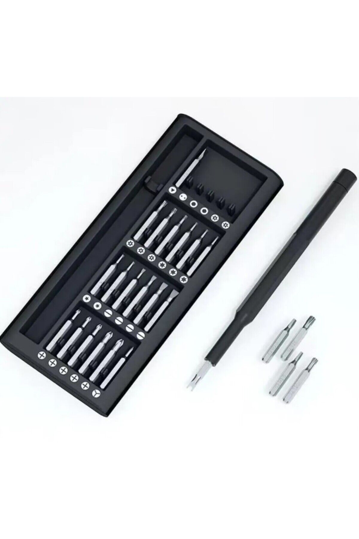 25 PARÇA TORNAVİDA SETİ1.24-in-1 tornavida seti: bu Set 24 farklı tornavida ucu içerir, bu da çok yönlü ve çeşitli görevler için uygundur.; Cep telefonları, gözlükler, kameralar, saatler ve diğer ev eşyalarını onarmak için özelleştirilebilir.2. Geniş uygulama yelpazesi: kapsamlı tornavida uçları seti ile, bu set hem profesyonel hem de ev kullanım için mükemmeldir.; Farklı onarım ve bakım görevlerini kolaylıkla halledebilmenizi sağlayan çok çeşitli vida tipleri ve boyutları kapsar.3. Uygun depolama: set, tornavida uçları için güvenli bir depolama sağlayan bir geçmeli kilitli plastik kutu ile birlikte gelir.; Kutunun kompakt boyutu, araçlarınızın organize edilmesini ve erişilebilir olmasını sağlayarak taşımayı ve saklamayı kolaylaştırır.4. Dayanıklı ve güvenilir: tornavida uçları, dayanıklılık ve uzun ömürlü sağlayan yüksek kaliteli malzemelerden yapılmıştır.; Sık kullanıma dayanacak şekilde tasarlanmıştır ve verimli vidalama için güvenilir bir tutuş sağlar.5. Ergonomik tasarım: tornavida sapı, rahat ve kaymaz bir tutuş sağlayan, akılda ergonomik prensiplerle tasarlanmıştır.; Bu, hassas ve kontrollü kullanım sağlar, onarım sırasında hassas eşyalara kayma veya zarar verme riskini azaltır.