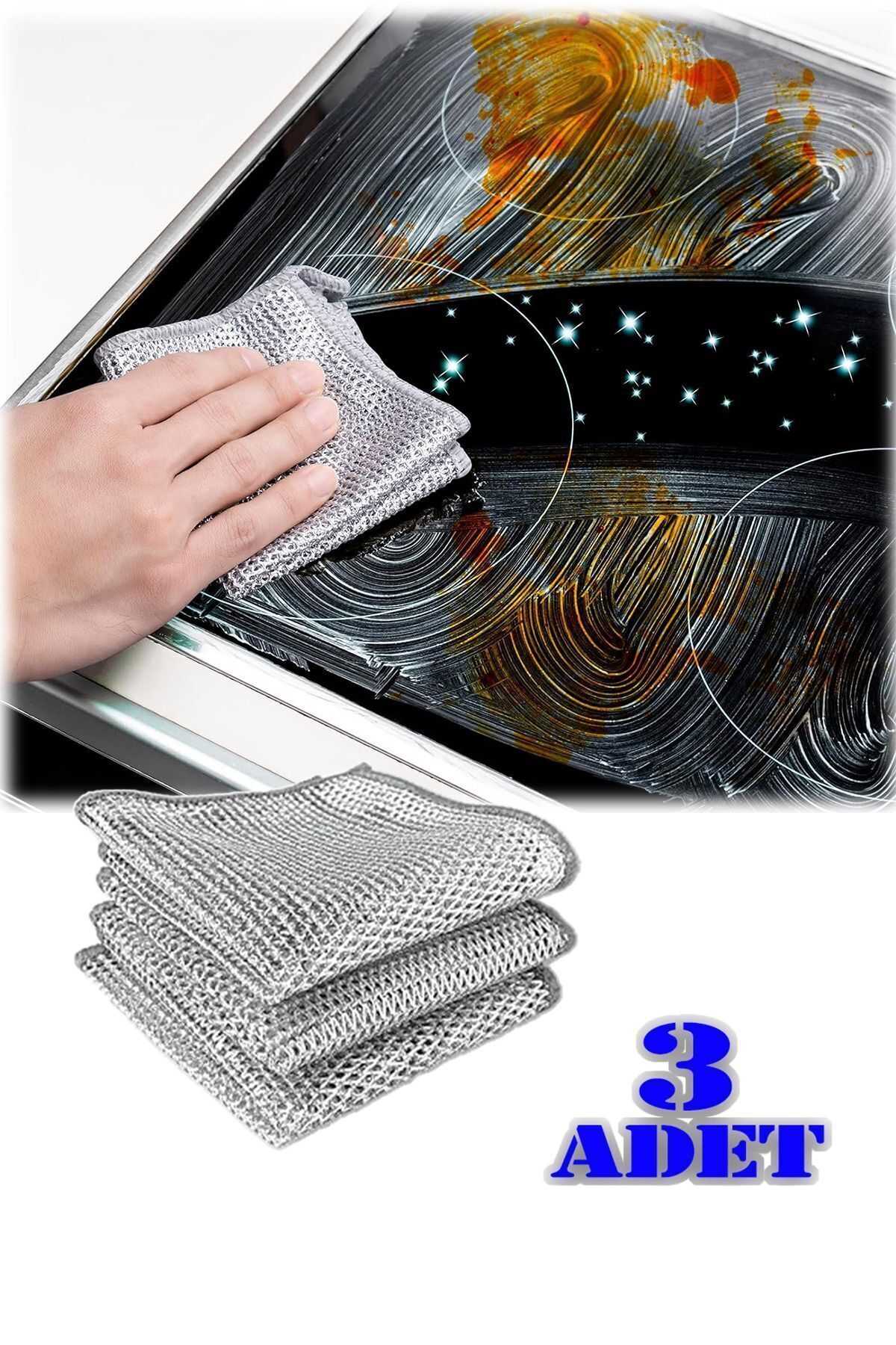 3 lü Temizlik Bezi Çizilme Yapmaz Sihirli Mutfak Bezi Paslanmaz Çelik Kir Sökücü Bez Bulaşık Süngeri