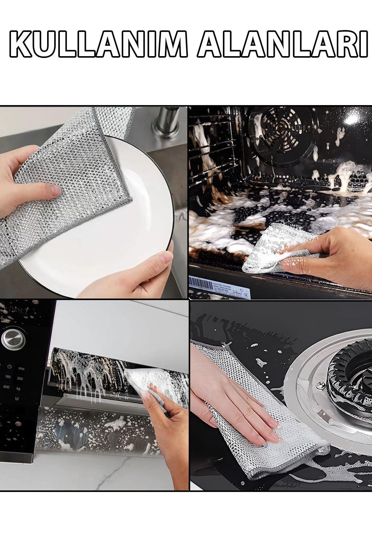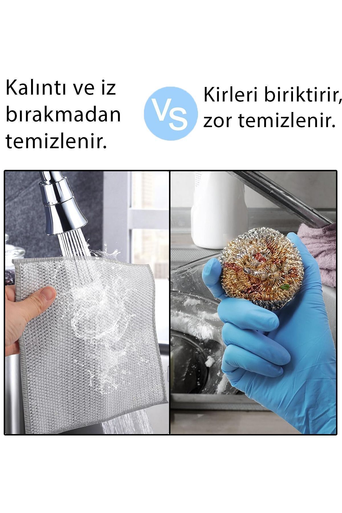 Islak ve Kuru Çok Amaçlı Tel Bulaşık Bezleri, gelişmiş elmas şeklindeki kafes dokuma teknolojisi ve yüksek kaliteli metal tel malzeme kullanarak yağ lekelerini kolayca çıkarır.; Tencereye ve ele zarar vermez.; Çift paslanmaz çelik fırça, mutfağınızda iyi bir yardımcıdır.; İnce delikli tasarım, çok işlevli çizilmez tel bulaşık bezini çok köpüklü hale getirir.; Islatıp sofra takımlarını, tencereleri vb.; etkili bir şekilde temizlemek için kullanabilir veya doğrudan ızgaraları, ocakları temizlemek için kullanabilirsiniz.; Çift Paslanmaz Çelik Fırça, Balık pulu kafes kumaş yüzeyinin tasarımı sayesinde nemi anında emebilir.; Ve hızlı kurur ve temizlenmesi kolaydır.; Gümüş temizleme bezi kabın derinliklerine kadar girebilir ve kiri kolayca yıkayabilir, hatta küçük bir şişe ağzı da kolayca temizlenebilir.; Kullanımdan sonra duvara asılabilir, mutfakta yer tasarrufu sağlar ve boşaltılması kolaydır.