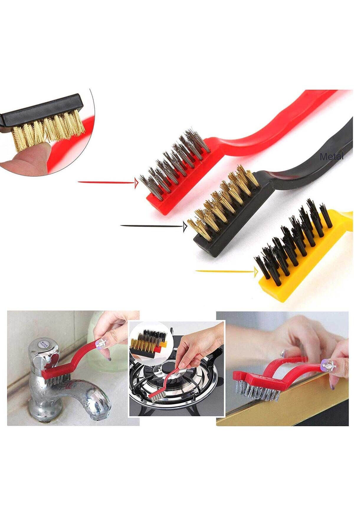 3 Parça Mini Tel Fırça Seti Fırça Uzunluk : 15 CM Uç Boyut : 3,5 x 1 Cm Paket İçeriği 1 Adet Metal Fırça 1 Adet Princ Fırça 1 Adet Plastik Fırça NOT : Ölçülerde MM rik Hatalar Olabilmektedir.