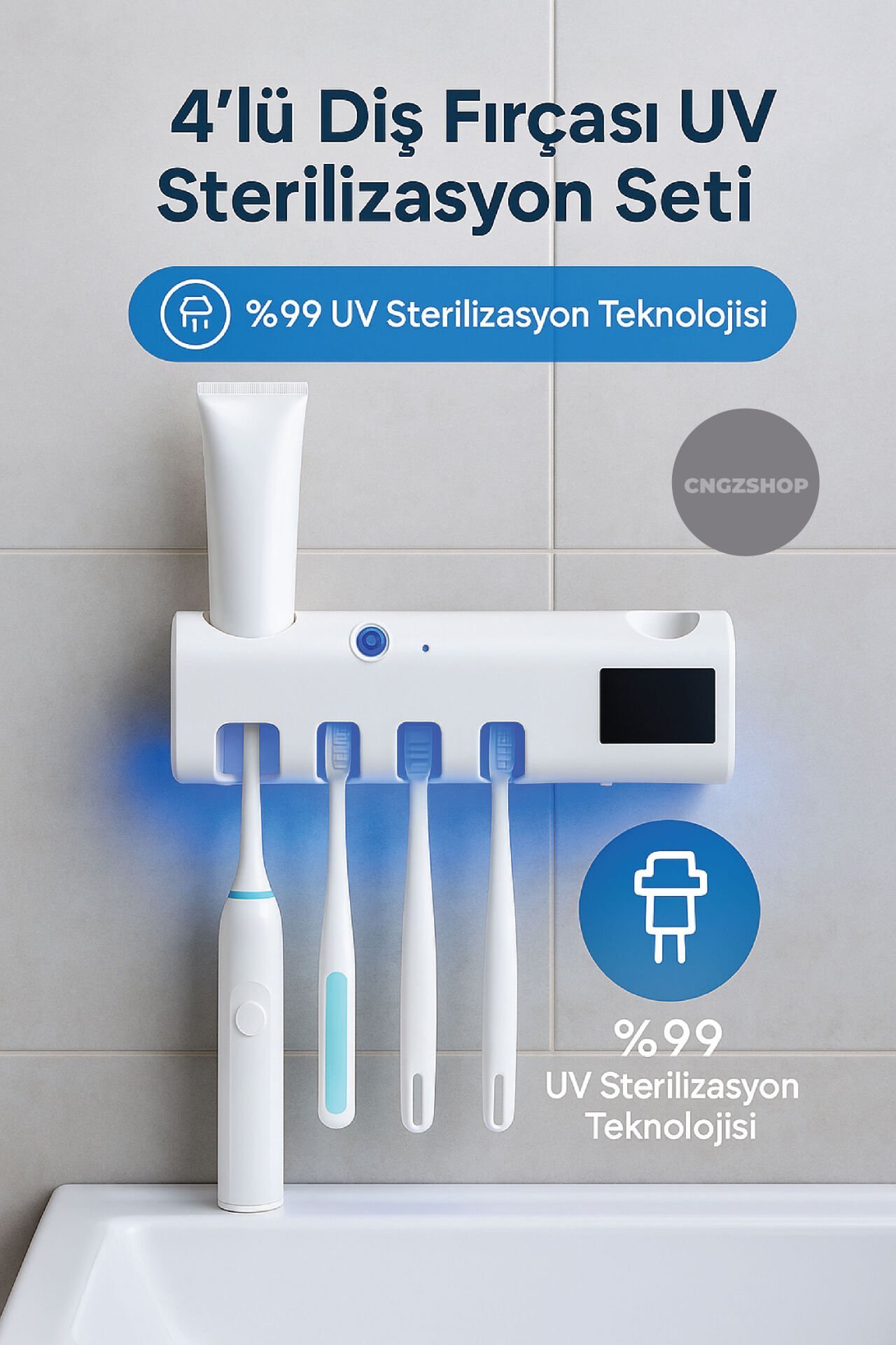 4’lü Diş Fırçası Sterilizasyon Seti – Otomatik Macun Sıkacağı