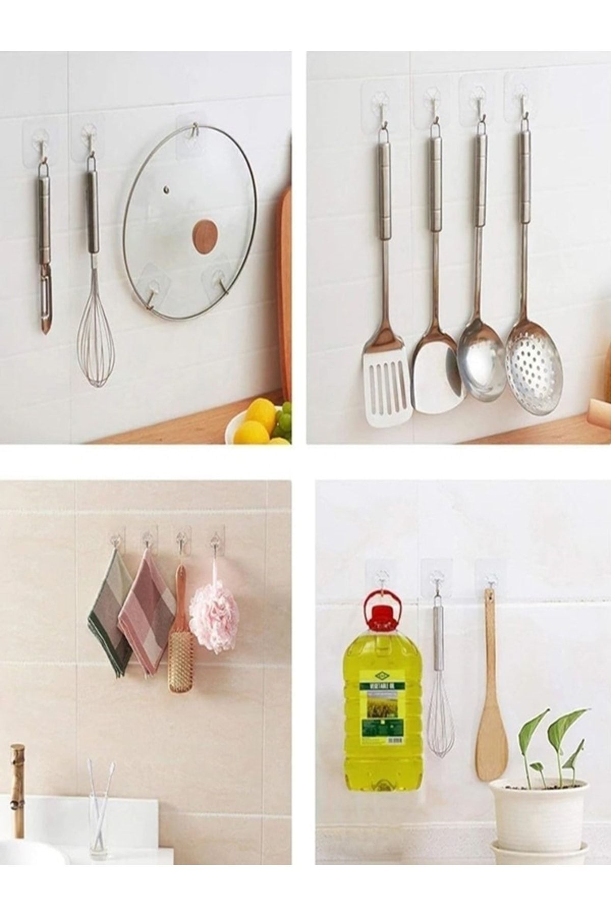 Nasıl kurulur 1. ; Yapışkan kanca kurmadan önce, yüzeyin temiz, kuru, toz ve yağdan arındırılmış olduğundan emin olun ve önce kurulayın. ; 2. ; Koruyucu film 'in arkasını yırtın ve parmaklarınız yapıştırıcıya dokunmayın. ; 3. ; Herhangi bir pürüzsüz yüzeye yapıştırın ve herhangi bir kabarcıkları çıkarmak için sıkıca bastırın. ; 4. ; Ürünün sağlam ve sabit olmasını sağlamak için herhangi bir ürünü asmadan önce 12 saat bırakmanız tavsiye edilir. ; Paket içeriği : 5 adet şeffaf yapışkanlı askı;