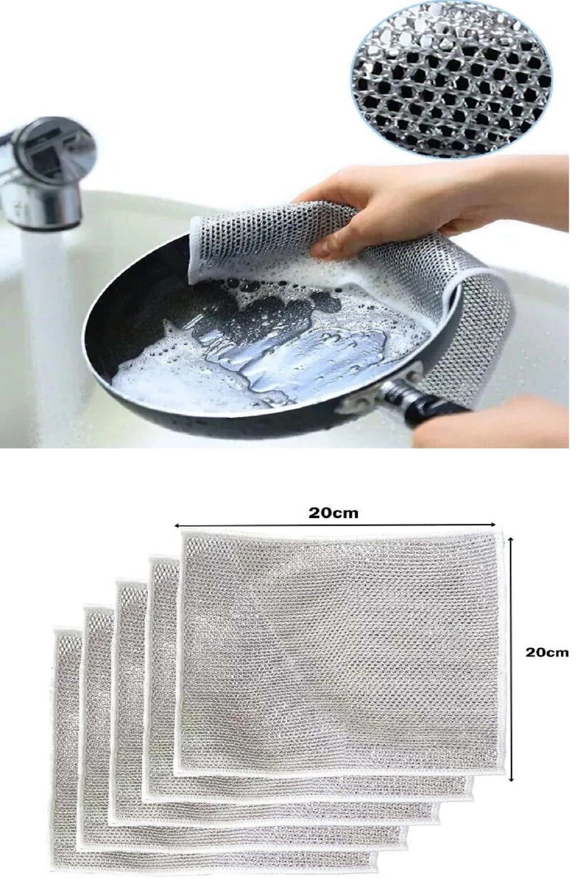 5 Adet Çok Fonksiyonlu Çizmeyen Tel Bulaşık Bezi Bulaşık Havlusu Bulaşık Temizlik Ovma Bezi (4396)