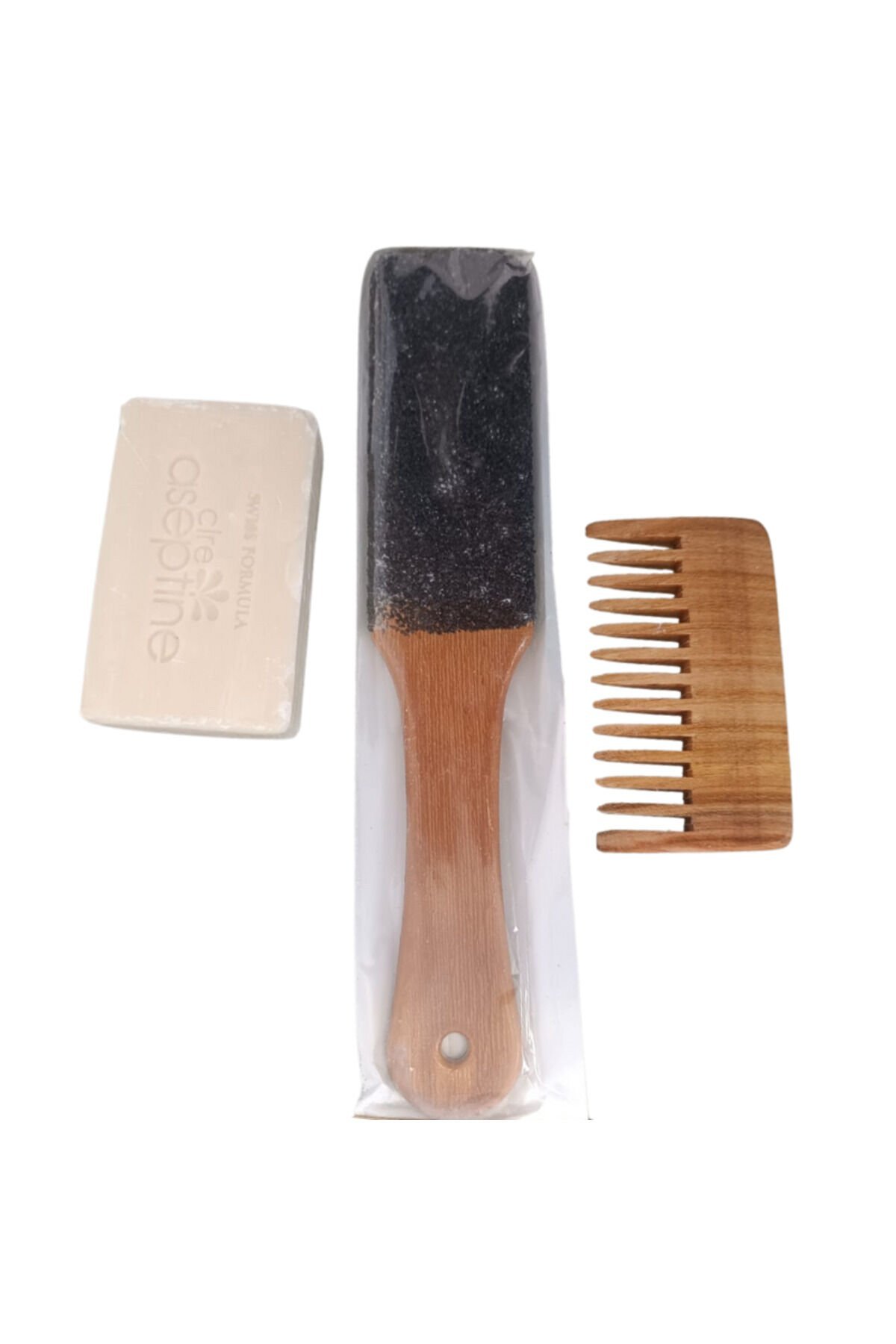 5'Li Doğal Keçi Kılı Banyo Sırt Lifi Ve El Kesesi Topuk Törpüsü Ahşap Şimşir Tarak Sabun Set