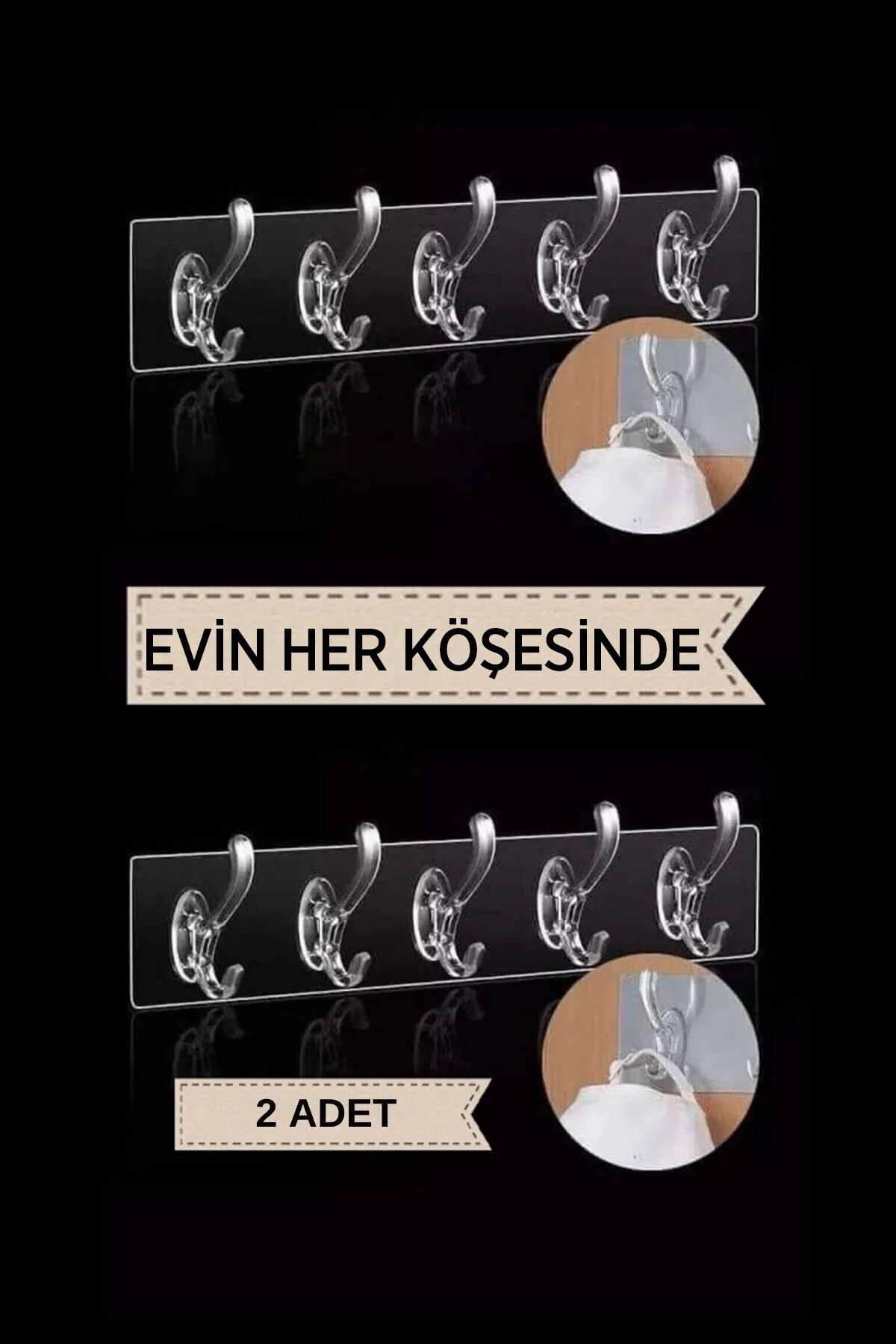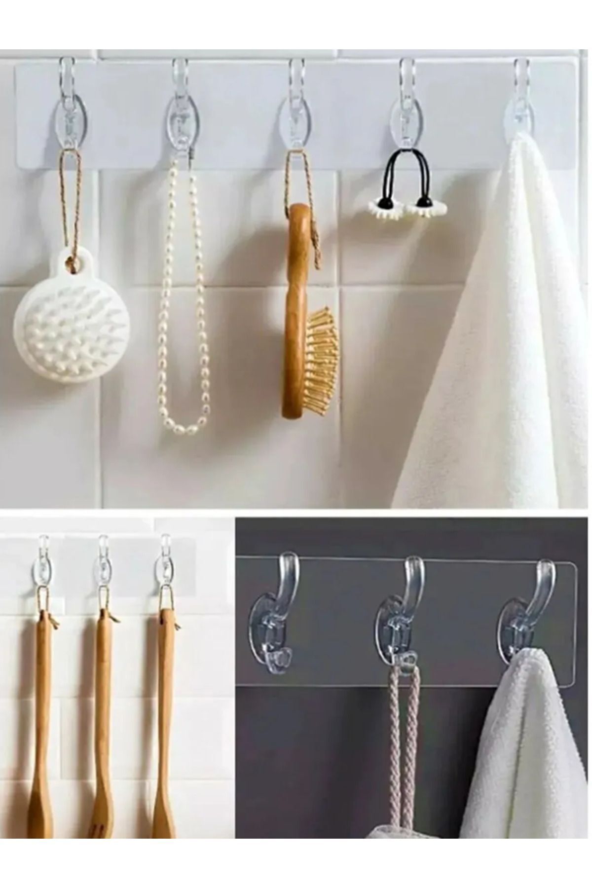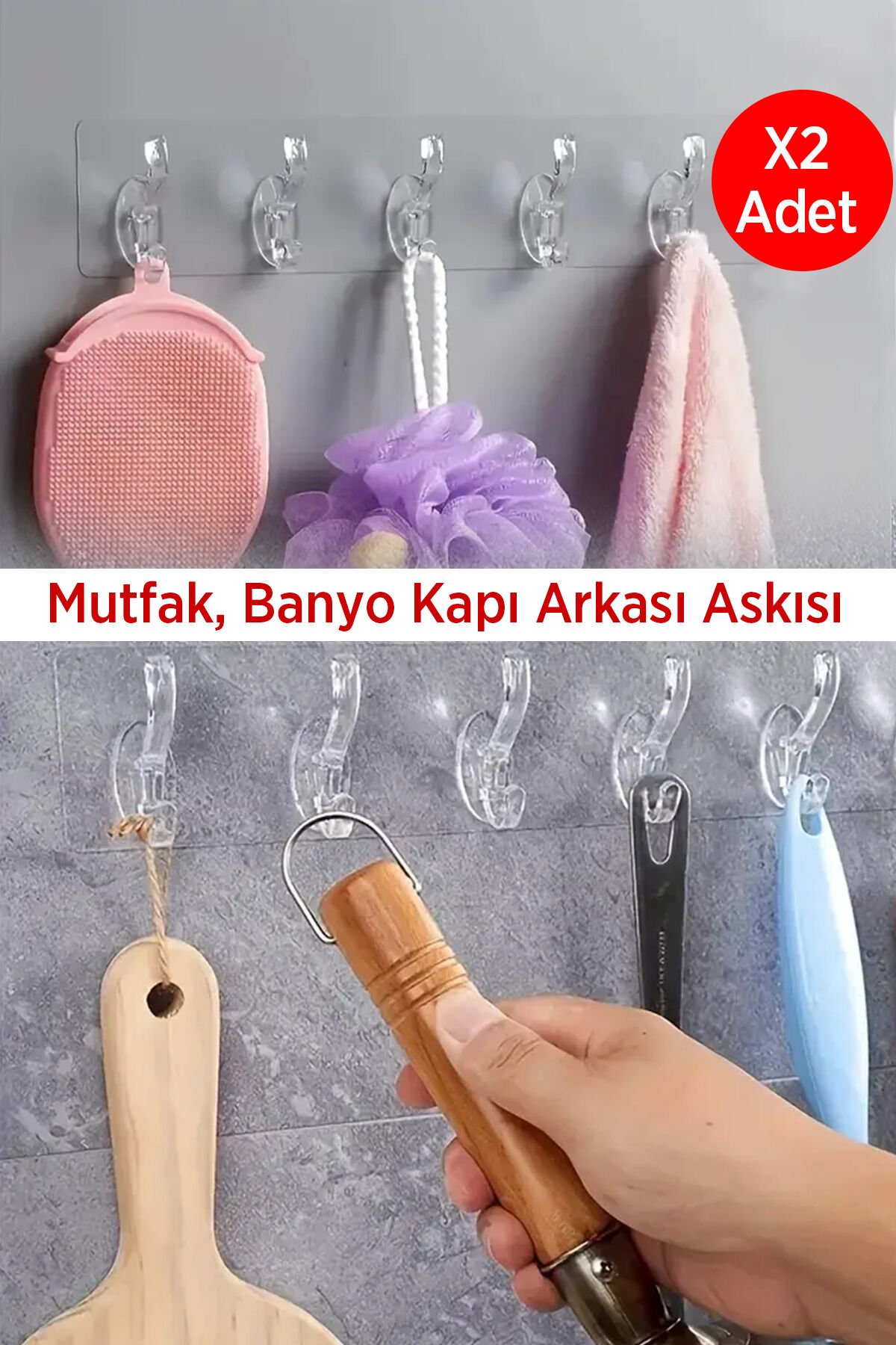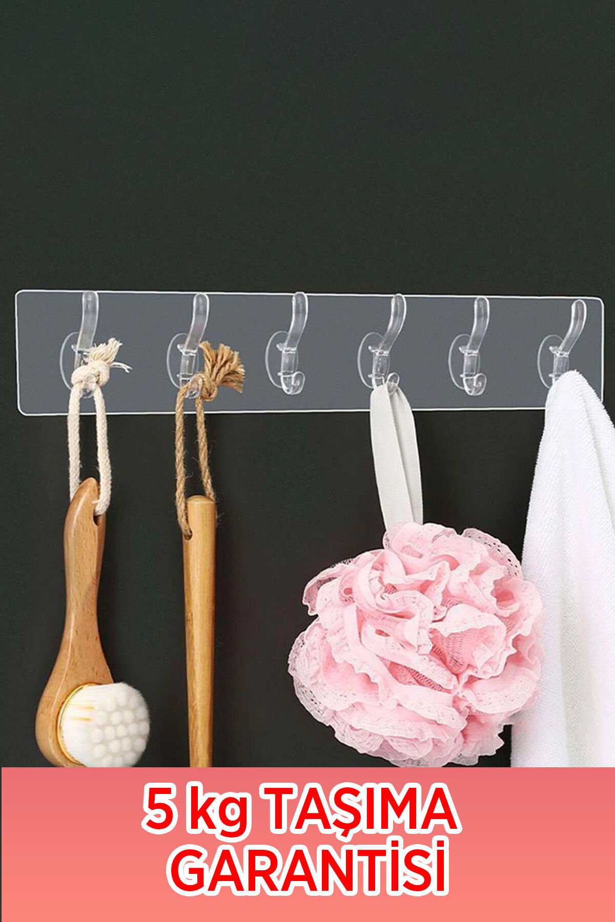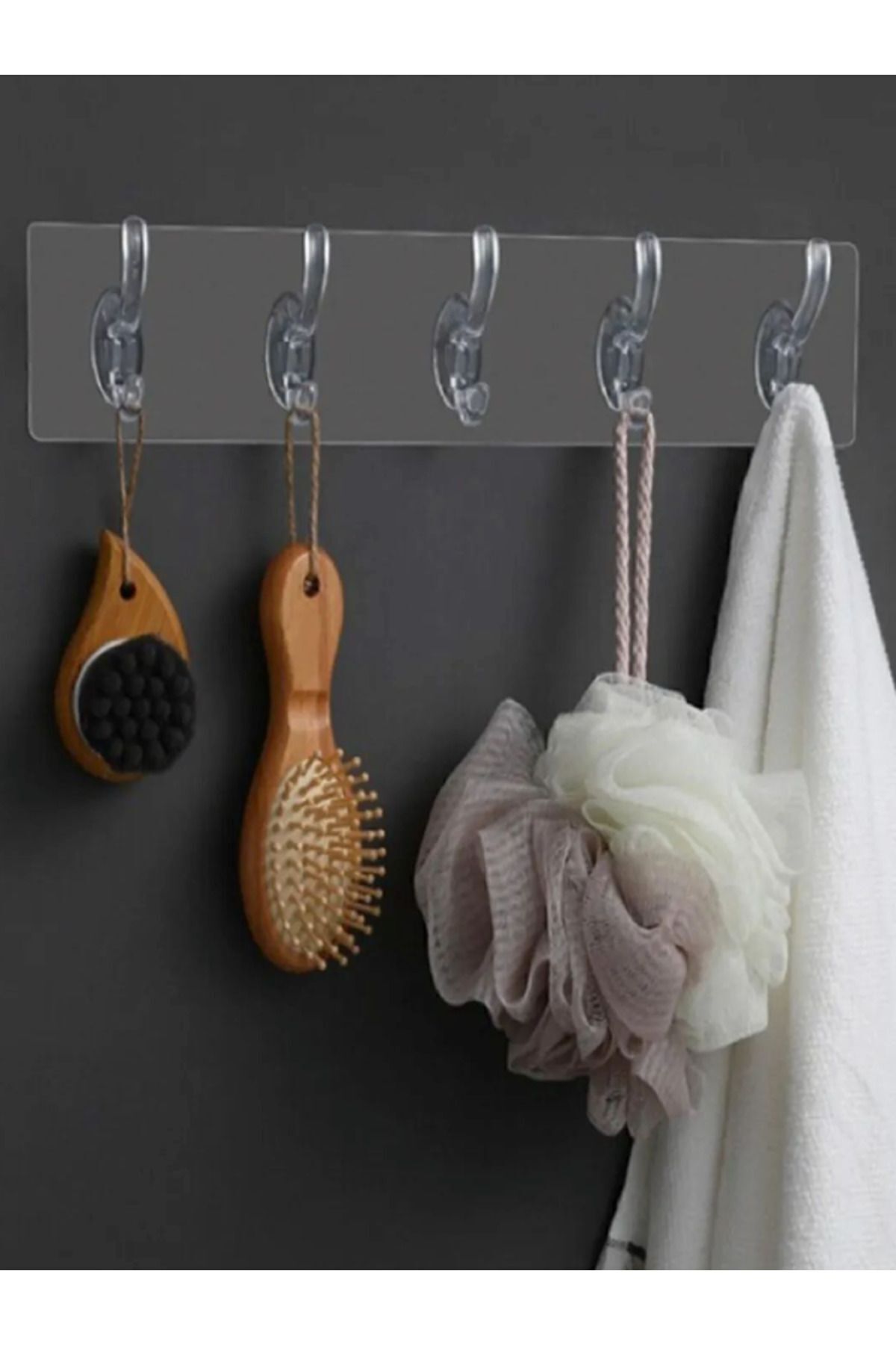 5'li Şeffaf Askı, Süper Yapışkanlı Askı, Banyo Askısı, Kapı Arkası Askılık, Şeffaf 5'li Askılık