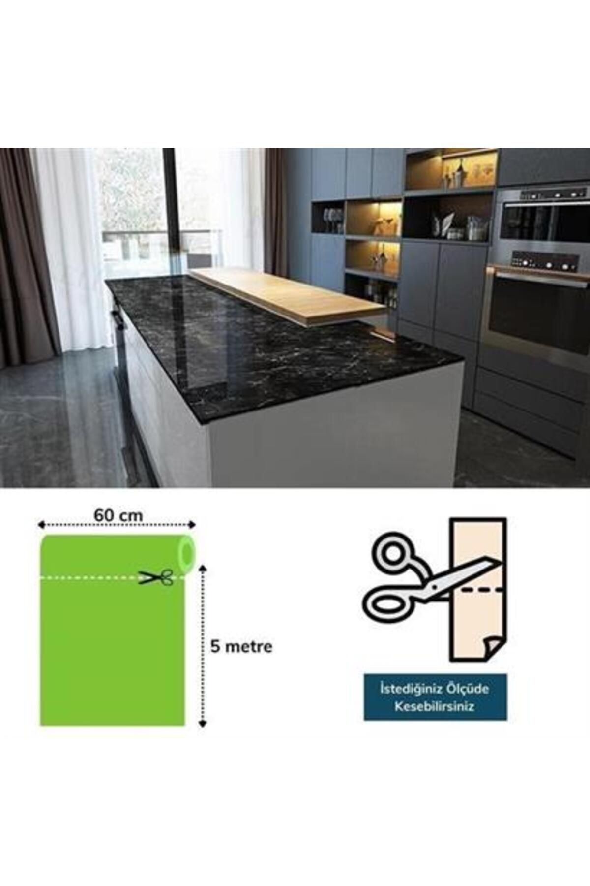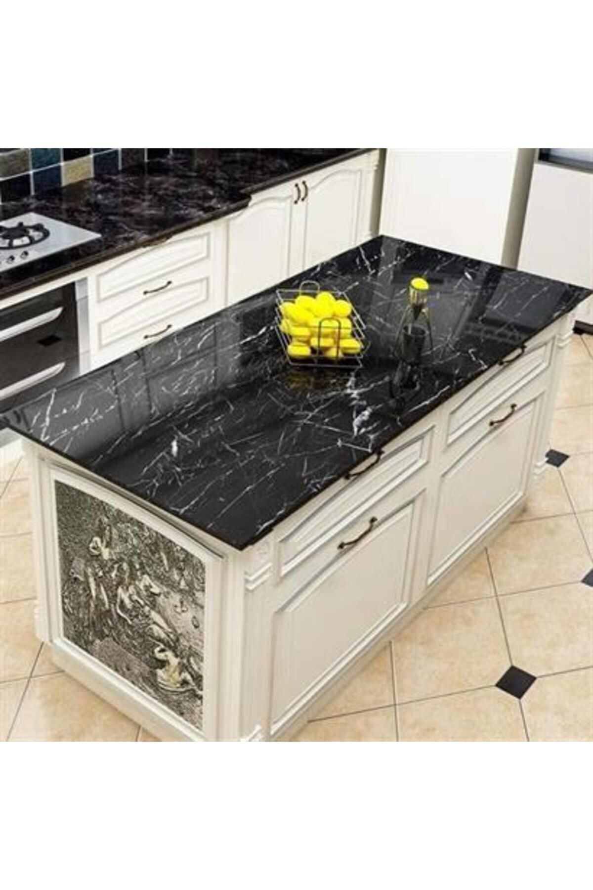 5 Metre Siyah Mermer Desenli Su Geçirmez Yanmaz Mutfak Tezgahı Dolap Duvar Kaplama Folyo Sticker