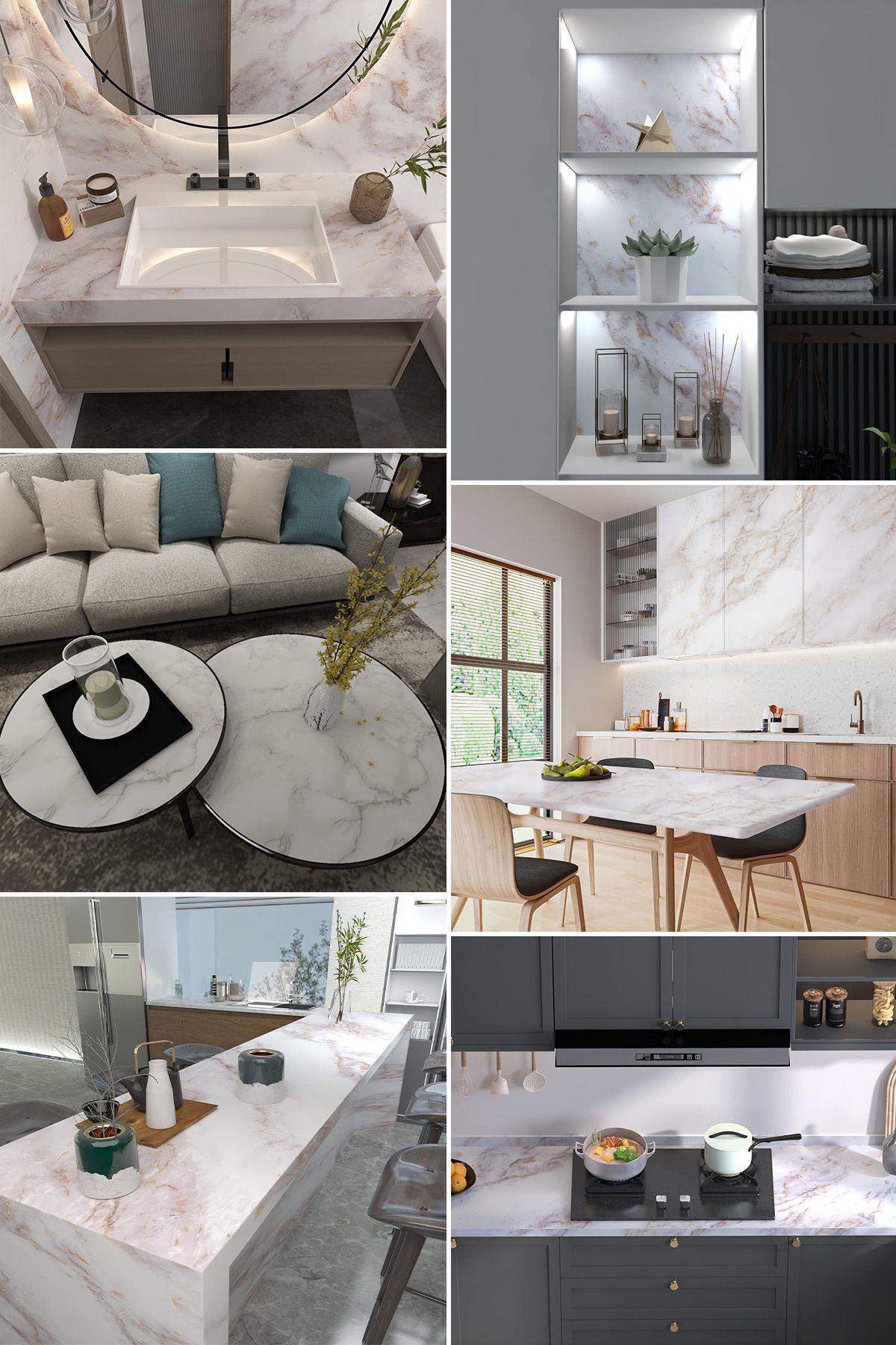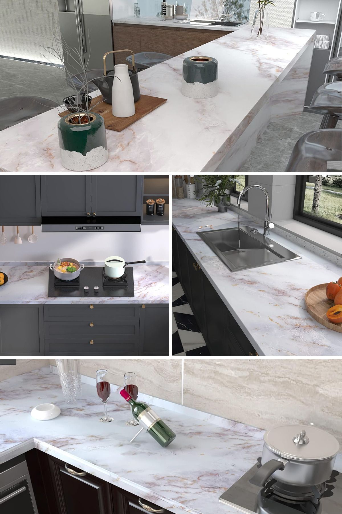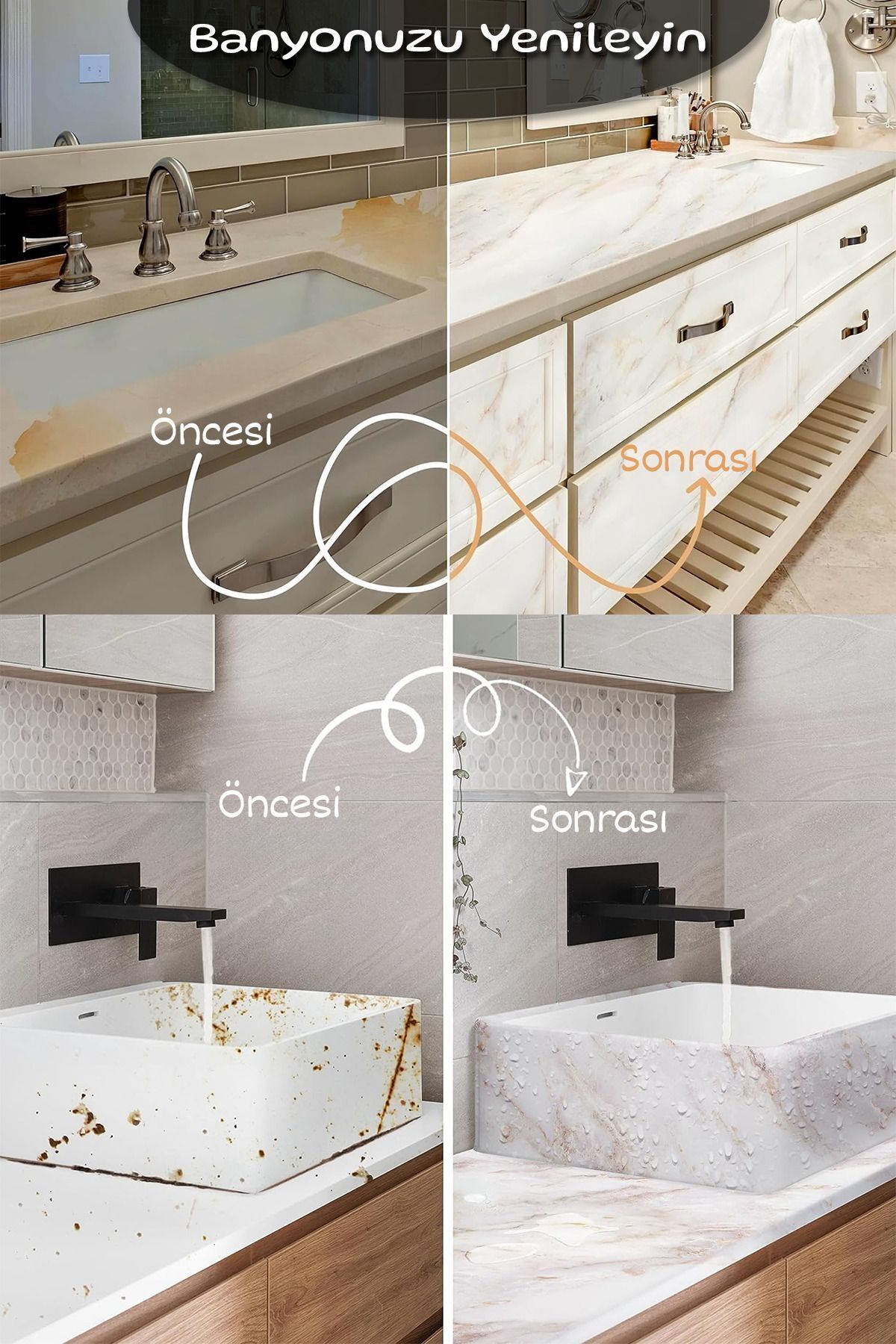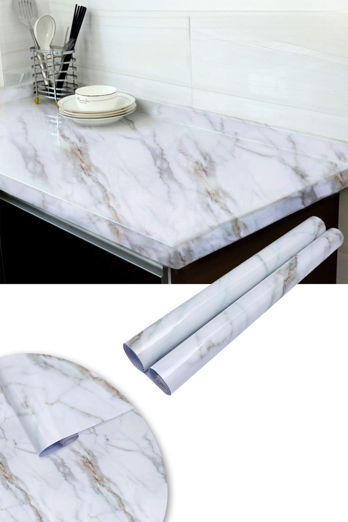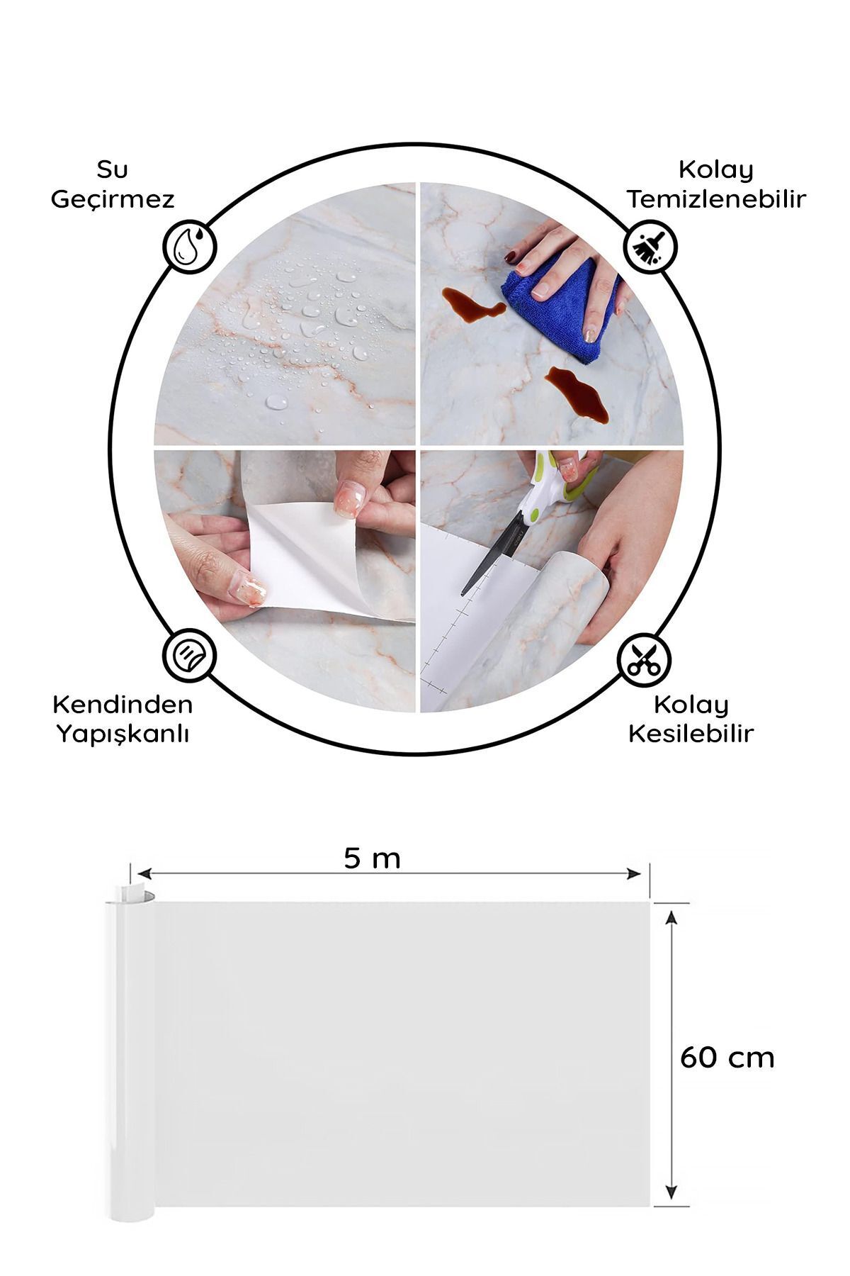 5 metre x 60 cm Mermer Desenli Masa Tezgah Mutfak Su Geçirmez Yapışkanlı Folyo Sticker Beyaz