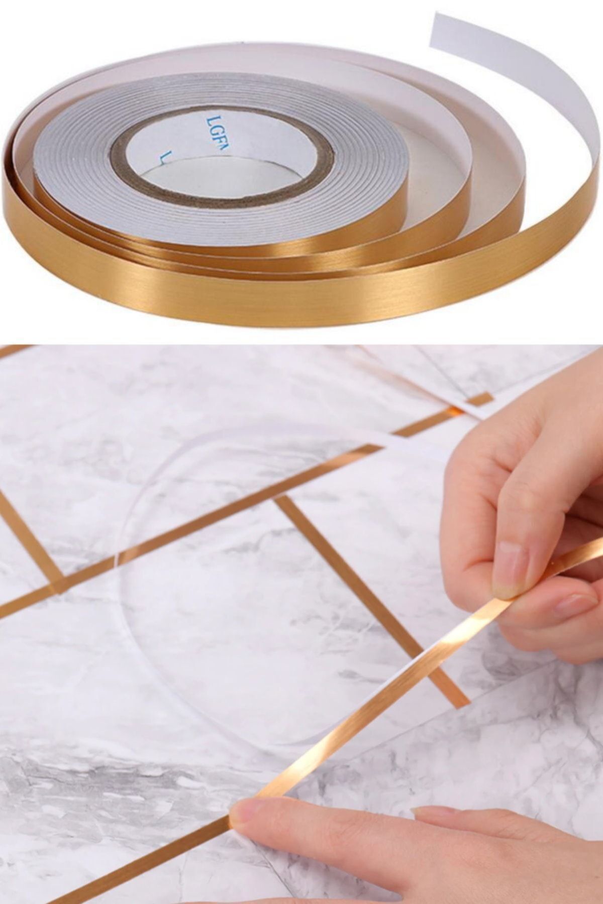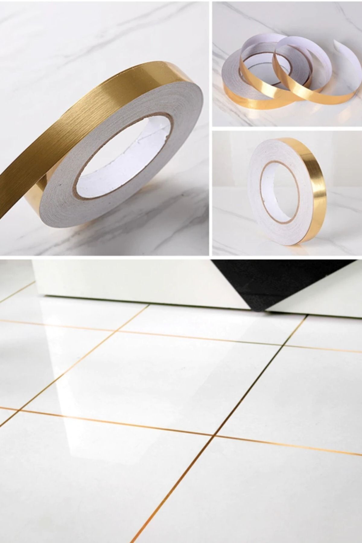 50 Metre Banyo Lavabo 0.50 Cm Duvar Için Uygun Fayans Arası Şerit Bant Gold Yansıma Görünüm Seramik