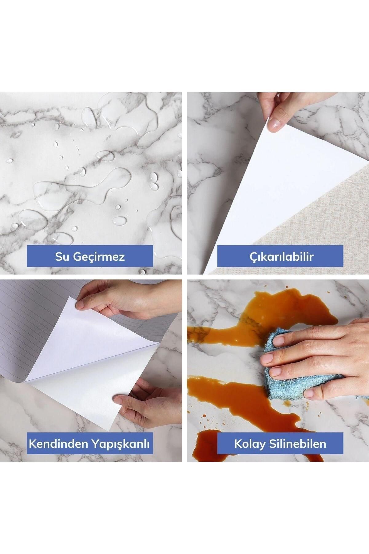Mermer Desenli Masa Tezgah Mutfak Duvar Kağıdı Su Geçirmez Yapışkanlı Folyo Sticker 60cm*5mt Mermer desenli yapışkanlı folyo ürünüyle birlikte evinizde şık ve modern bir görünüm sağlayabilirsiniz. ; Mermer desenli kaplama duvar kağıdı yapışkanlı folyo ürünü su geçirmez ve ateş almaz özelliğe sahiptir. ; Mermer görünümlü folyoyu dilediğiniz yere kolayca yapıştırabilir ve sonrasında leke olmadan ürünü çıkarabilrsiniz. ; Granit mermer görünümlü yapışkan duvar kağıdını istenen yüzeye yapıştırabilirsiniz. ; Özellikle duvar kağıdı, masa ve mutfak tezgah yüzeyinde, dolap kapaklarında ve çekmece içlerinde ürünü kullanmanızı tavsiye ederiz. ; Mermer desenli yapışkan duvar kağıdı ürünün yapıştırırken yüzeyde bir boşluk bırakmamaya özen gösterin. ; Ürünün üst düzeyi tamamen su ve toz geçirmezdir. ; Özellikle yüzeye dökülen sıvı malzemelerde yüzeyi oldukça pratik bir şekilde iz kalmadan temizleyebilirsiniz. ; Ürün Nasıl Kullanılır. ; 1. ; Ürünü yerleştirmek istediğiniz yeri belirleyin. ; 2. ; Ürünün arkasında bulunan koruma kağıdını çıkarınız. ; 3. ; Yerleştirilmek istenen düzeye yavaşça ve arada hava kalmayacak şekilde kitap yardımıyla düzleştirerek yapıştırın. ; 4. ; Fazla kalan yapışkanlı kısımları kesin 5.Artık kullanıma hazır. ; Ürün İçeriği 1 adet x Mermer Desenli Masa Tezgah Mutfak Duvar Kağıdı Su Geçirmez Yapışkanlı Folyo Sticker 60cm*5mt Ürün Paket Boyutları En:3,5 cm Boy: 3,5 cm Yükseklik: 60 cm Ürün Boyutları: En: 60 cm Boy: 500 cm;