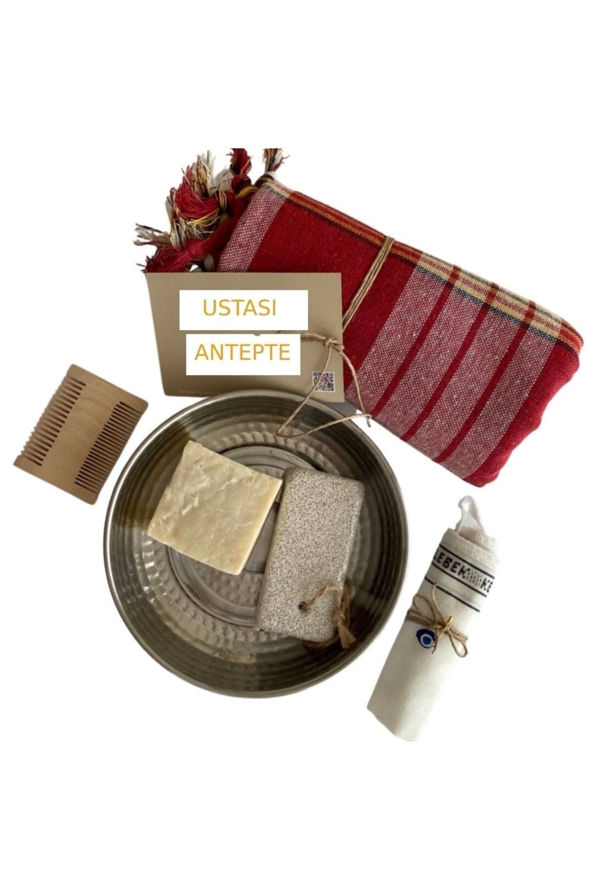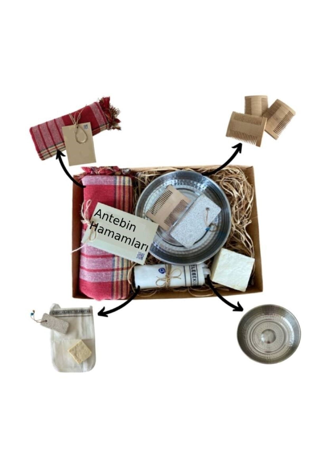 Metal malzeme kullanımı sayesinde uzun ömürlü ve dayanıklı bir yapıya sahip, banyo rutininizi tamamlayacak 6 parçalık set; Bakır hamam tası ile banyo sonrası cildinizi nazikçe kurulayın ve doğal bir masaj deneyimi yaşayın; İpek kese, saçlarınızı nazikçe tararken aynı zamanda doğal bir masaj yapmanızı sağlar; Ponza taşı, doğal peeling etkisiyle cildinizi ölü deriden arındırarak yenilenmiş bir his bırakır; Şimşir tarak, saçlarınıza doğal bir parlaklık kazandırırken aynı zamanda kolay kullanım sunar; Zeytinyağlı sabun ile cildinizi derinlemesine temizlerken aynı zamanda doğal bakımın keyfini çıkarın;