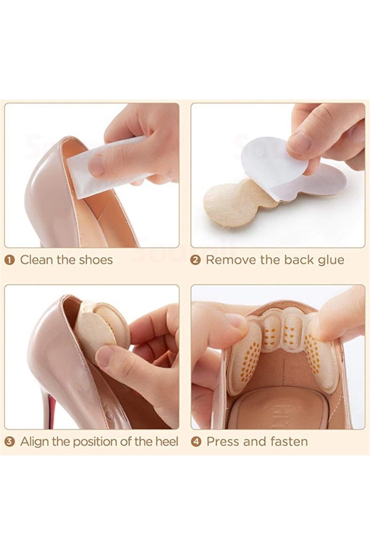 Ayakkabıların ayaklarınızı sürtünmesini önler. ; Uzun bir yürüyüş nedeniyle ayak ağrısından ve topuk vurmasını önleyin Rahat havalı sünger ve nefes alabilen kumaştan yapılmış, ayağınızı destekleyin. ; Uzun bir yürüyüşte ayaklarınız için endişelenmeyin. ; Esnek, rahat ve yüksek topuklu ayakkabılar, botlar, düz ayakkabı, dans ayakkabıları vb. ; İçin kullanılabilir. ; Kalınlık 6 mm sadece doğru ayakkabı boyutu kullanımı için uygundur Malzeme: Sünger Renk: Krem, Siyah, Boyutları: En: 4 cm - Boy: 9,8 cm Kalınlık: 6 mm;