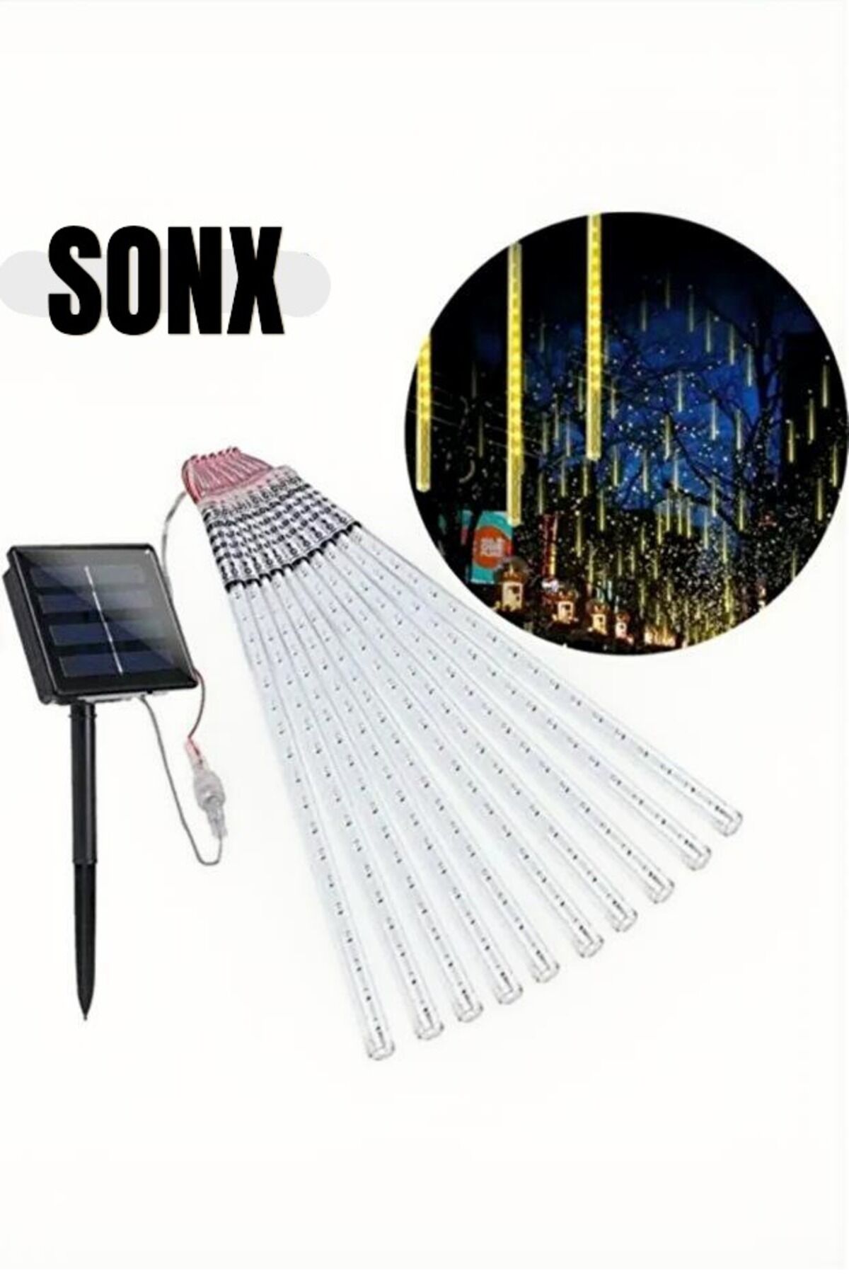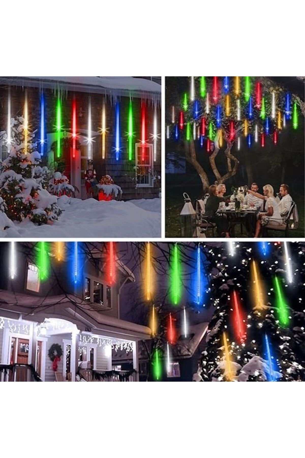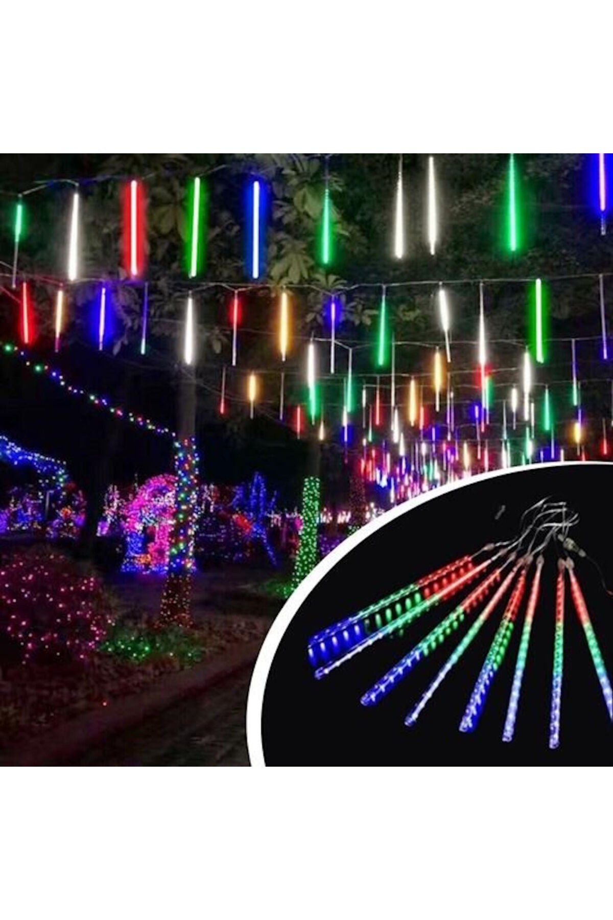 8 Adet Meteor Kayan Tüp Led Ağaç Bahçe Sokak Yağmur Işıkları Solar Güneş Enerjili
