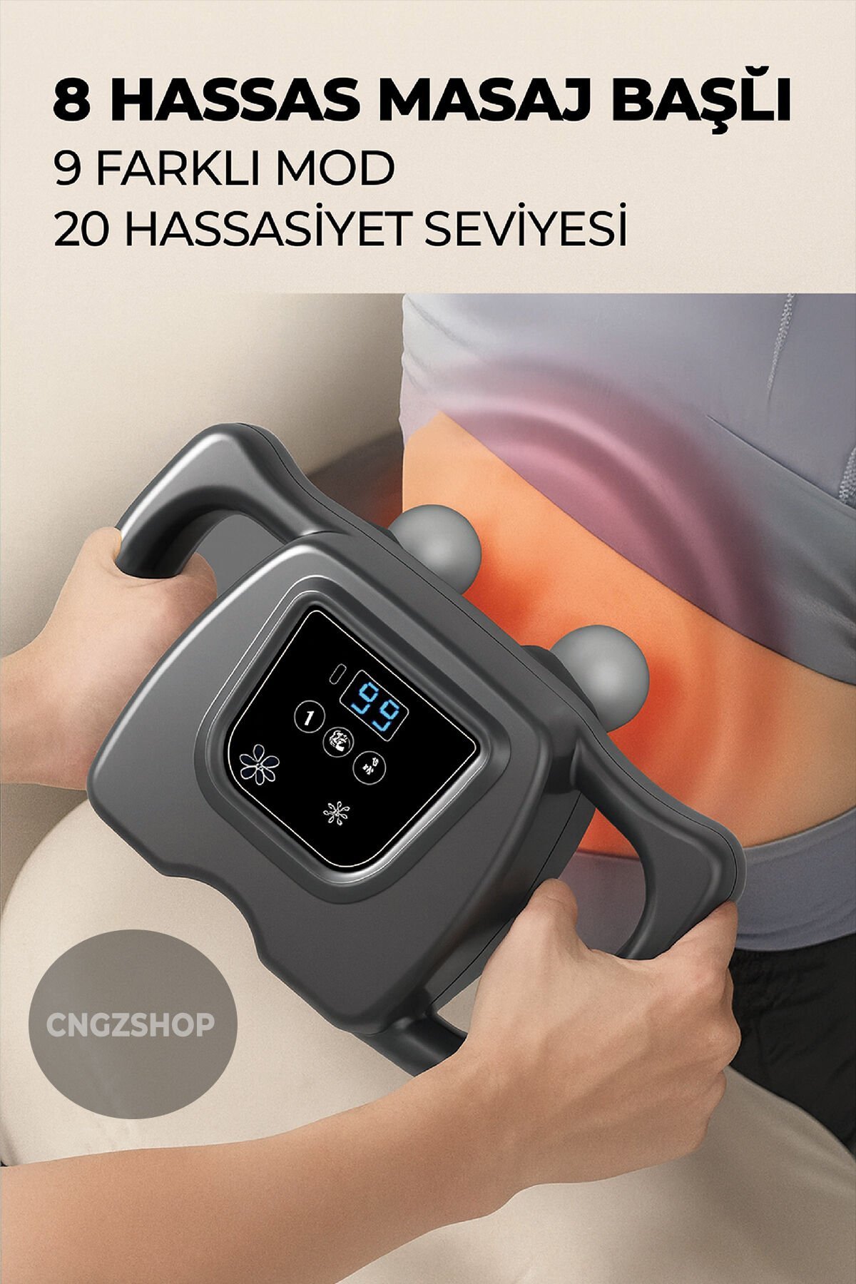 8 Başlıklı Şarjlı Masaj Aleti – Isıtmalı, Taşınabilir, Çok Fonksiyonlu Masaj Cihazı