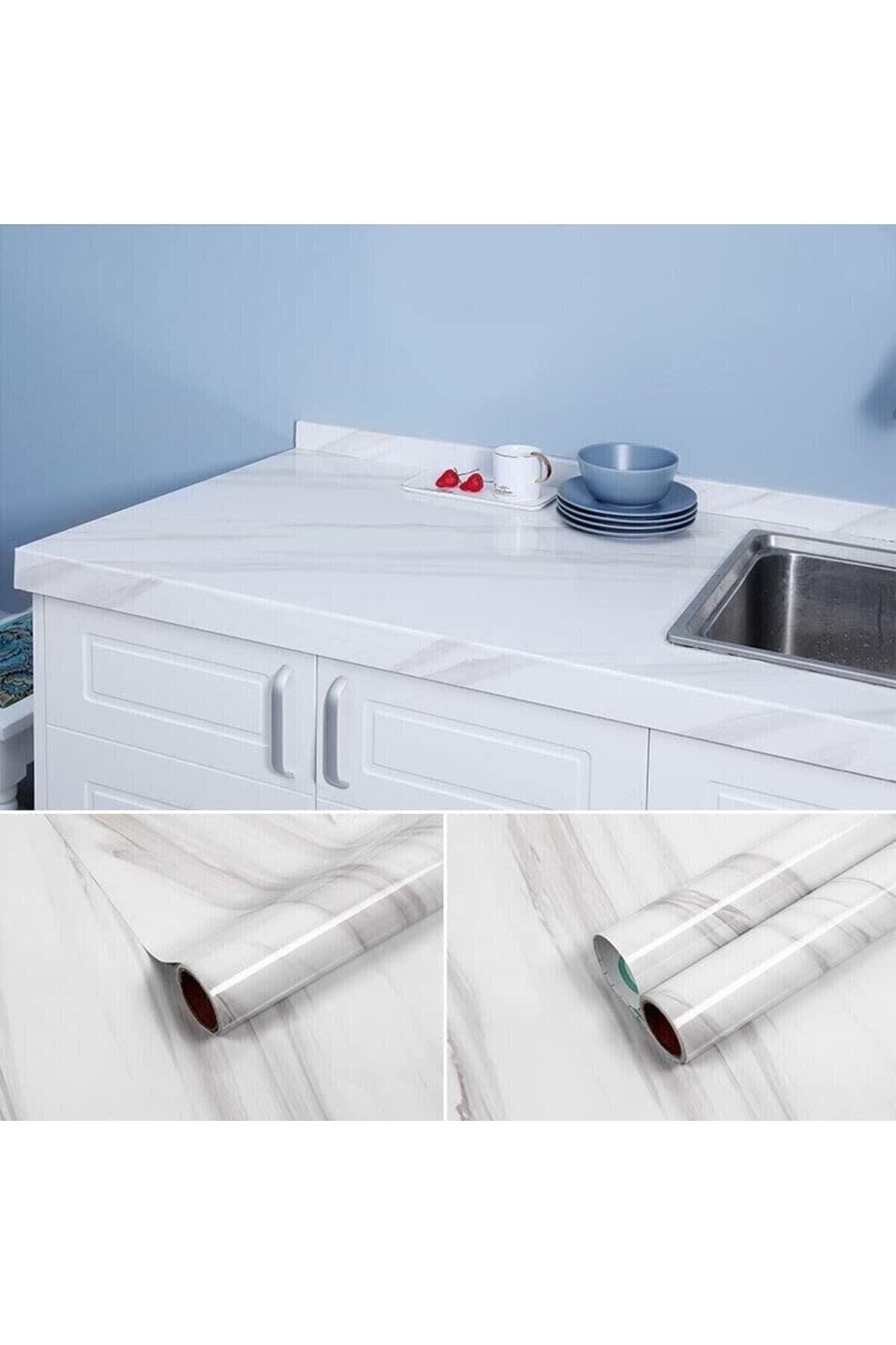 Açık Mermer Desenli 5 Metre X 60 Cm Kendinden Yapışkanlı Kaplama Kağıdı Tezgah&duvar&dolap&raf Folyo