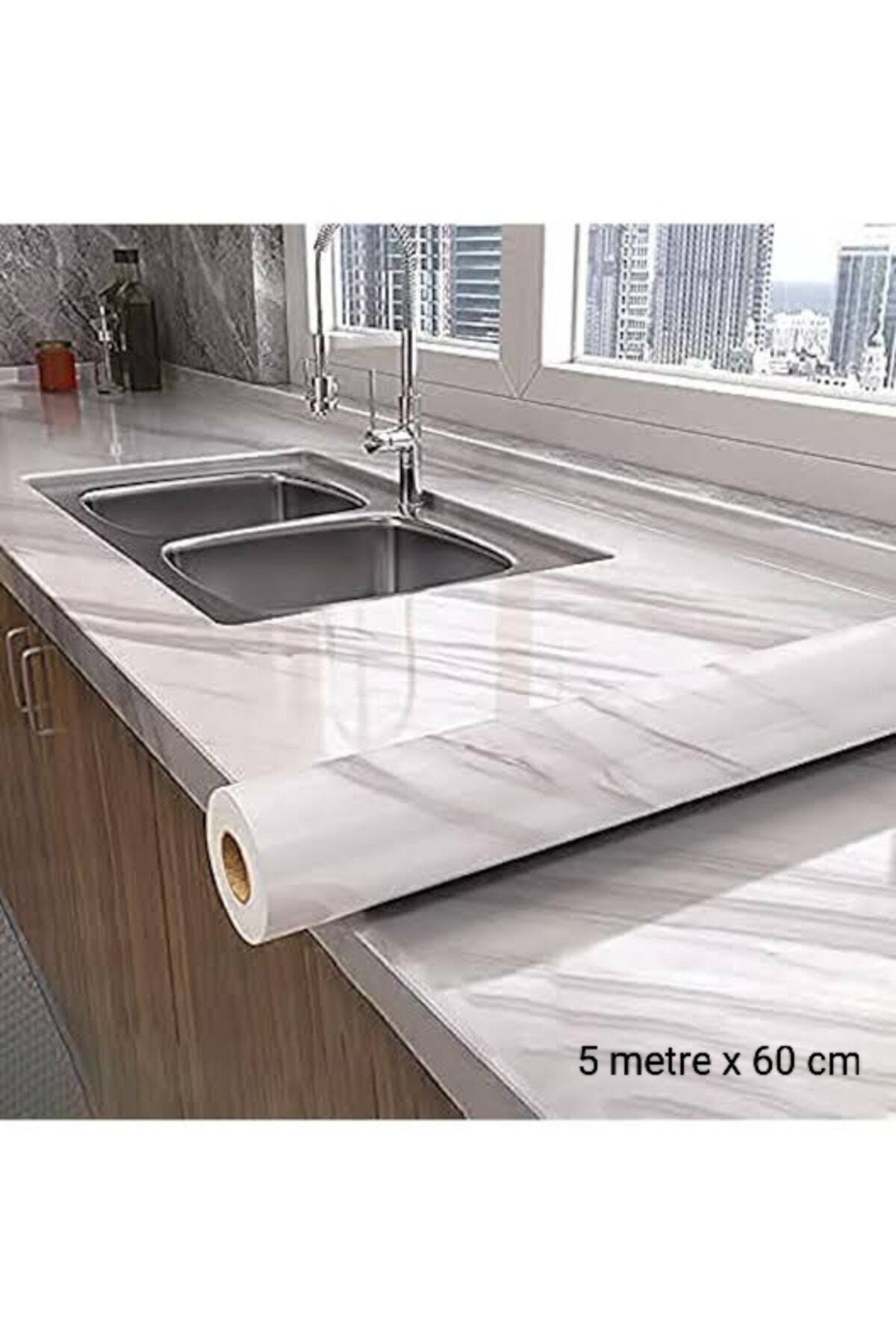 Açık Mermer Desenli 5 Metre X 60 Cm Kendinden Yapışkanlı Kaplama Kağıdı Tezgah&duvar&dolap&raf Folyo