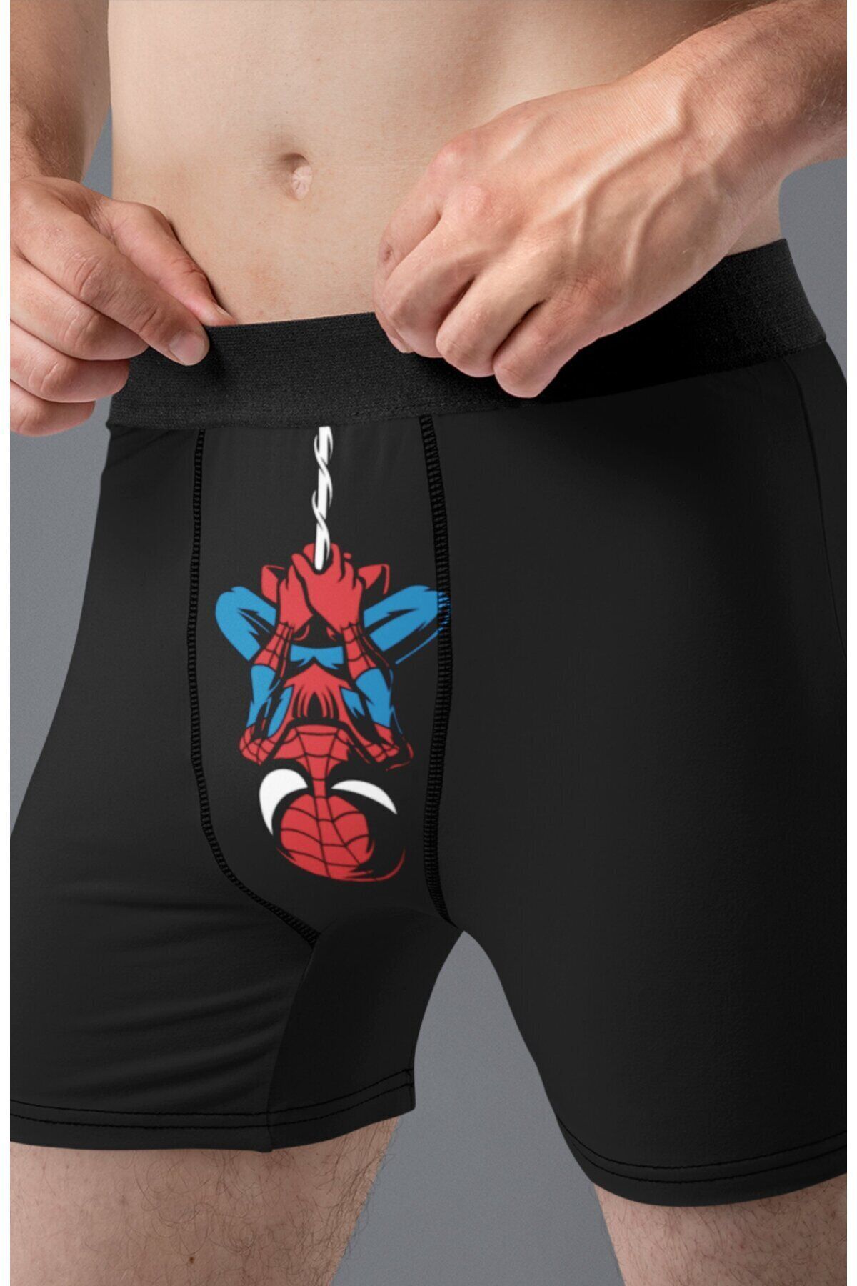 Ağdan Sarkan Örümcek Adam Baskılı Modal Penye Kumaş Rahat Kalıp Erkek Boxer
