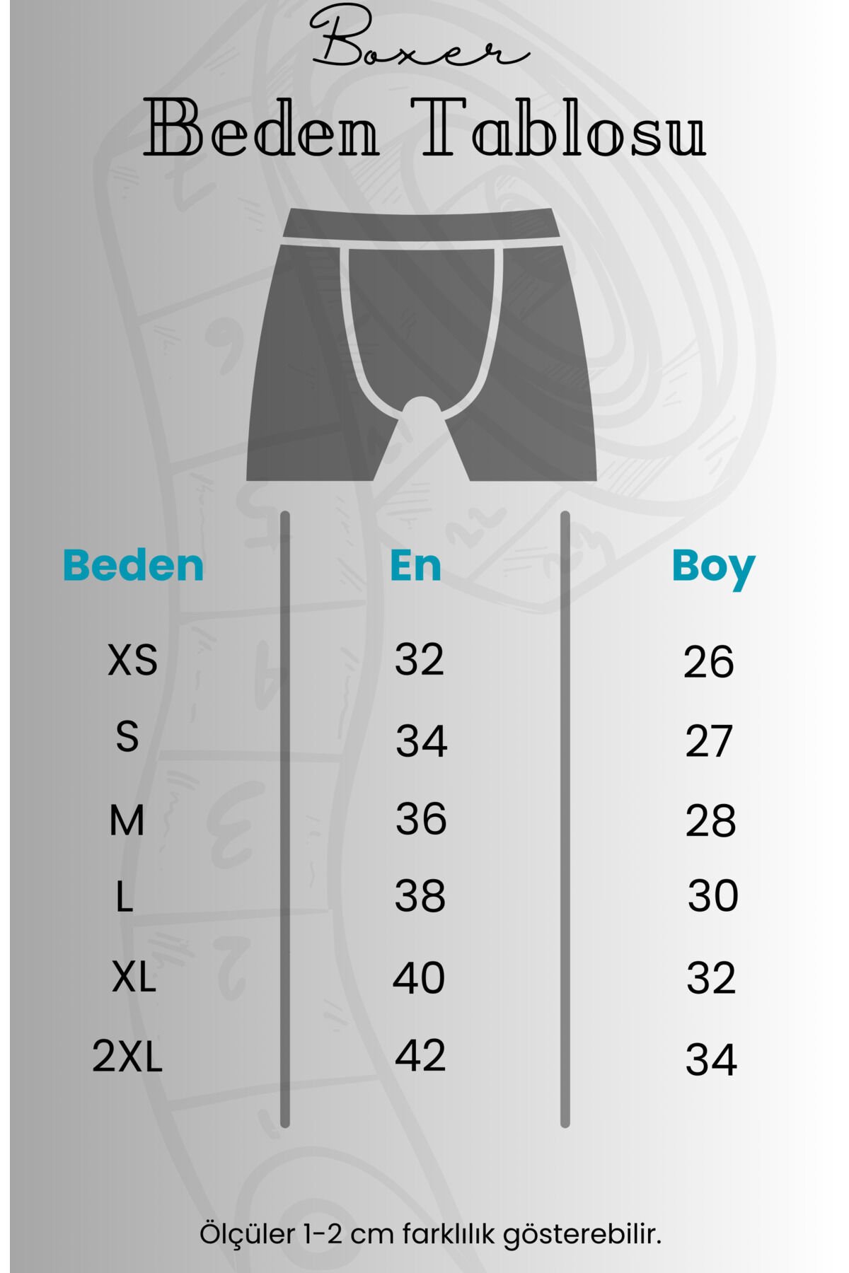 %47 Modal %47 Penye % 6 Elastan kaliteli kumaştan üretilmiştir.; Beli lastiklidir. Esnek kumaş yapısına sahiptir. ; Rahat kalıptır. Kendi bedeninizi tercih etmeniz tavsiye edilir.; Baskı boyutu 15-20 cm dir.; Modal kumaş dayanıklı ve doğal yapısıyla öne çıkmaktadır. Kayın ağacından elde edilen bir kumaş türüdür. Buna bağlı olarak içerisinde yüksek oranda selüloz bulunmaktadır. Modal kumaş içeriği tamamen doğaldır.; S :; M :; L :; XL :; 2XL :; Baskılarımız yıkamaya dayanıklı olup, 30 derecede iç-dış ters çevrilerek yıkandığı takdirde, çatlama veya dökülme yapmaz. Baskının zarar görmemesi için baskılı yüzeyi ütülemeyiniz. Sadece ters çevirerek ütüleyiniz. Maksimum 30 derecede iç-dış ters çevirerek yıkamalısınız. Pamuklu tüm tekstil ürünlerini 30 dereceden yüksek sıcaklıkta yıkamamak ürünün ve üzerindeki baskının ömrünü uzatır. Yüksek sıcaklıkta yıkanmış giysiniz ve üzerindeki baskı yıpranabilir. Giysinizin deforme olmaması ve diğer çamaşırlardan leke alabileceği ihtimaline karşın aynı renge sahip giysilerle birlikte, ters çevirerek yıkayınız. Giysinizi çamaşır makinesine nemli şekilde koymayınız. Yoğunlaştırılmış kimyasal içeren deterjanlar kullanmamaya özen gösteriniz. Bu deterjanların yanlış miktarlarda kullanılması, giysinizin ve üzerindeki baskının ömrüne etki edebilir. Çamaşır suyu kullanmayınız. Açık havada ve ipe asılarak kurulanması tercih edilir. Kuru temizleme yaptırmayınız. Hafif nemli iken ütülemenizi tavsiye ederiz.; Görsellerde yer alan boxer harici ürünler fiyata dahil değildir.;