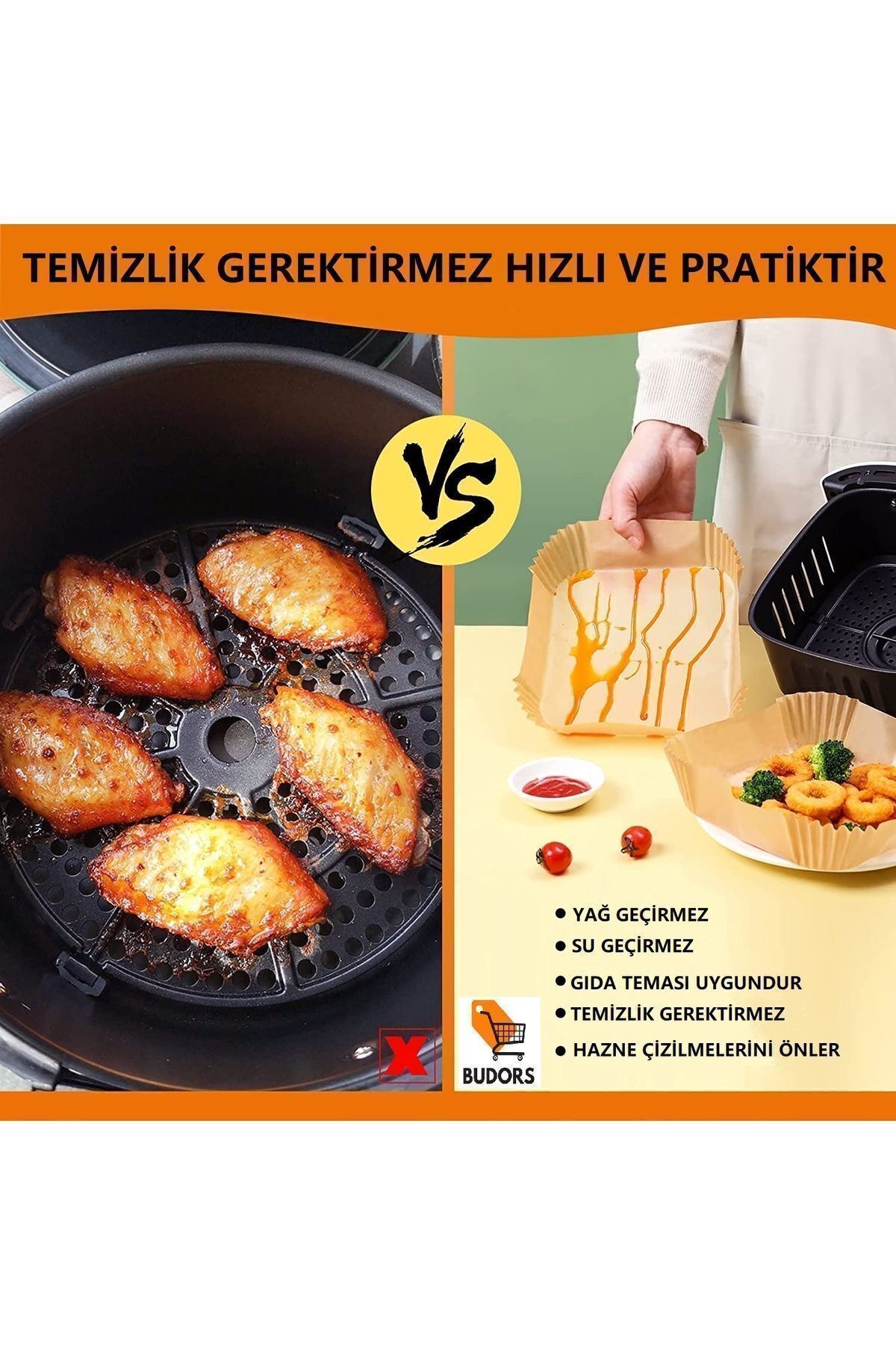 Tüm Markalara Uyumlu Fritöz Pişirme Kağıdı - Air FryerLiners Hava Fritözü Kare Tabak Model Bu önceden kesilmiş kare tabak model pişirme kağıdı, yiyecek artıklarının yapışmasını önler, yağa dayanıklı, her iki tarafı da yapışmaz, temizlenmesi kolaydır. Pişirdikten sonra temizlik yapmaktan nefret ediyorsanız, bunlar mutfağın olmazsa olmazlarıdır. ; Kullanıma hazırdır, Pratik kullanışlı ve hızlıdır. ; Pişirme kağıdı kullanıldığında yiyecekler daha lezzetli olur ve yiyecekler yanmaz. ; Maksimum 220 °C 'ye 30 dakikaya kadar pişirmeye uygundur ; Fritöz, mikrodalga fırın, kızartma fırını, tava için uygundur. Kek yapımında kullanılabilir. ; 50 adet 16 cm * 4,5 cm Kare Model Hava Fritözü için mükemmeldir. Şeffaf plastik kutu paketi kolay çıkarılabilir ve kalanı görülebilir. ; Pişirme Kağıdı kullanımında temizlik gerektirmediği için cihazınız haznesi çizilme ve yıpranmalara karşı korunmuş olur. ;