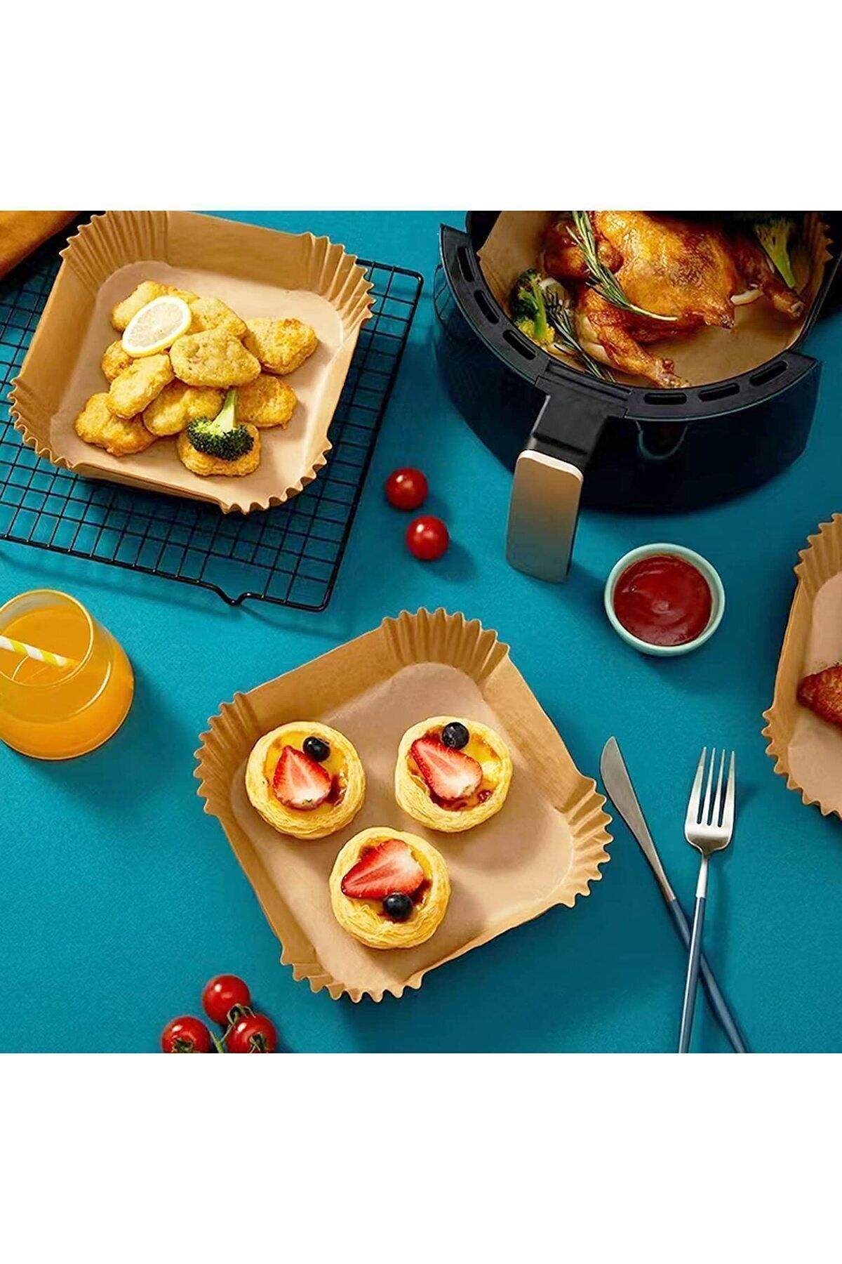 Airfryer Pişirme Kağıdı 50 Adet Airfrey Yagli Kagit Pisirme Kagidi Fritoz Air Fryer Hava Fritözü