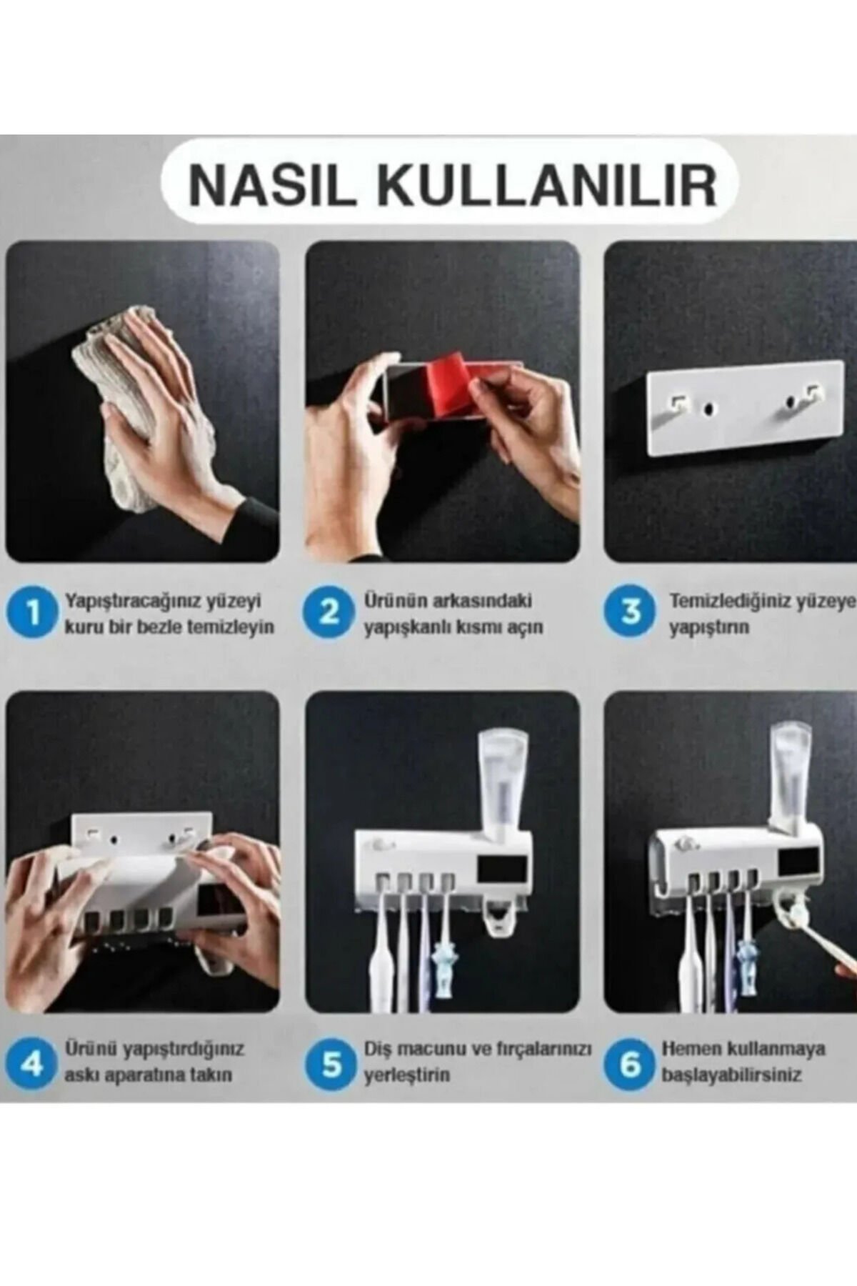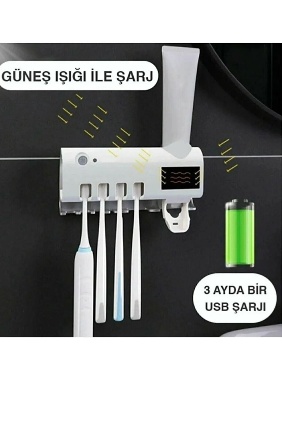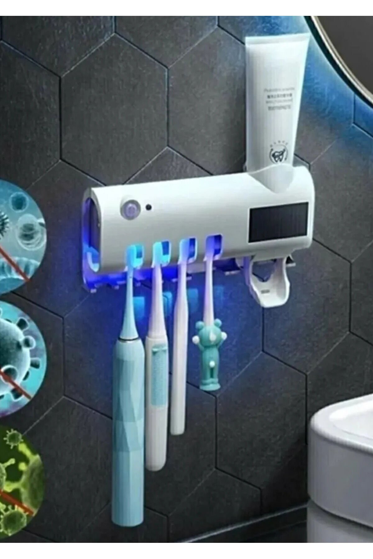 UV Işık Diş Fırçası Tutucu Duvar Diş Fırçası Sterilizatör Temizleyici Otomatik Diş Macunu Dağıtıcı Sıkıcı Banyo Aksesuarları Seti | Diş Fırçası ve AMP;Diş macunu tutucular
