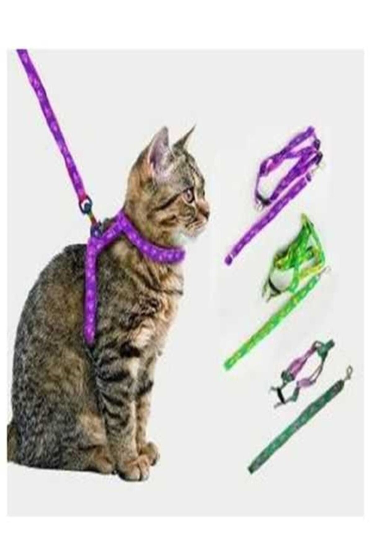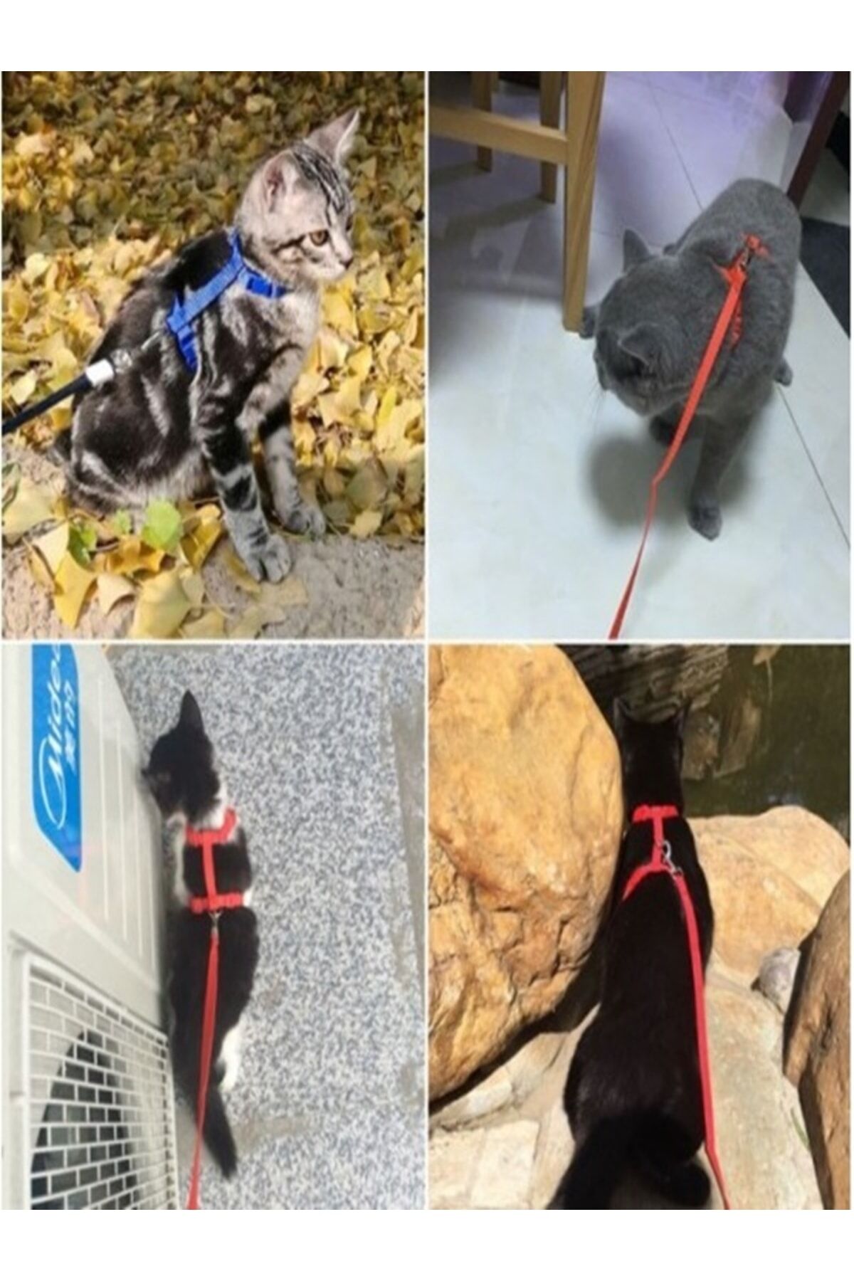 Ayarlanabilir Kedi Tasması 120 Cm Gezdirme Dolaştırma Ipi Tasması Göğüs Bağlantılı Rahat Bağlama