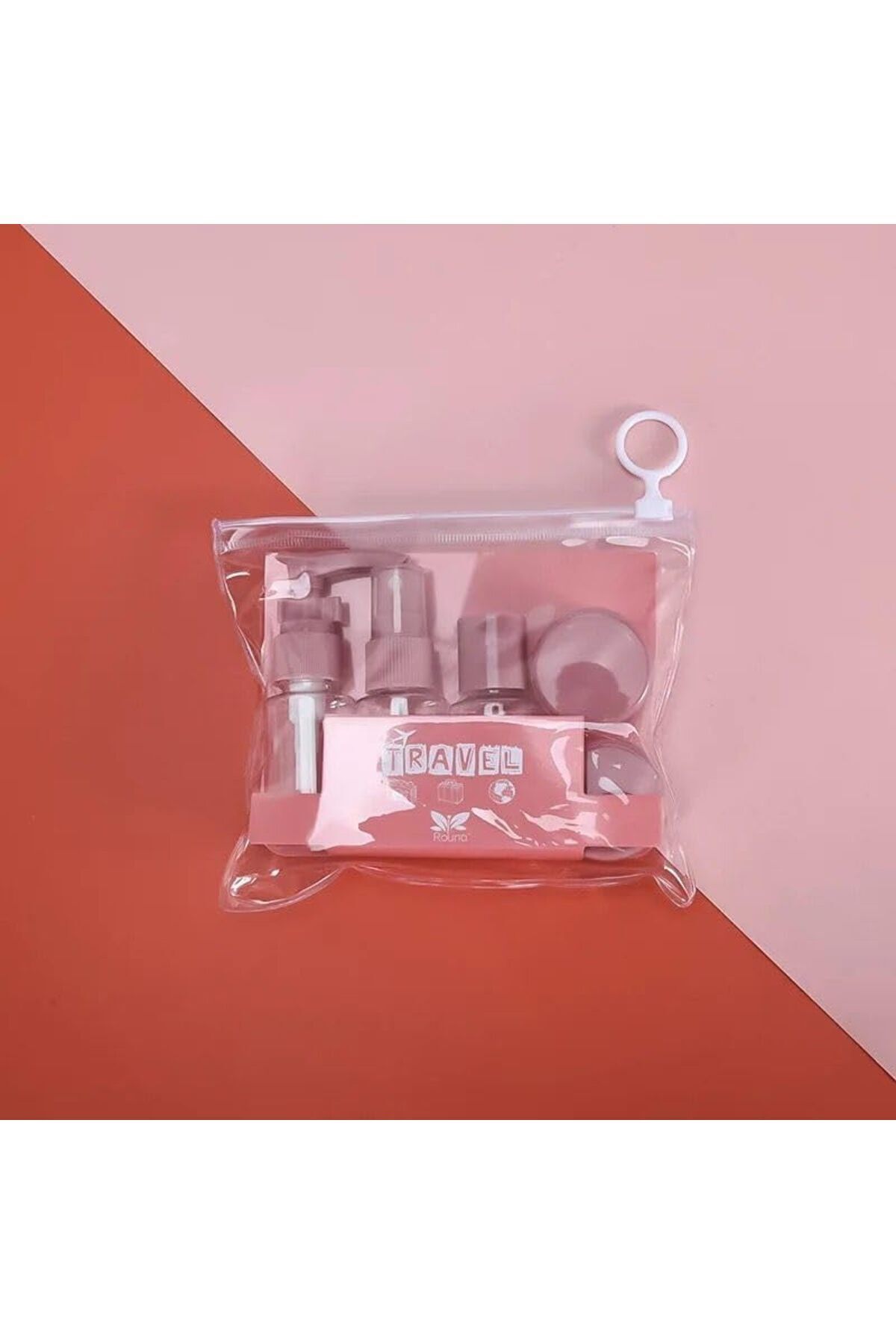 Banyo Seti 8 Parça,Seyahat Şampuan Şişesi Sızdırmaz Şampuan Şişesi, Çok Amaçlı Seyahat Tipi Doldurulabilir Krem Şampuan Şişe Seti Krem Kutusu (PEMBE) Yeni Model Çok Satanlarda