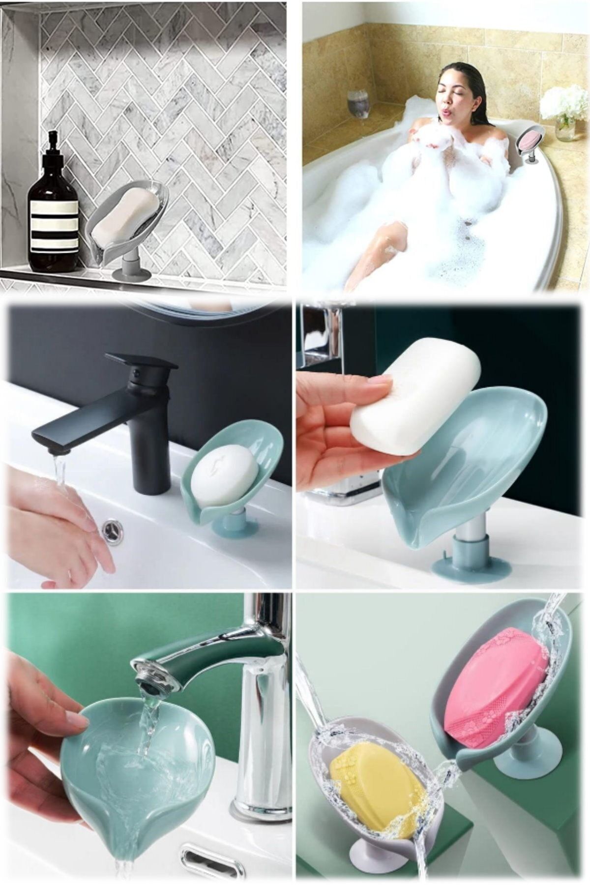 Banyolara Renk Katan Vantuzlu Akıcı Sabunluk Katı Sabunlar Için Yaprak Şeklinde Drenaj Yaratıcı Cool