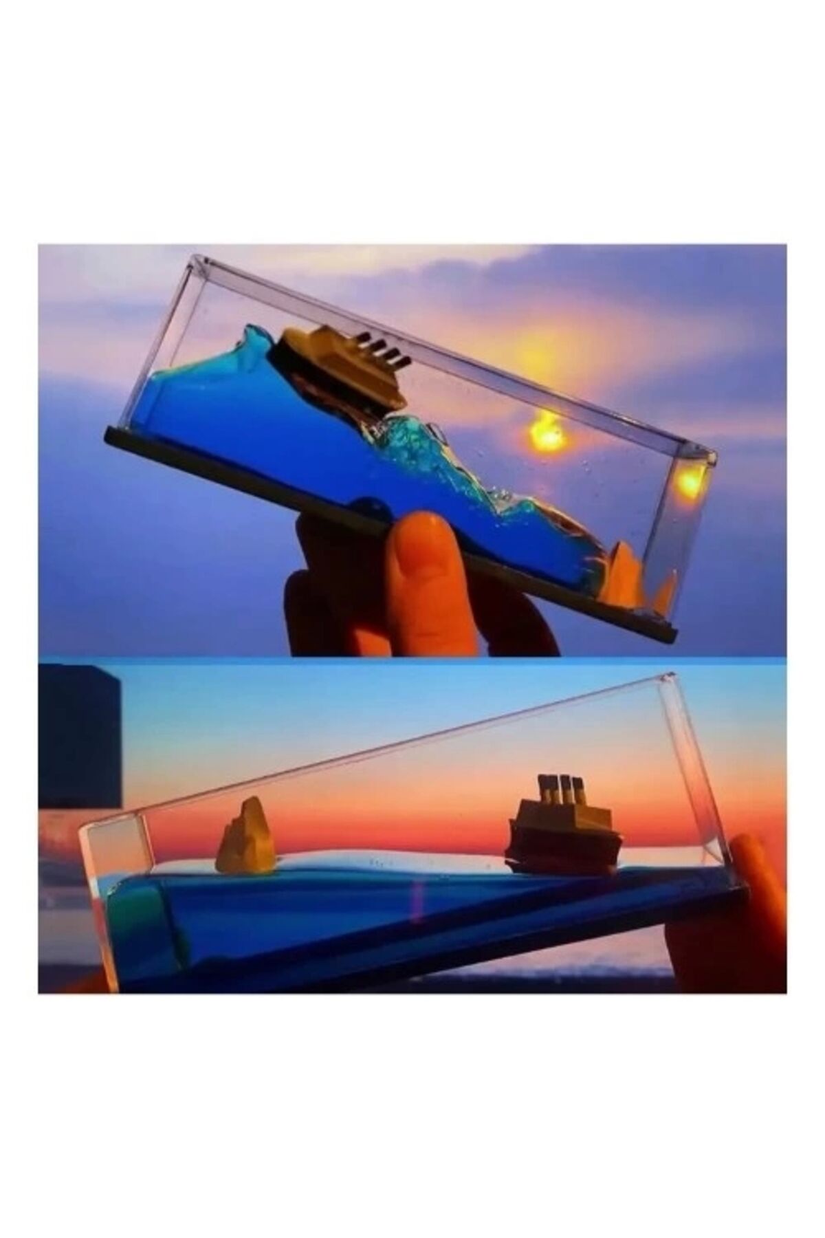 BATMAYAN GEMİ AKVARYUMÜrün Özellikleriİçerisindeki sıvı yoğunluğu nedeniyle gemi batmaz, devrilmez.; Evinizin farklı noktalarında dekorasyon aracı ile kullanılabilir.15.2cm x 5.2cm x 5.2cmÜrünün içindeki sıvıyı buharlaştırmak, ürünün tam hasarına neden olur.; Paket İçeriği1 adet batmayan gemi akvaryum