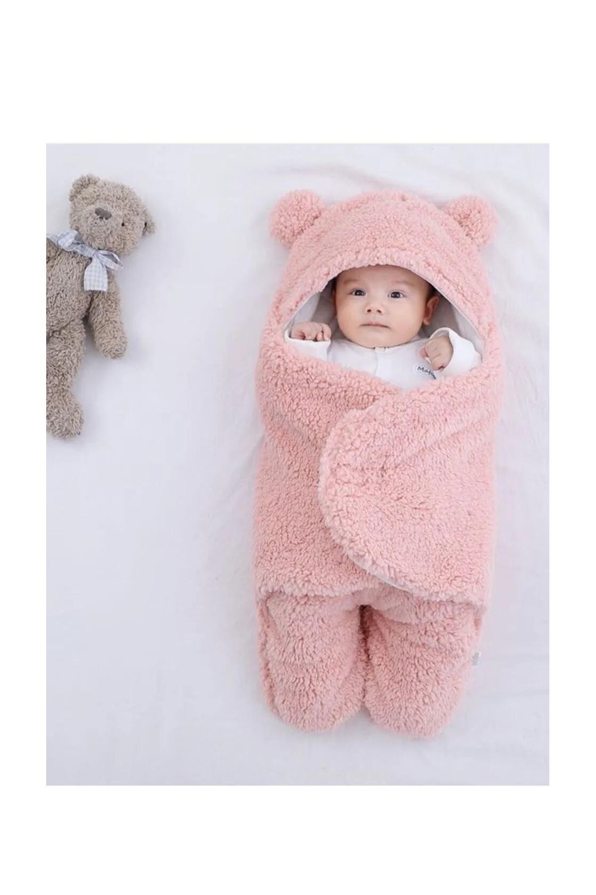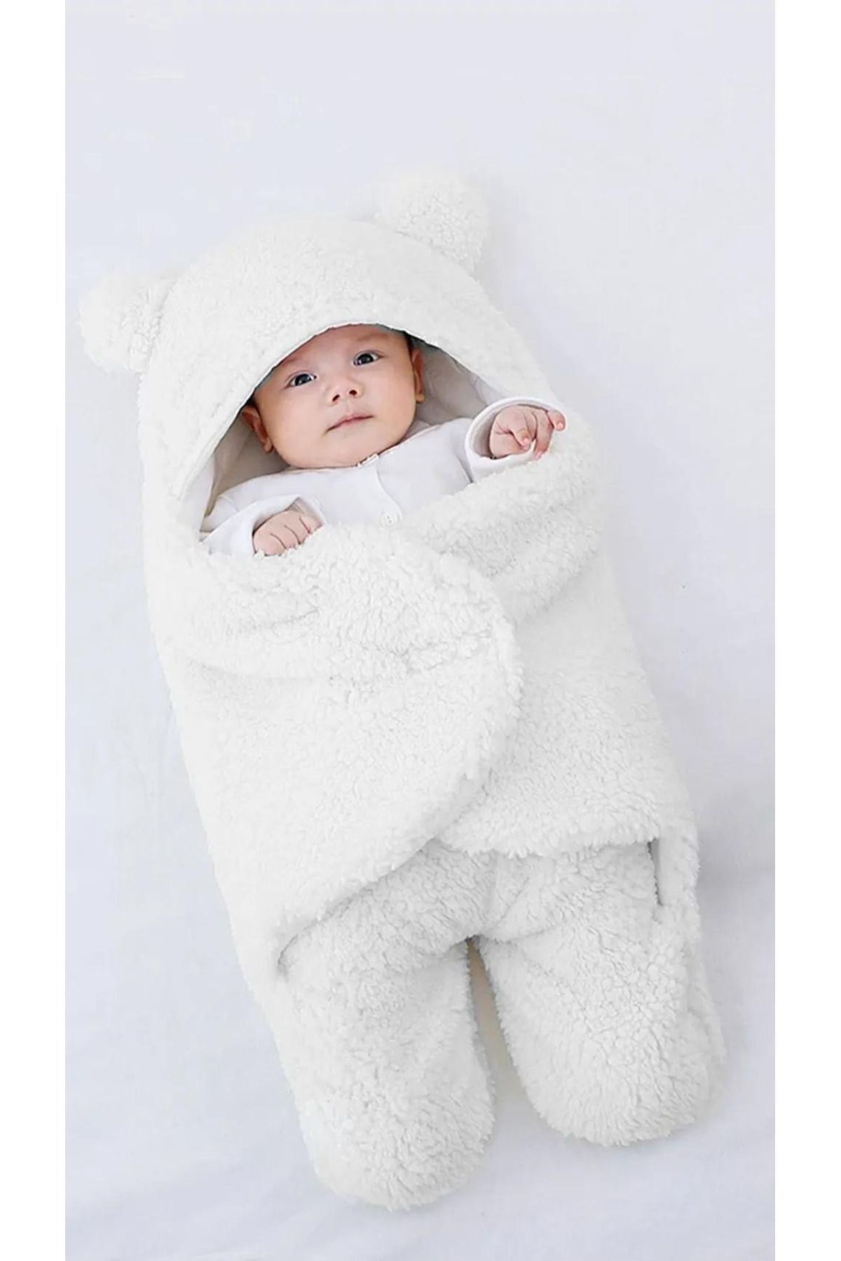 Bebek Kapüşonlu Ayaklı Kundak Battaniyesi, Yenidoğan Kışlık Bebek Yumuşak Sıcak Pamuk Uyku Tulumu