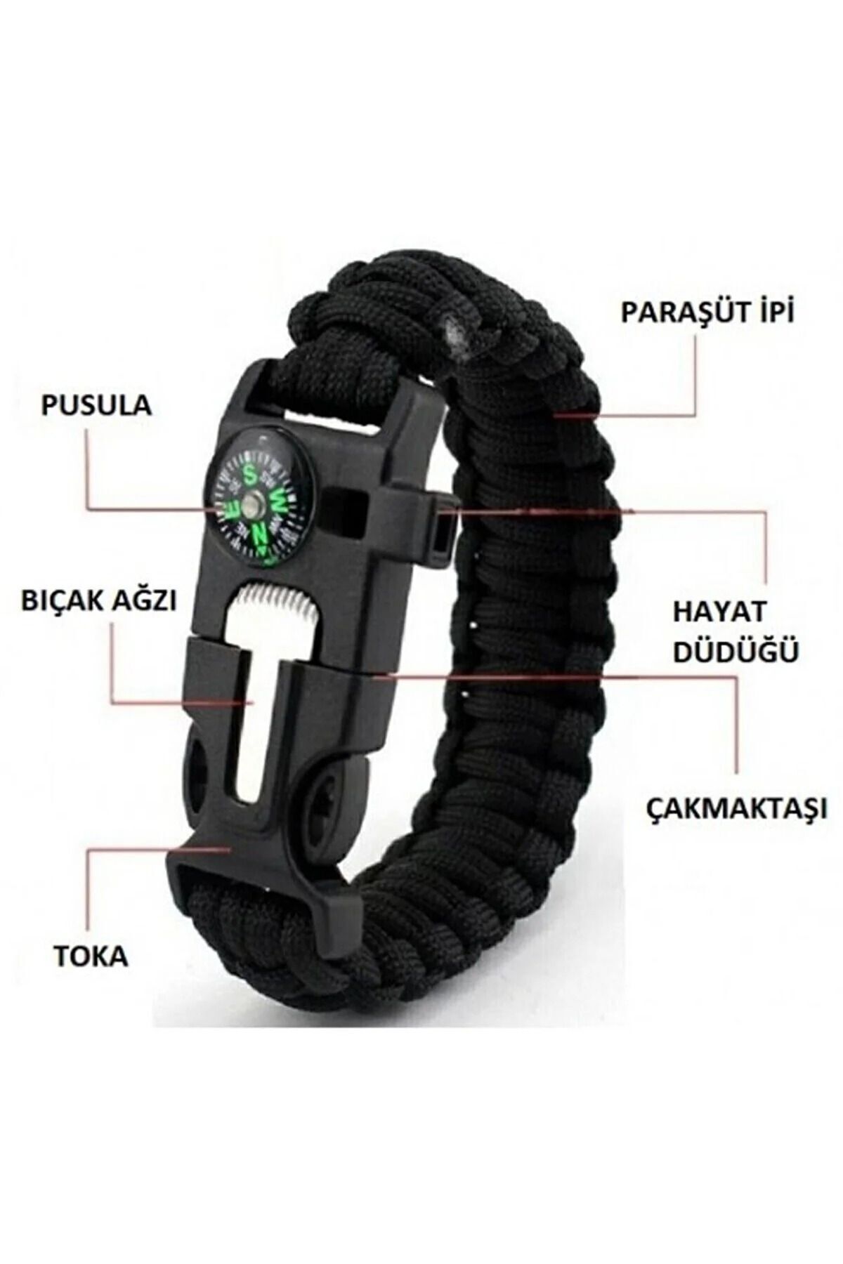 · Fonksiyon ? : Bu örgülü dış mekan bilekliği,kanamayı durdurabilen, geçici çadırları bağlayabilen ve her durumda ekipman taşıyabilen yedi damarlı bir paraşüt ipi kullanır.; Acil durumlarda kullanılabilir.; Paraşüt ipinin çapı 4 mm'dir ve tek halat çekme kuvveti yakl.; 220 kg.; · ? Ürün yapısı ? : Açık havada hayat kurtaran çakmaktaşı, yüksek hassasiyetli mini pusula, halat kesici, hayatta kalma düdüğü, 3,2m yedi damarlı paraşüt ipi.; · ? Kullanım ? : Bileklik takılarının günlük kullanımı için uygundur, gerektiğinde iplere ayrılabilir.; Monokrom bileklik paraşüt ipinden ayrılabilir.; Uzunluğu yaklaşık 3,2 metredir.; Kolye ucu ve ilkyardım için kullanılır.; · ? Mükemmel kalite ? : Kullanılan malzeme paraşüt ipinin özel amacıdır.; Basit bir halatın çekme kuvveti yakl.; 200kg.; Ürünün Siyah rengi de stoklara dahil olmuştur.; Ayrıca sipariş sonrası bilek çevre ölçünüzü belirtirseniz.; Uygun bedenli ürünü gönderebiliriz.