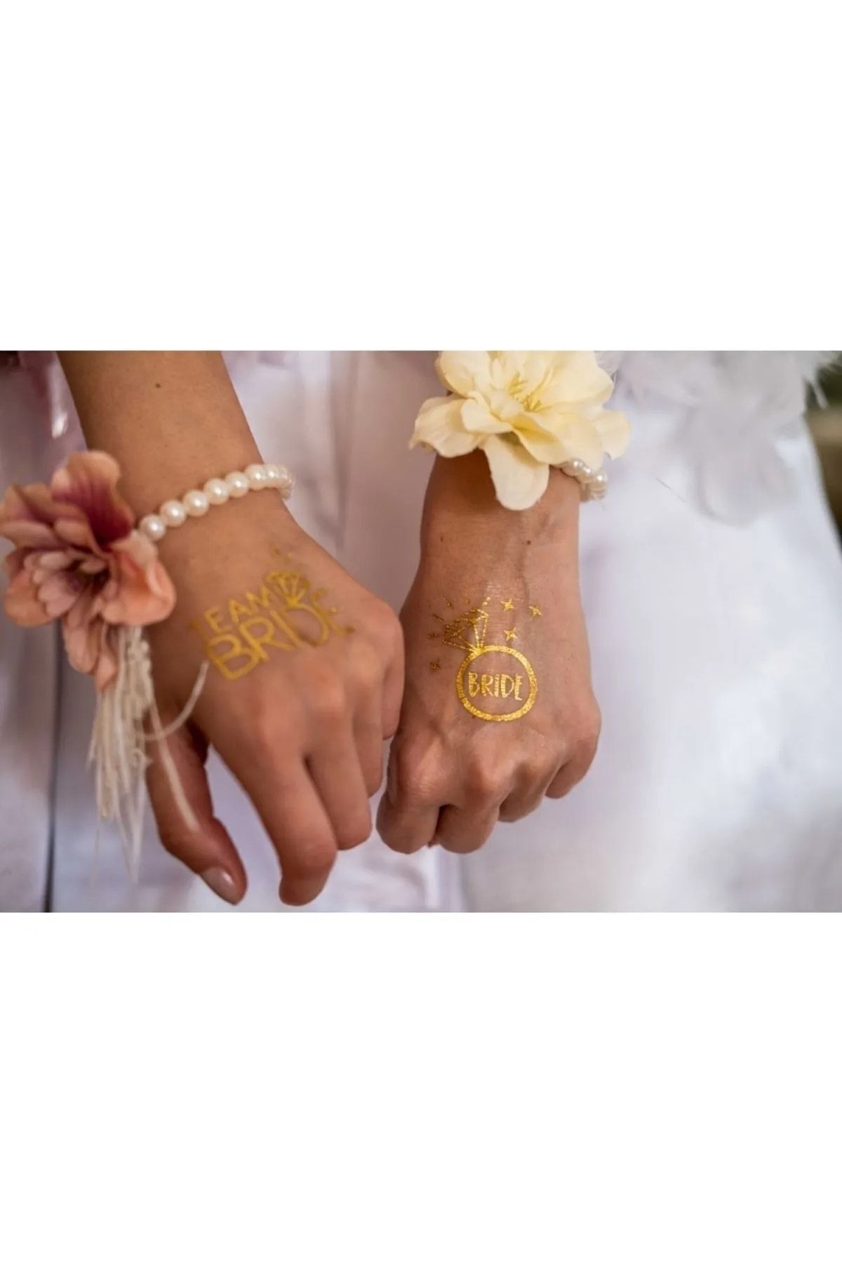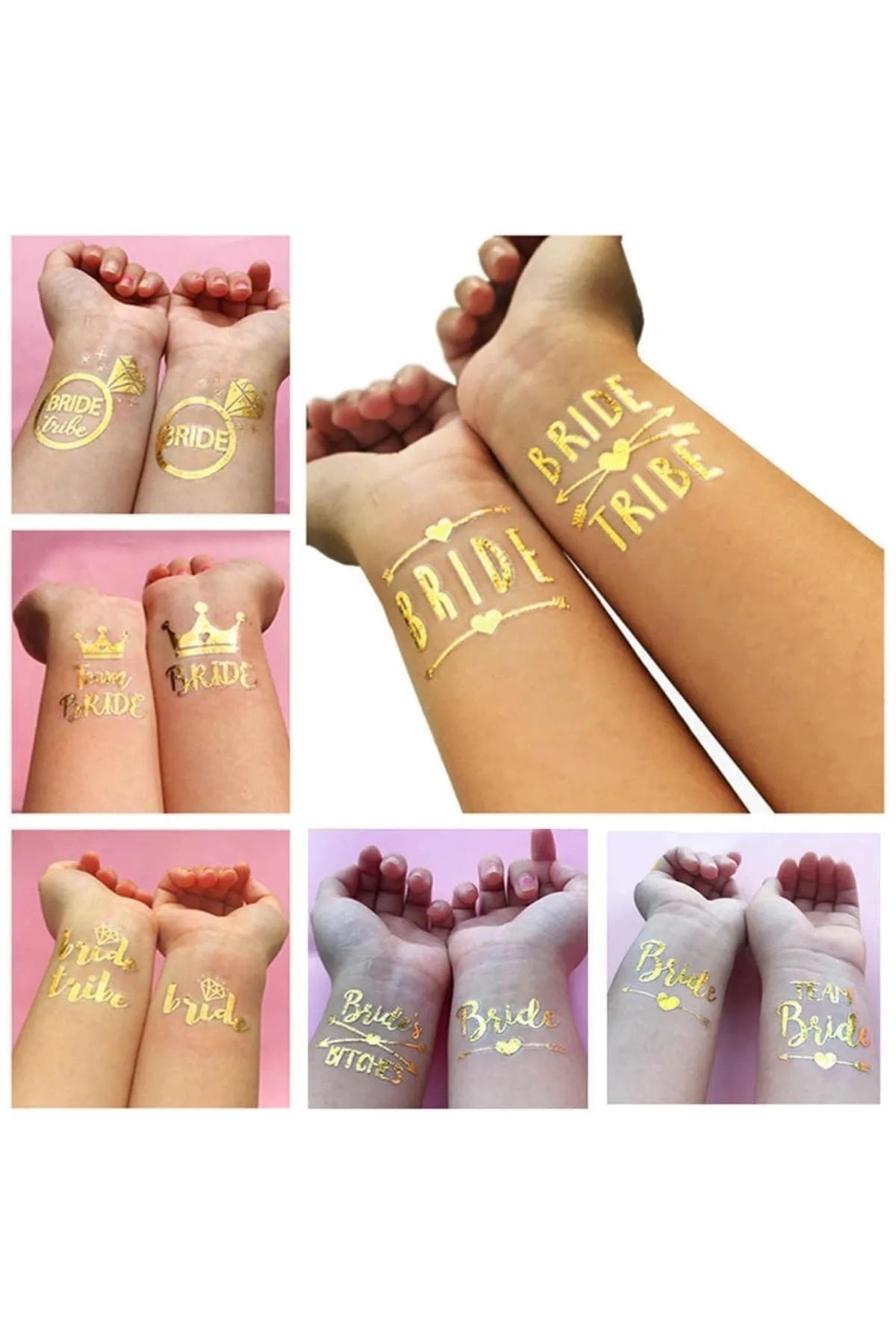 Bride To Be 1 Bride 10 Team Bride Gold Renkli Geçici Dövme Bekarlığa Veda Partisi