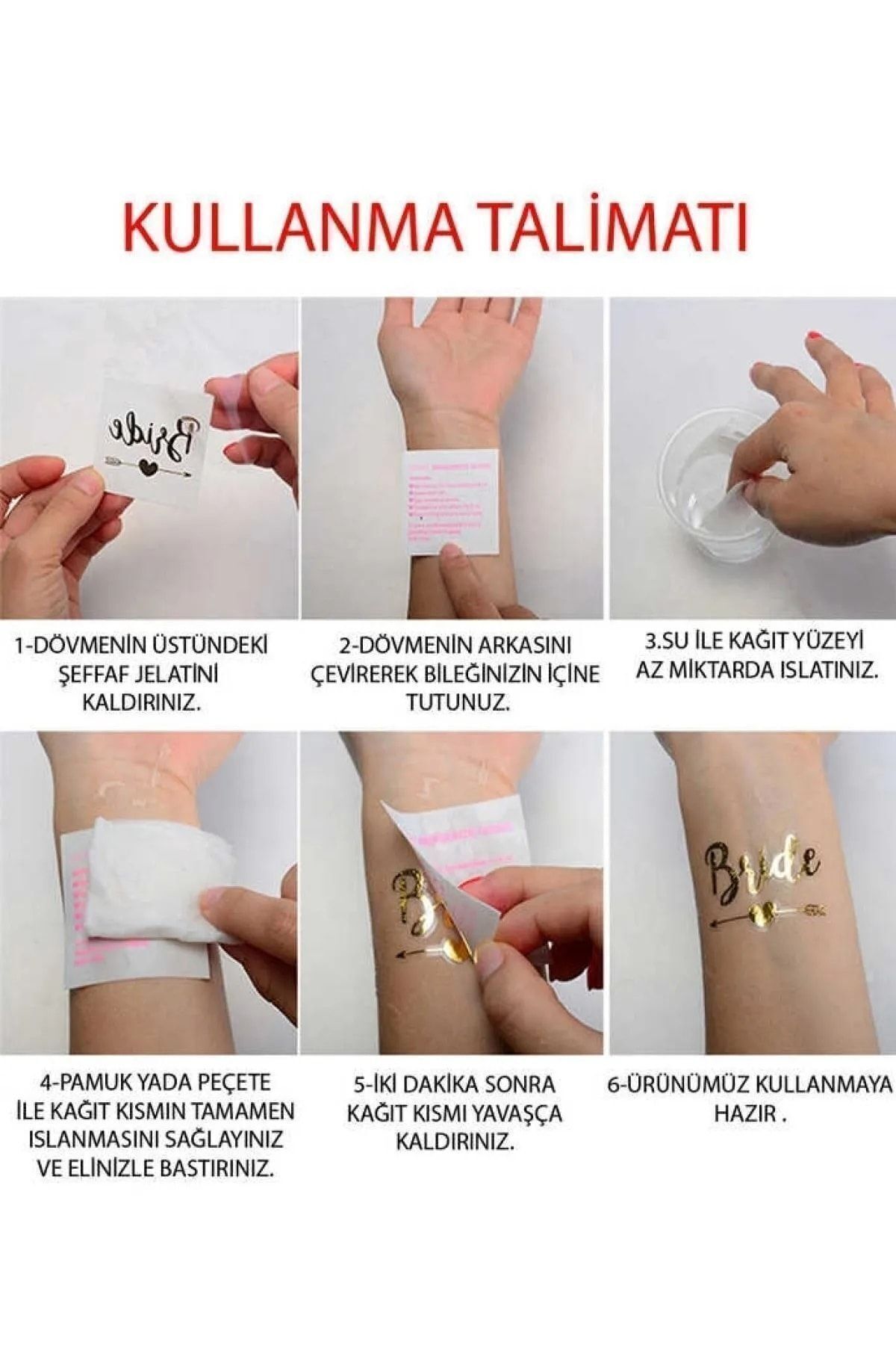 ; Her sene olduğu gibi bu sene de gelinlerimizi yalnız bırakmadık. En özgün ürünlerimizi sizler için seçtik ve geçen seneki ürünlerimize ek bizbirinden özel ve yeni ürünlerimizi ekledik. ; Sizler için çok gezdik çok dolaştık en iyisini en özgününü aradık. En sonunda da siz değerli gelinlerimize ve arkadaşlarına naif ve birbirinden zarif ürünler sunmayı başardık. Tamı tamına 60-70 den fazla farklı farklı bride ürününü satışa sunduk :) Peki o zaman hadi ürünümüzün özelliklerini tanıtmaya başlayalım.. ; Paket içerisinde 11 adet dövme bulunmaktadır. Bu dövmelerin 10 adedi team bride yazılı 1 adedi ise bride veya bride to be yazılıdır. Gönderdiğimiz dövmeler gold rengindedir. ; Team Bride yazılı 10 dövmede aynı modelde gönderilmektedir. ; Boyut :5x6 Cm'dir ; Geçicidir. ; Tüm testlerden geçmiş olup, sağlığa zararlı madde içermez. ; Dövme Uygulama Adımları: ; 1) Dövmenin üstündeki şeffaf jelatini kaldırınız. 2) Dövmenin arkasını çevirerek bileğinizin içine tutunuz. 3) Herhangi bir pamuk ya da peçeteyi ıslayın.4) Isladığınız pamuk veya mendili dövmenin kağıtlı olduğu bölgeye sürünüz ve kağıdın ıslanmasını sağlayınız. 5) 2 Dakika sonra kağıt kısmı yavaşca kaldırınız. 6)Ürününüz kullanıma hazır, İŞLEM TAMAM!! :) ; Diğer Bride ürünlerimizi görmek için mağaza sayfamıza girip "Mağazada Ara" kısmına "Bride" kelimesini yazıp aratmanız yeterli olacaktır. ; Bir de unutmadan satıcınızdan bir mesaj var: Nefes almanın en kolay yolu bunu başkasıyla yapmakmış. Eminim ki sizler de hem ruh ikizinize kavuşmuş hem de birlikte daha kolay ve huzurlu nefes almaya yol açmışsınızdır. Hep mutlu olun. ; ; ; İncelemiş olduğunuz ürünün satış fiyatını satıcı belirlemektedir. ; Bir ürün, birden fazla satıcı tarafından satılabilir. Birden fazla satıcı tarafından satışa sunulan ürünlerin satıcıları ürün için belirledikleri fiyata, satıcı puanlarına, teslimat statülerine, ürünlerdeki promosyonlara, kargonun bedava olup olmamasına ve ürünlerin ile teslim edilip edilememesine, ürünlerin stok ve kategorileri bilgilerine göre sıralanmaktadır. ;