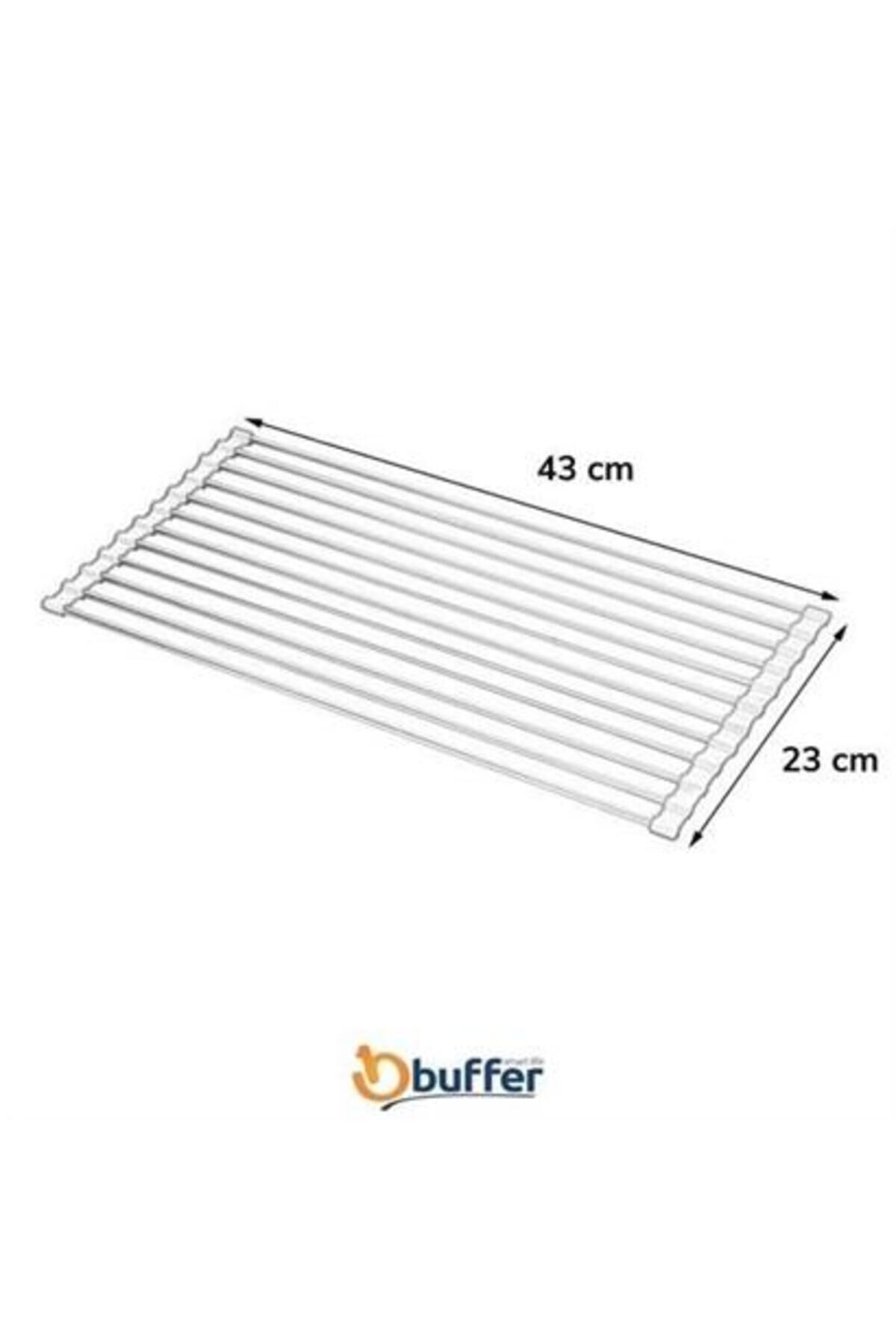 BUFFER® Evye Üstü Katlanır Nihale Paslanmaz Çelik Pratik Sebze Meyve Bulaşık Kurutma Süzgeci Evye üstü katlanır nihaleyi sebze, meyvelerinizi süzmek veya bulaşıklarınızı kurutmak için çok amaçlı kullanabilirsiniz; Drenaj süzgeci su damlalarının doğrudan lavaboya akmasını sağlar; Şık ve modern tasarımlı kurutma süzgecinin tutucu kenarları plastik, telleri ise paslanmaz çeliktir; Sıcaklığa ve ıslaklığa dayanıklı yapısıyla uzun süre kullanmanıza olanak tanır; Portatif kullanımlı süzgeç kullanılmadığında katlanarak yer tasarrufu sağlar; Farklı boyut seçeneklerinden lavabonuza en uygun olanını alarak güvenle kullanabilirsiniz; Paket İçeriği:; 1 x BUFFER® Evye Üstü Katlanır Nihale Paslanmaz Çelik Pratik Sebze Meyve Bulaşık Kurutma Süzgeci;
