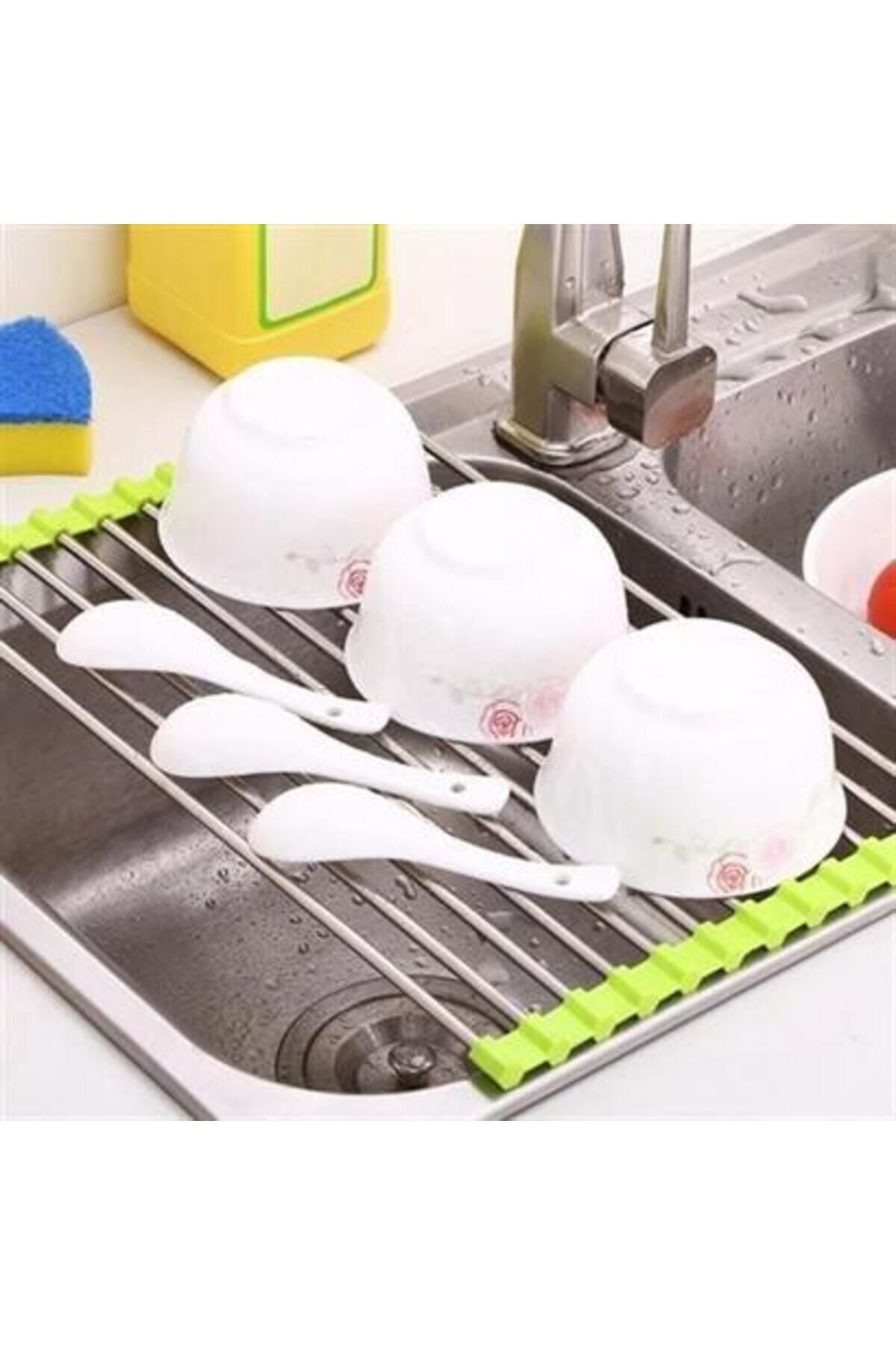 BUFFER® Evye Üstü Katlanır Nihale Paslanmaz Çelik Pratik Sebze Meyve Bulaşık Kurutma Süzgeci