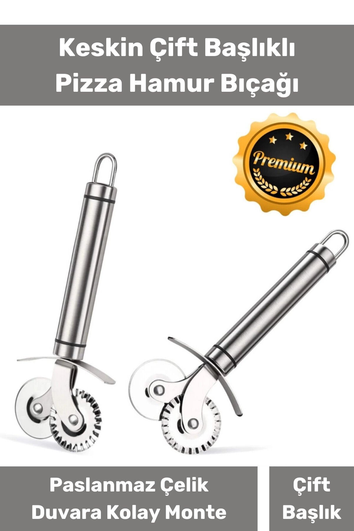 Çift Başlıklı Pizza ve Hamur Bıçağı , hem profesyonel hem de ev tipi mutfaklar için mükemmel bir yardımcıdır. Dilimleme ve kesim işlemleri yapılabilir hale getirin!