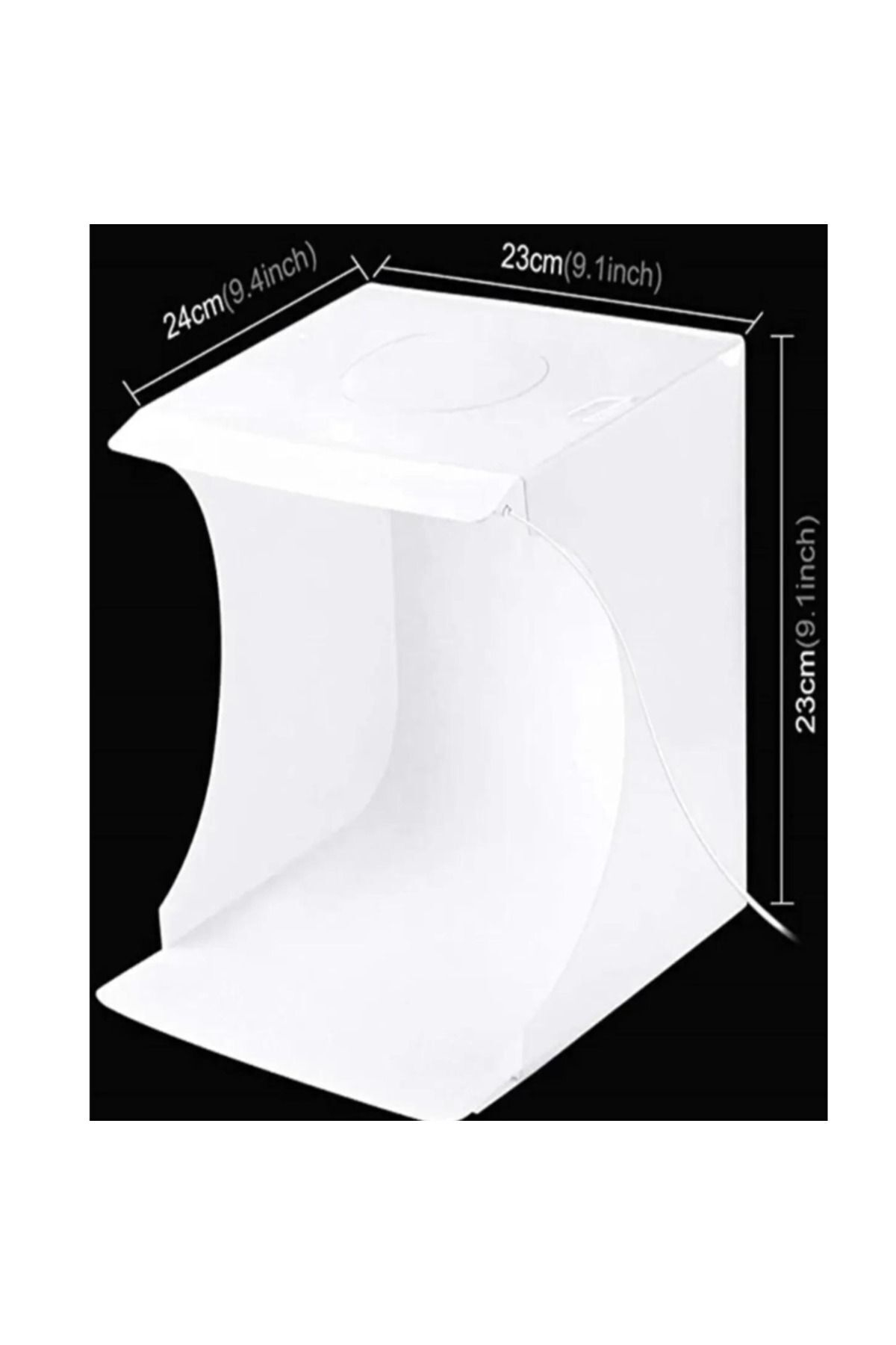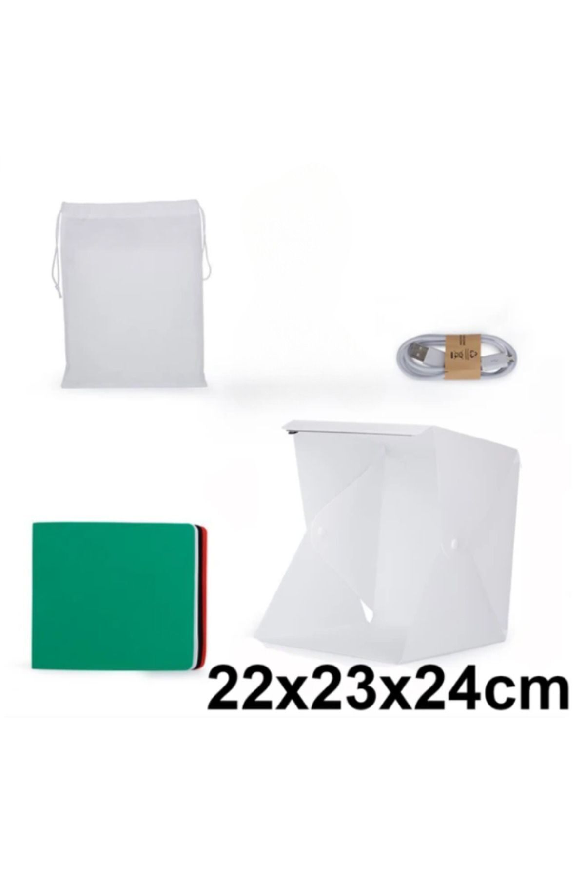 Yeni taşınabilir fotoğraf stüdyosu Mini katlanabilir softbox ile USB ışık kutusu yüksek aydınlatma masaüstü 22.6*23*24 cm. Ürün Fotoğraf Çekim Çadırı Beyaz led ışıklı ürün çekim çadırı ile çok kısa bir sürede fotoğraf çekimleri için mükemmel bir zemin oluşturabilirsiniz. Fotoğraf meraklısı, sanatçı, online ürün satıcı, profesyonel fotoğrafçı ve ürün reklamı yapan kişi ve firmalar için tasarlanmış özel bir üründür. Takı, aksesuar, oyuncak, saat ve aklınıza gelen diğer nesneler gibi küçük ürünlerin hızlı ve kolay şekilde fotoğrafının çekilmesini sağlar. Katlanır manyetik devre yapısı ve yerleşik beyaz led ışıkları sayesinde gerekli maksimum aydınlatmayı sağlarsınız. Bu sayede fotoğraflarınızda gölge ve yansımalar önlenir. Ürün Ebatları 23X24X30 cm ; Paket İçeriği 1 Adet Ana Stüdyo Kutusu ; 4 Adet Arka Panel (Siyah Beyz Kırmızı Mavi) ; 1 Adet USB Micro Kablo ;