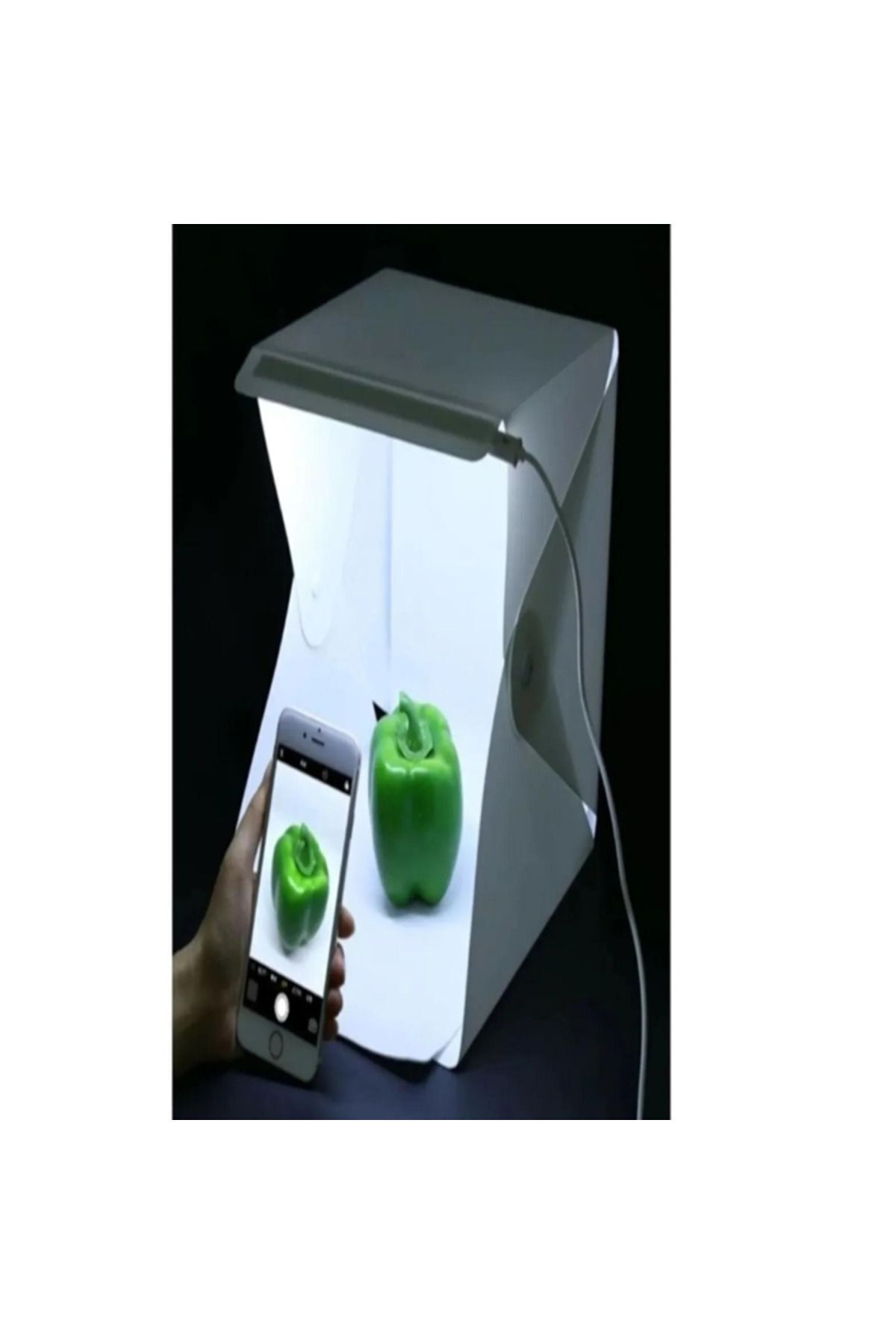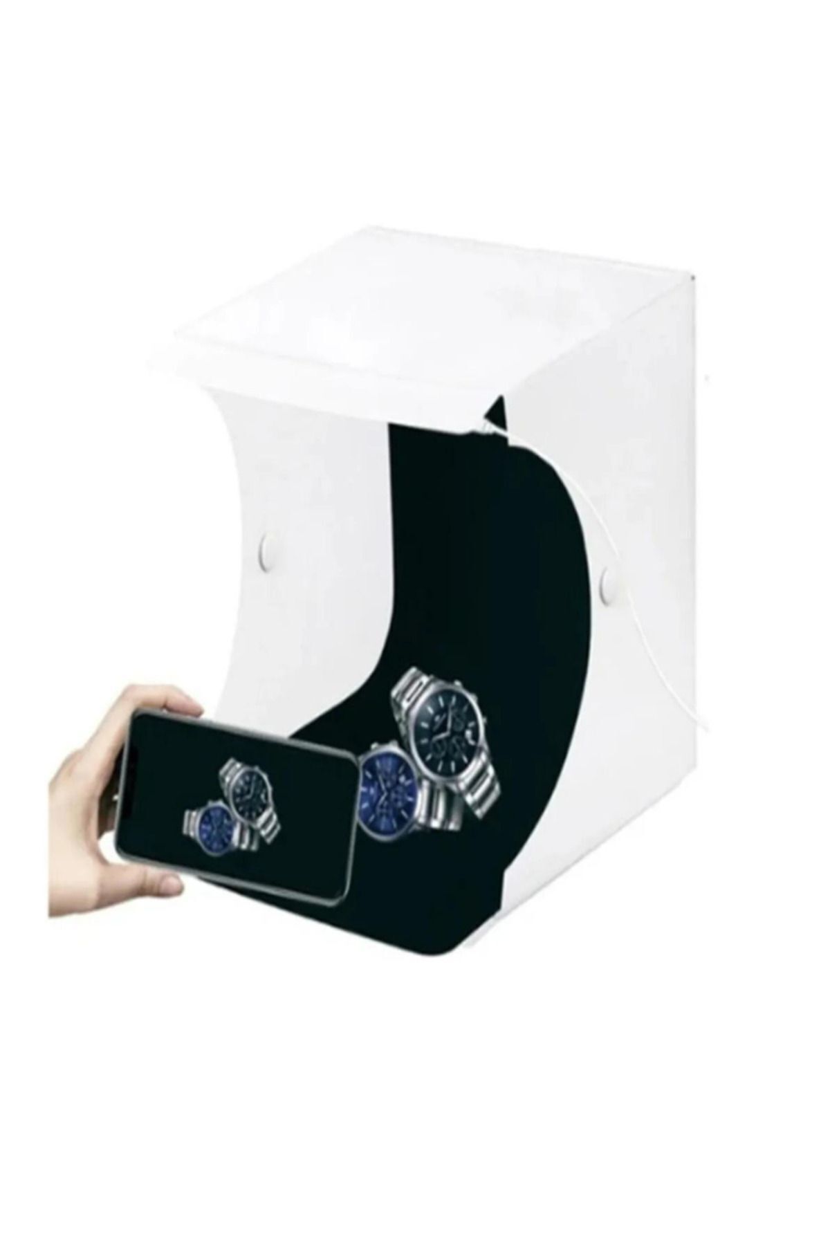 Çift Led Işıklı Ürün Fotoğraf Çekim Çadırı Katlanabilir Resim Fotoğraf Çekme Kutusu 4 Adet Arka Fon