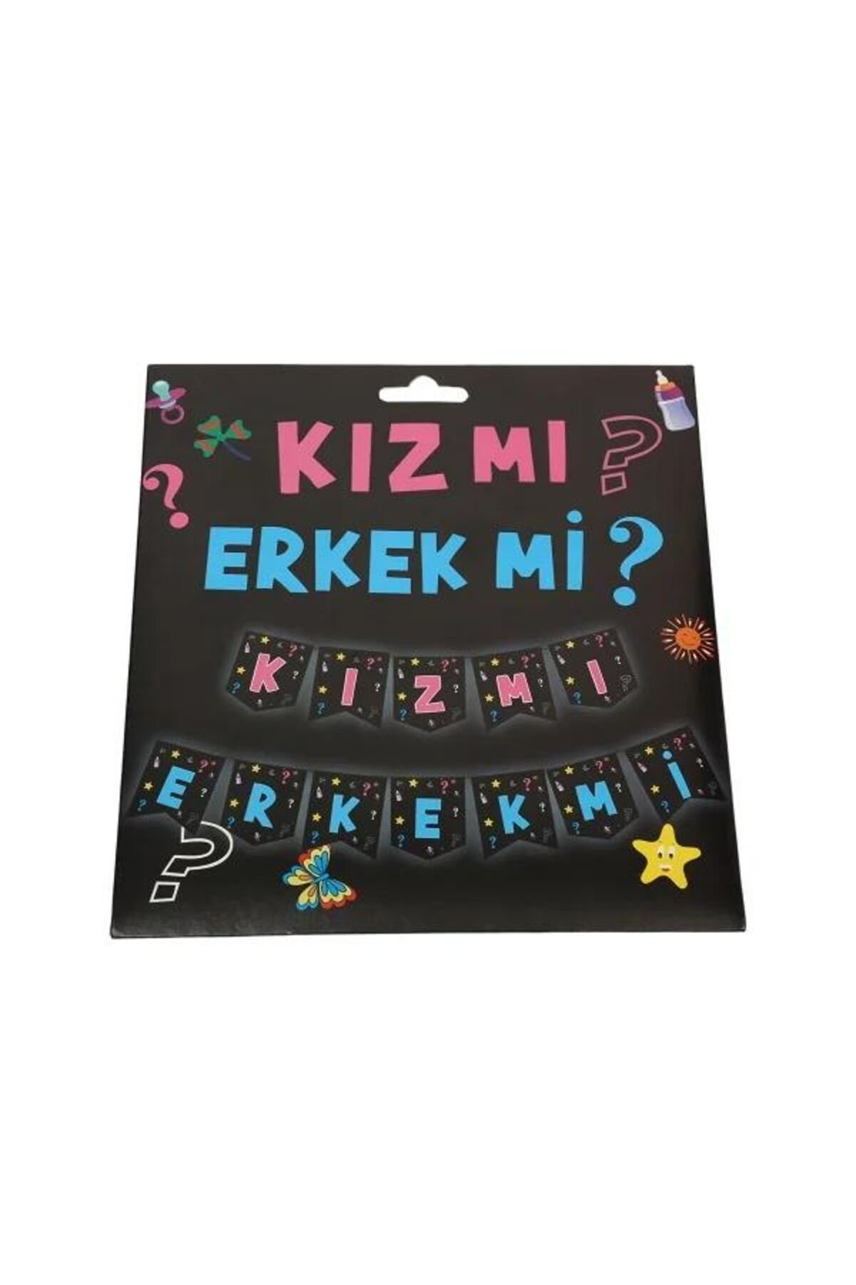 Paket İçeriği: 1 adet erkek mi kız mı banner ; Her bir hafin ebatı en 13,5 cm , boy 17 cm , toplam uzunluk 190 cm 'dir.; ; 1.sınıf kağıda baskı yapılmıştır.; ; Yazı demonte olarak gönderilir.; Parti başlamadan önce ipten harfleri geçirerek yazıyı hazırlamanız gerekir.; ; İçerisinde bulunan rafya ip yardımı ile kapıya, duvara, perdeye, ağaçtan ağaca, partinizin yapılacağı alana, parti için hazırlamış olduğunuz masanın arkasına iki ucuna asabilirsiniz.; ;
