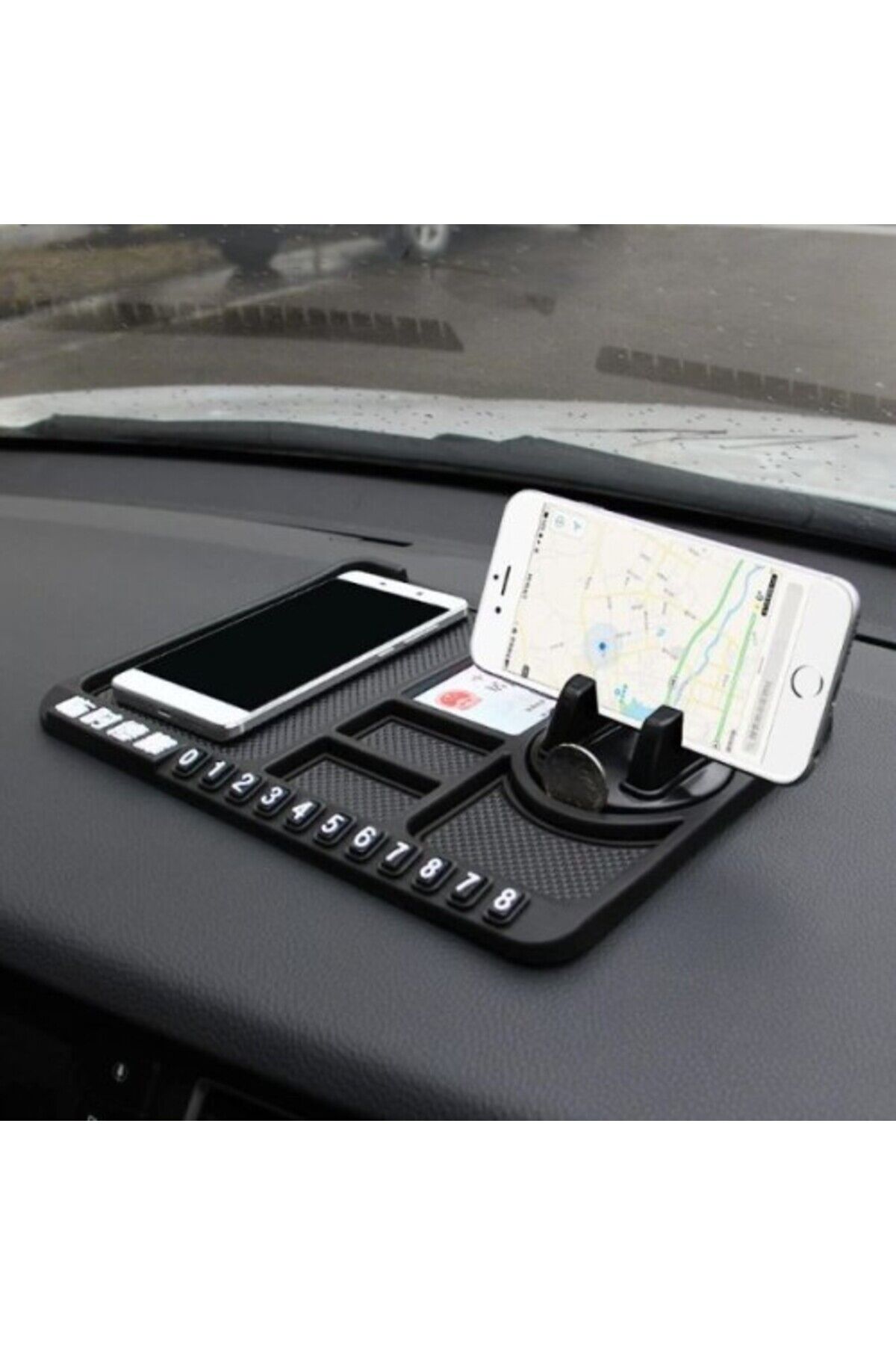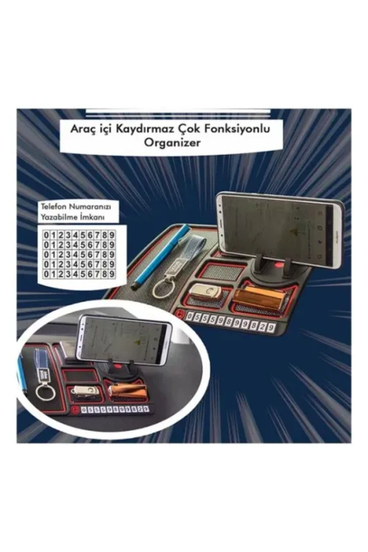 ÇOK FONKSİYONLU ARAÇ İÇİ TELEFON TUTUCUÜrün ÖzellikleriAraç içi Torpido Kaydırmaz Telefon Tutucu Numaratör OrganizerAraç içinde torpido başta olmak üzere ev ve iş yerlerinizde masanızın üstünde de rahatlıkla kullanabileceğiniz bir üründür.; Ölçüleri her telefona yetecek şekilde tasarlanmış olup bozuk para, kart, anahtar gibi ürünlerinizi de gönül rahatlığıyla koyabilirsiniz.; Kendi numaranızı kendiniz oluşturarak her zaman ulaşabilir olmanızı sağlar.; Aracınızda navigasyon kullanır iken 360 derece dönembilen telefon tutucu sayesinde size büyük bir kolaylık sağlaması üzeri tasarlanmıştır.; Kaydırmaz özelliği sayesinde eşyalarınız için kolayca kullanabilirsiniz.; Telefon,anahtarlık,ruhsat,cüzdan için kullanabilirsiniz.; Telefon tutucu özelliği mevcutturÜrün ölçüleri 20*25 cmdirNumaratör özelliği mevcutturKaydırmaz çift taraflı yapısıyla,hiçbir montaja gerek kalmadan direk uygulama ile Torpido üzerinde kaydırmazlık görevine başlar.; Üzerine koyacağınız her materyal,kesinlikle kaymaz.; Sanki yapıştırılmış hissi verir ve materyalede hiçbir zarar vermez.; Paket İçeriği1 adet çok fonksiyonlu araç içi telefon tutucu