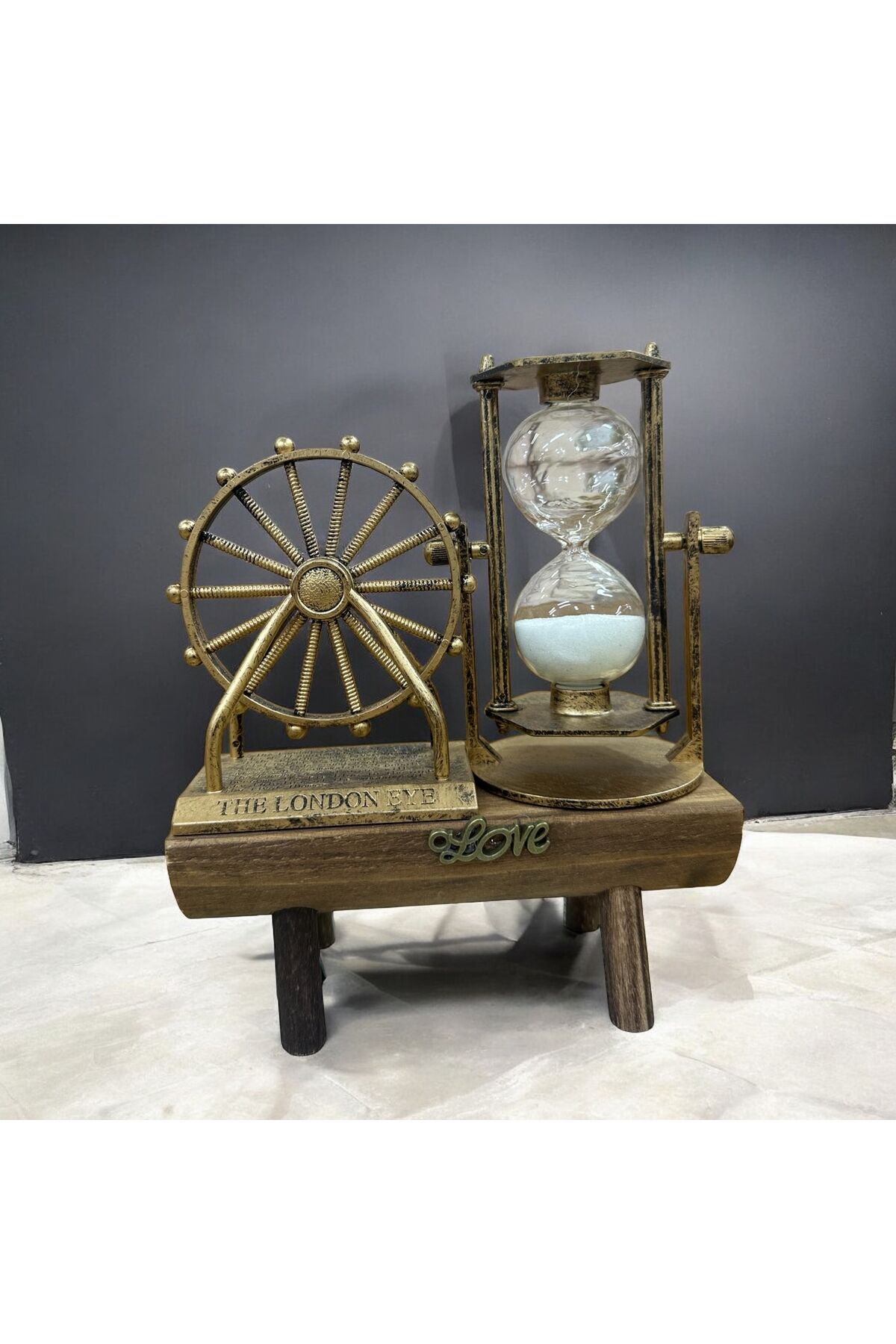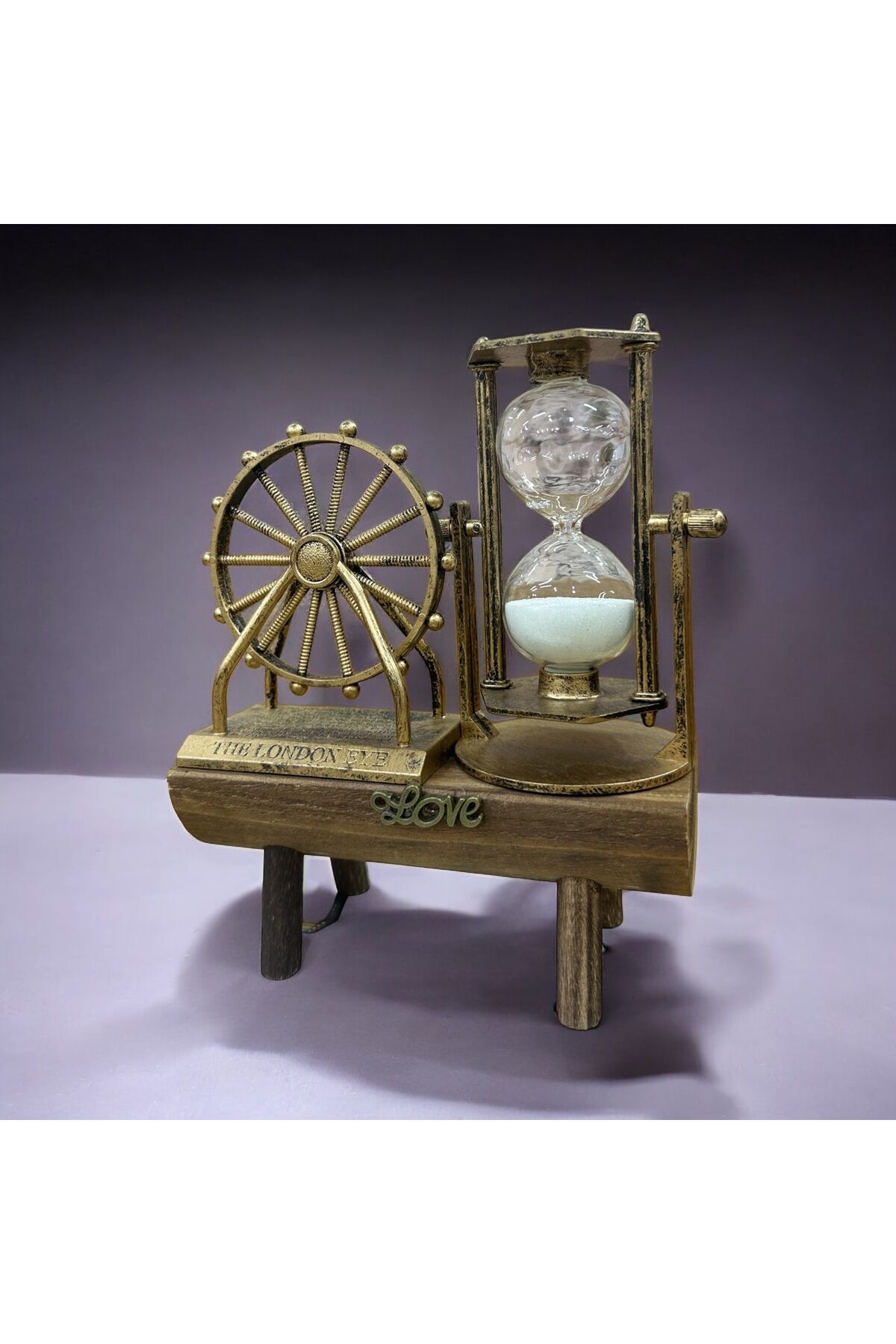 Retro tasarımıyla dikkat çeken dekoratif ahşap standlı London dönme dolap, mekanınıza nostaljik bir hava katıyor; Polyester malzemesi sayesinde uzun ömürlü kullanım sunar ve kolay temizlenebilir özelliğiyle pratik bir bakım imkanı sağlar; Kum saati ile birleşen bu şık obje, zamanı takip etmenin yanı sıra dekoratif bir unsur olarak da işlev görür;