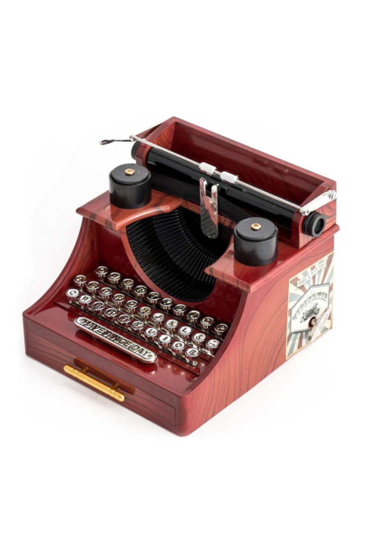 Antika daktilo takı çekmeceli müzik kutusunun nağmeleri ile nostaljiyi yaşayın, aynı zamanda odanızı süsleyin! Daktilo şeklinde tasarlanmış müzik kutusu ile sevdiklerinize şık ve kalıcı bir hediye müzik kutusu sunabilirsiniz. ; Sizlere müzik kutuları beğenilerinize sunmaktayız.. ; Dilerseniz müzik kutusunu ev ve ofisinizin dekorasyonunda kullanabilir ve istediğinizde dinlendirici müziğini dinleyebilirsiniz. ; Dilerseniz takı çekmecesinde takı ve özel eşyalarınızı saklayablirsiniz antika müzik kutusunu yanındaki mandal vasıtasıyla çevirerek kurabilirsiniz. ; Kurduktan sonra çekmeceyi açtığınızda dinlendirici müzik çalar. ; Ürün özellikleri: kaliteli polyester malzemeden üretilmiştir. ; kaliteli boya ve birebir tasarıma sahiptir. ; dekoratif görünümünün yanında alt bölümünde bulunan çekmece özelliği sayesinde en değerlilerinizi saklayabilirsiniz. ; sevdikleriniz için farklı altarnatif bir hediyelik müzik kutusu üründeki bulunan küçük notluk sayesinde sevdiklerinize en güzel cümleleri yazabilirsiniz. ; Paket içeriği: bir adet daktilo şeklinde takı çekmeceli müzik kutusu;