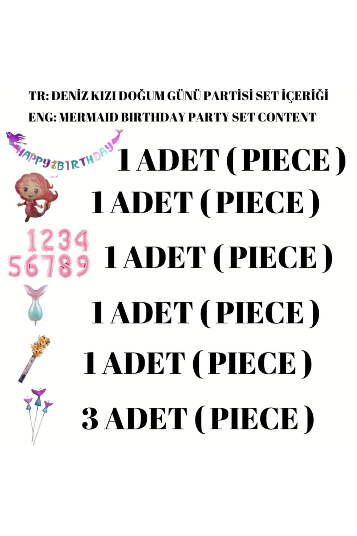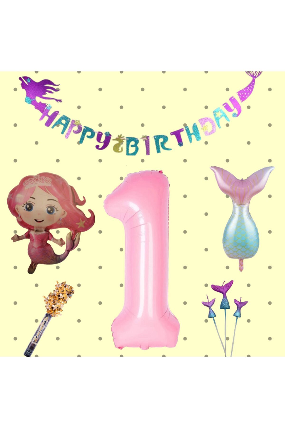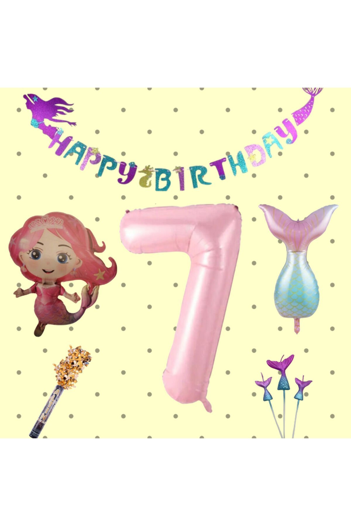 Deniz Kızı Konsept 7 Yaş Doğum Günü Seti Partisi Denizkızı Parti Folyo Balon Mum Uzar Yazı Bayrak