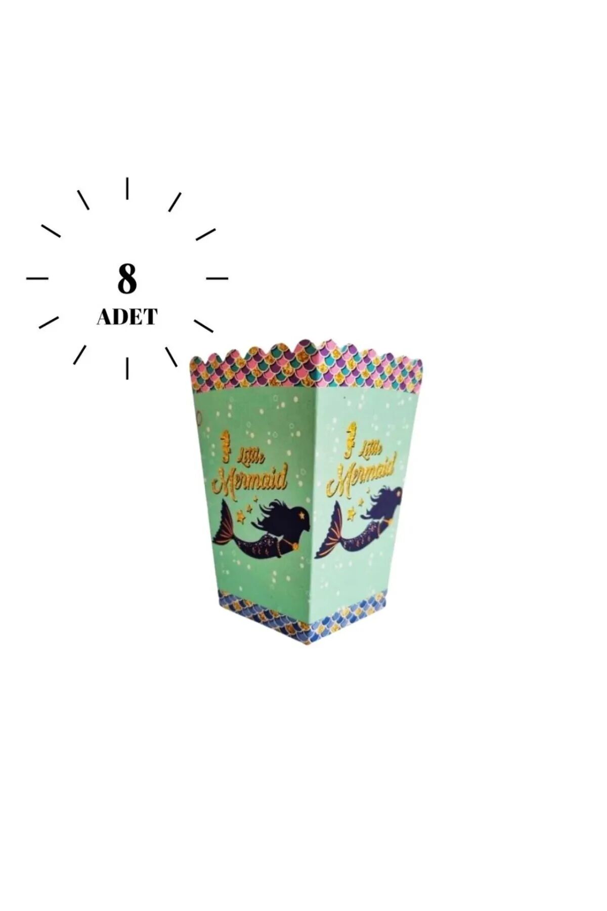 Çocukların doğum günü kutlamalarına özel tasarlanmış, deniz kızı temalı mısır kutusu seti; 8 adet mısır kutusu ile çocukların sevdikleri atıştırmalıkları saklayabilecekleri şık ve eğlenceli bir çözüm sunar; Deniz kızı konseptiyle süslenmiş bu kutular, çocukların doğum günü partilerinin atmosferini canlandırır ve onlara özel hissettirir; Çocukların yaş grubuna uygun olarak tasarlanmış olup, hem görsel olarak çekici hem de dayanıklı malzemelerden üretilmiştir;